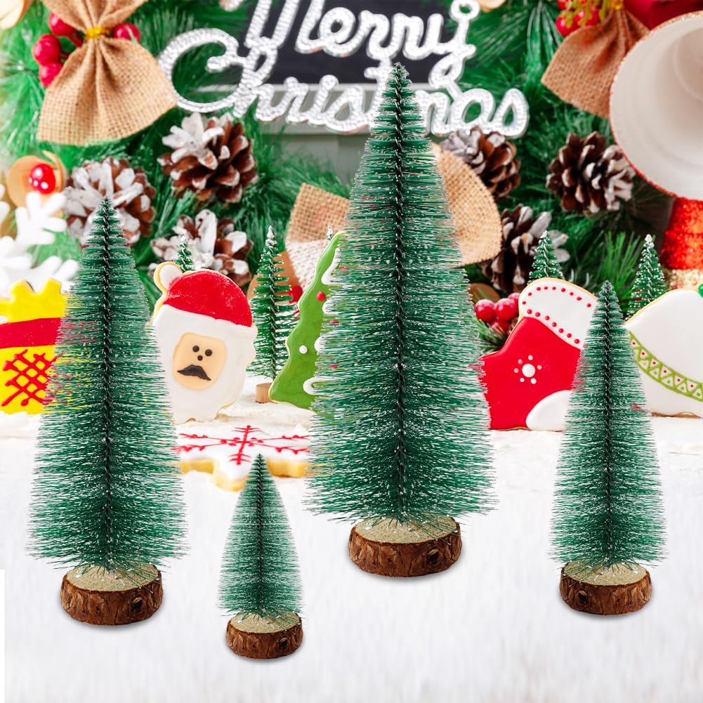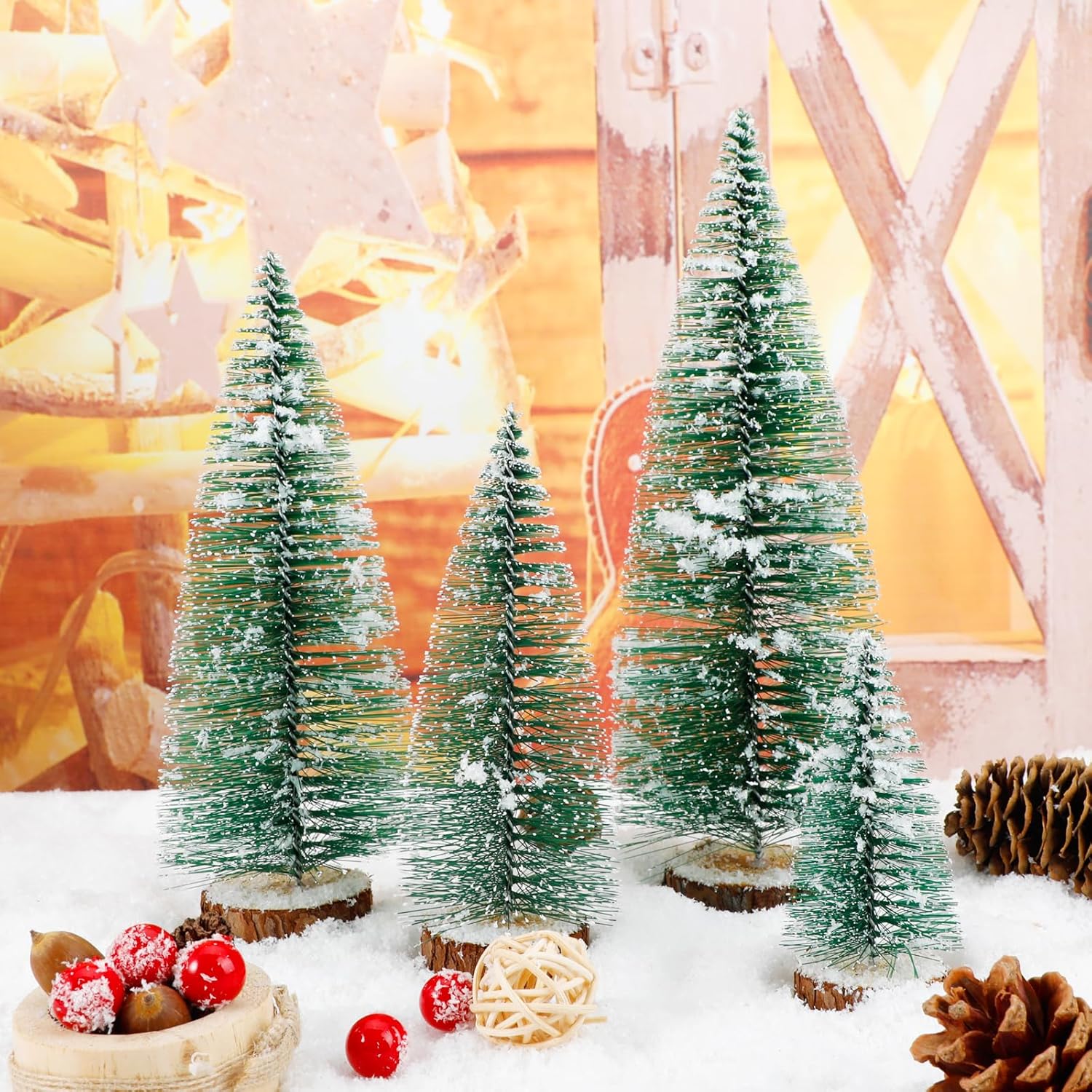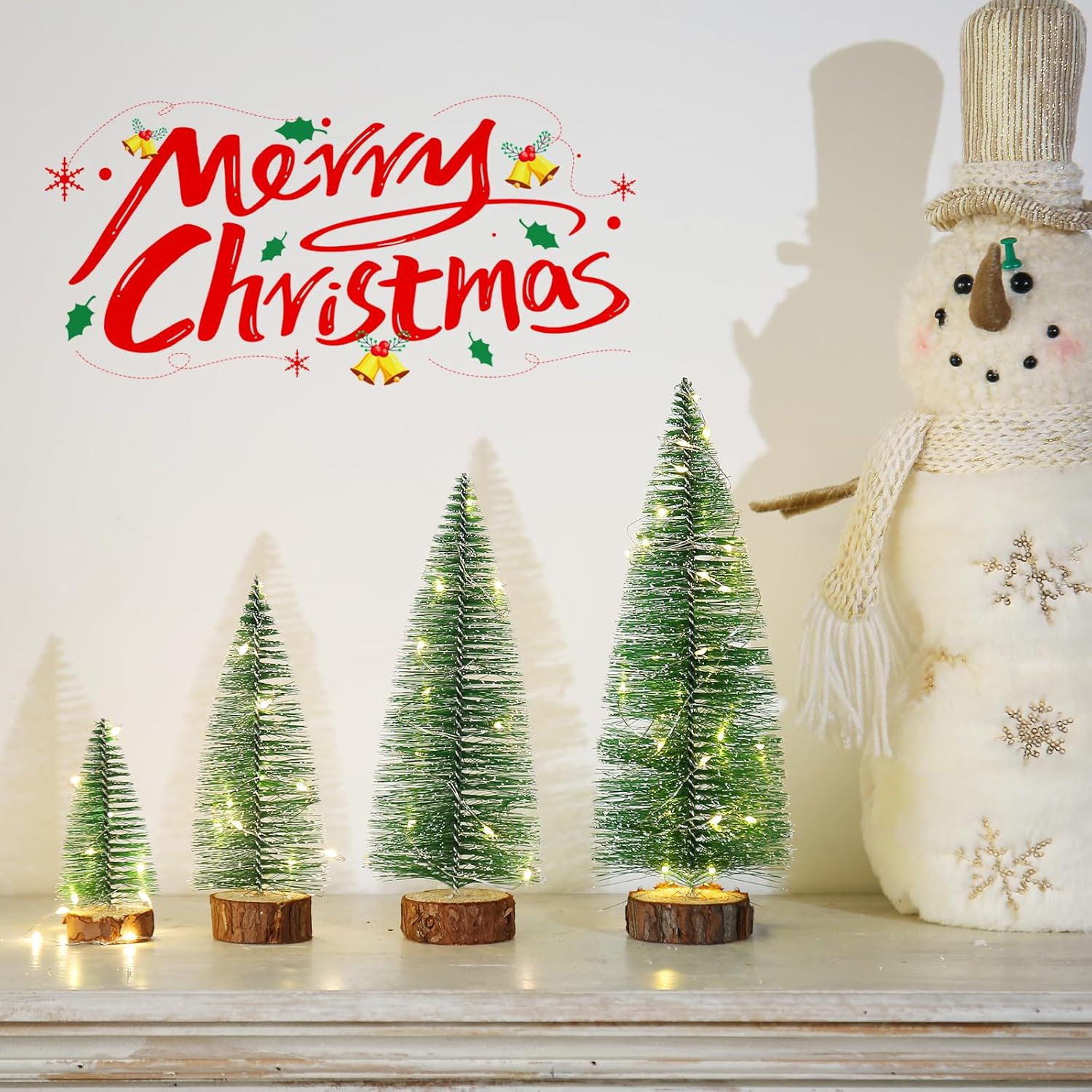 SUPREME XMAS Mini Christmas Tree, 4 Pcs Small Bottle Brush Christmas Tree with Lights for Table Top Christmas Decorations Tabletop Artificial Miniature Pine Trees Indoor Home Decor Holiday Party s