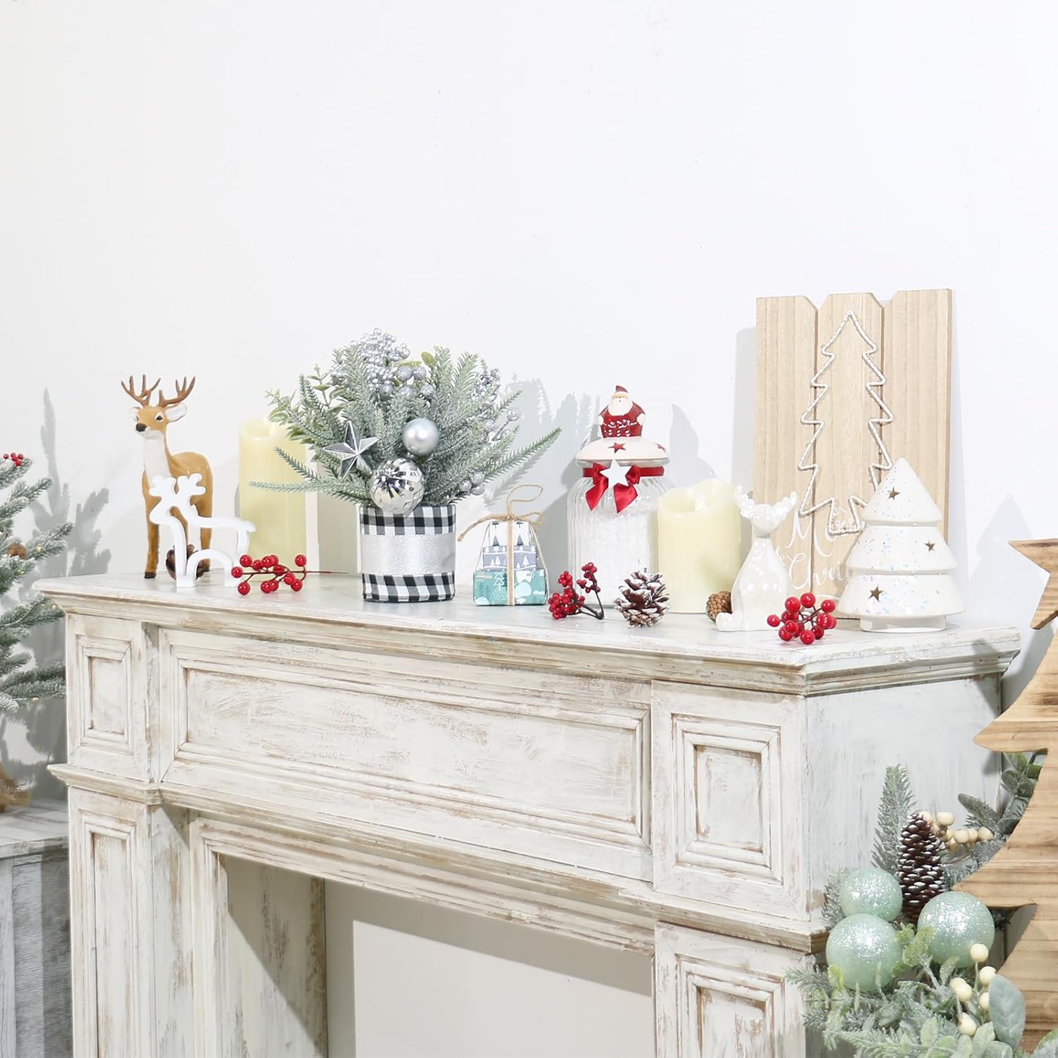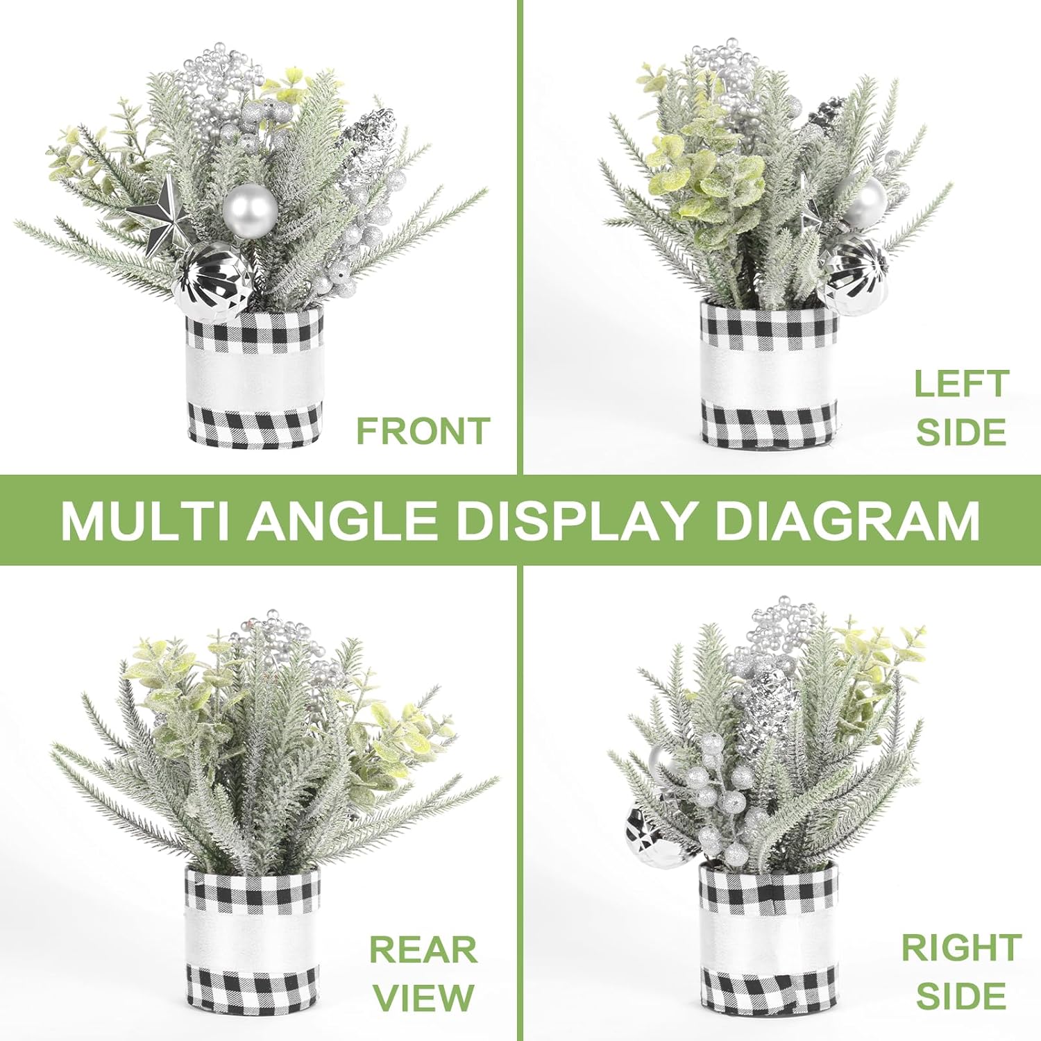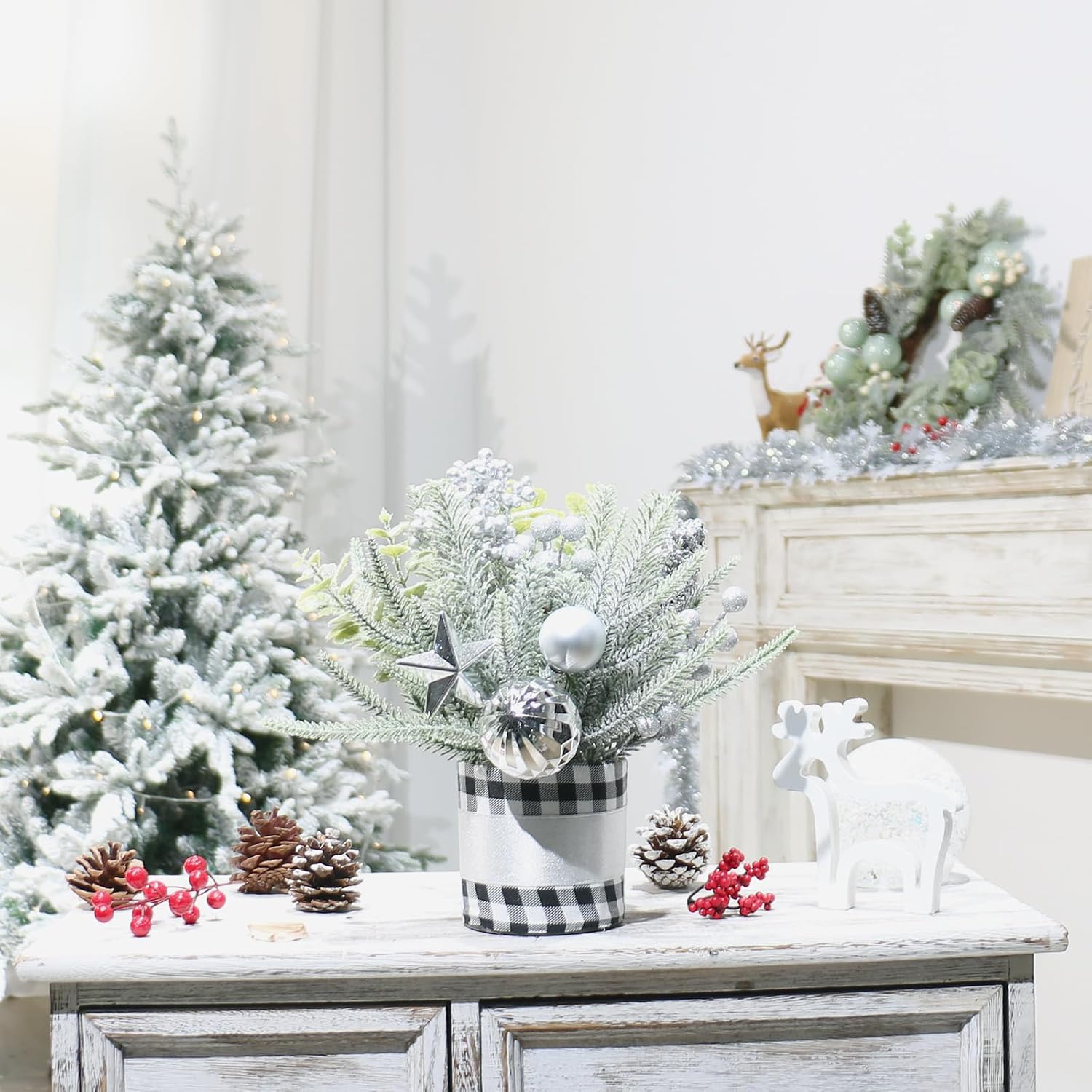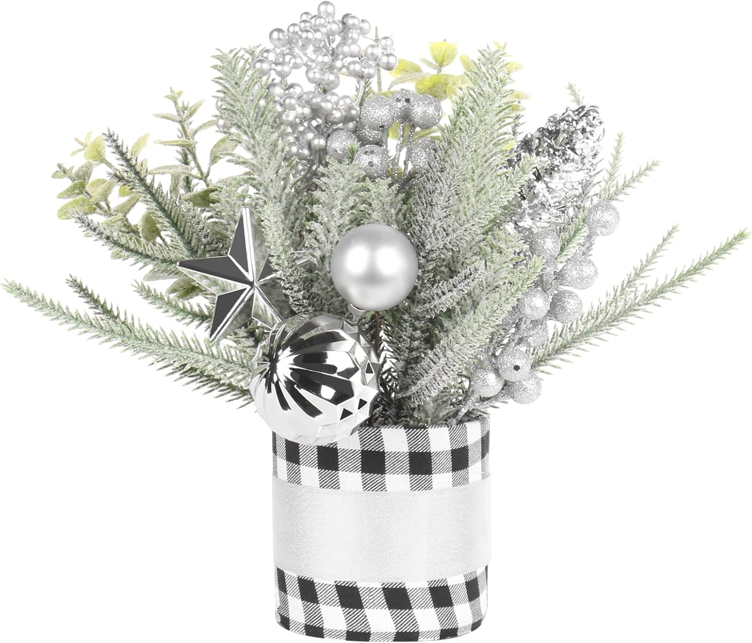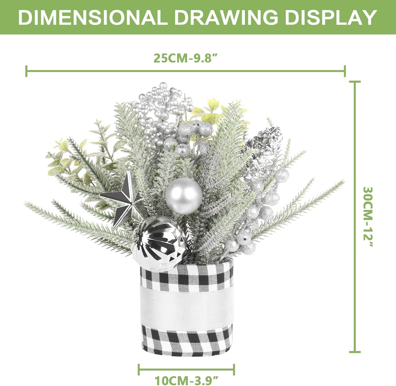 SY Super Bang Small Buffalo Check Plaid Christmas Tree, Artificial Mini Tabletop Christmas Tree Decorations with Silver Ornaments, for Home Holiday Indoor Party Xmas Decor.