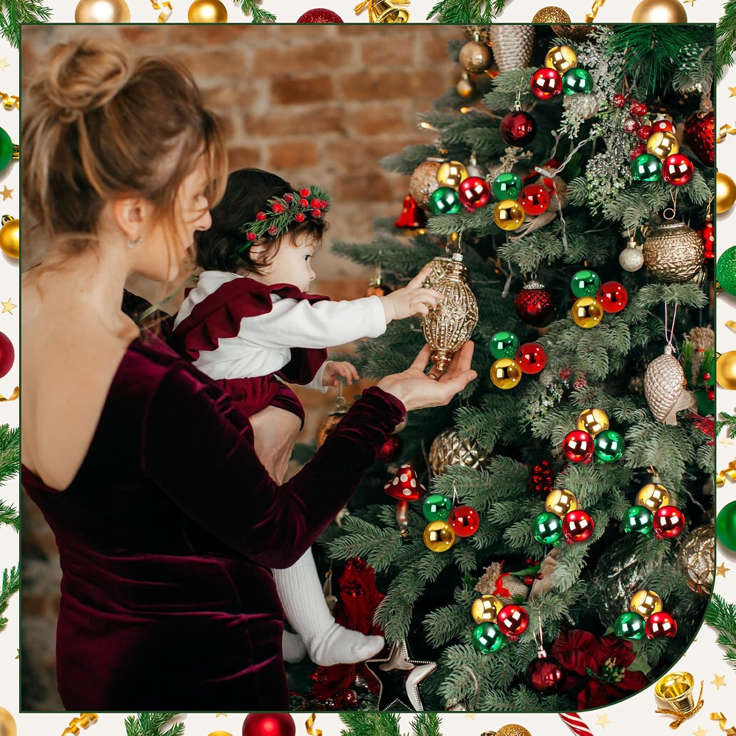 Syhood 12 Set Christmas Tree Picks 7.9 Inch Red Green Gold Christmas Ball Ornaments on Wired Picks Shatterproof Plastic Hanging Ornaments for Xmas Tree Vase Fillers Wreath Crafts Decor