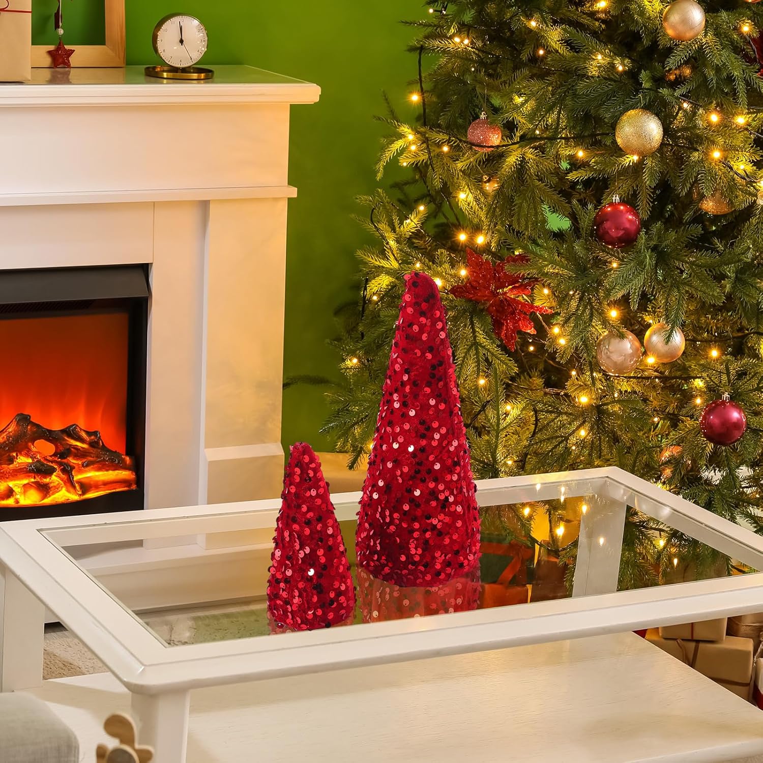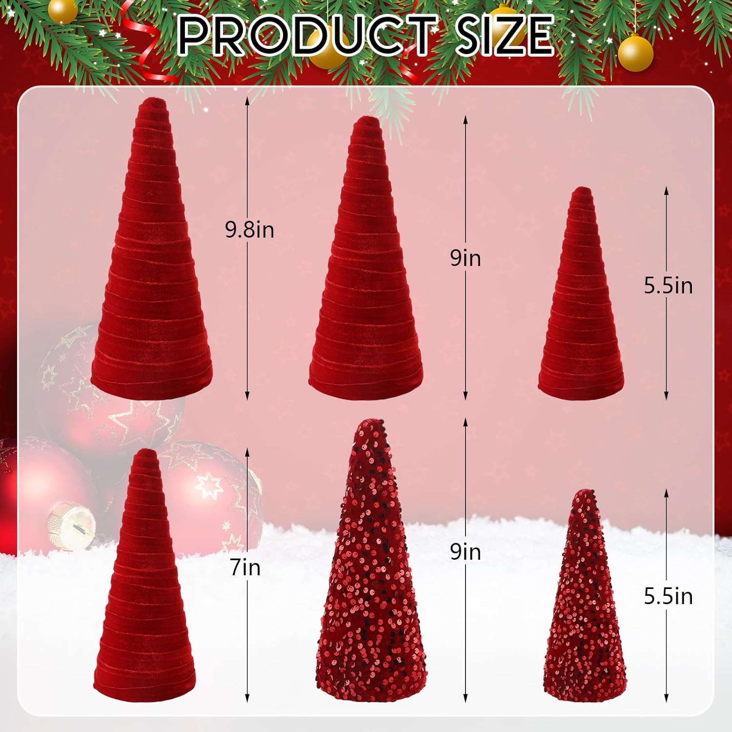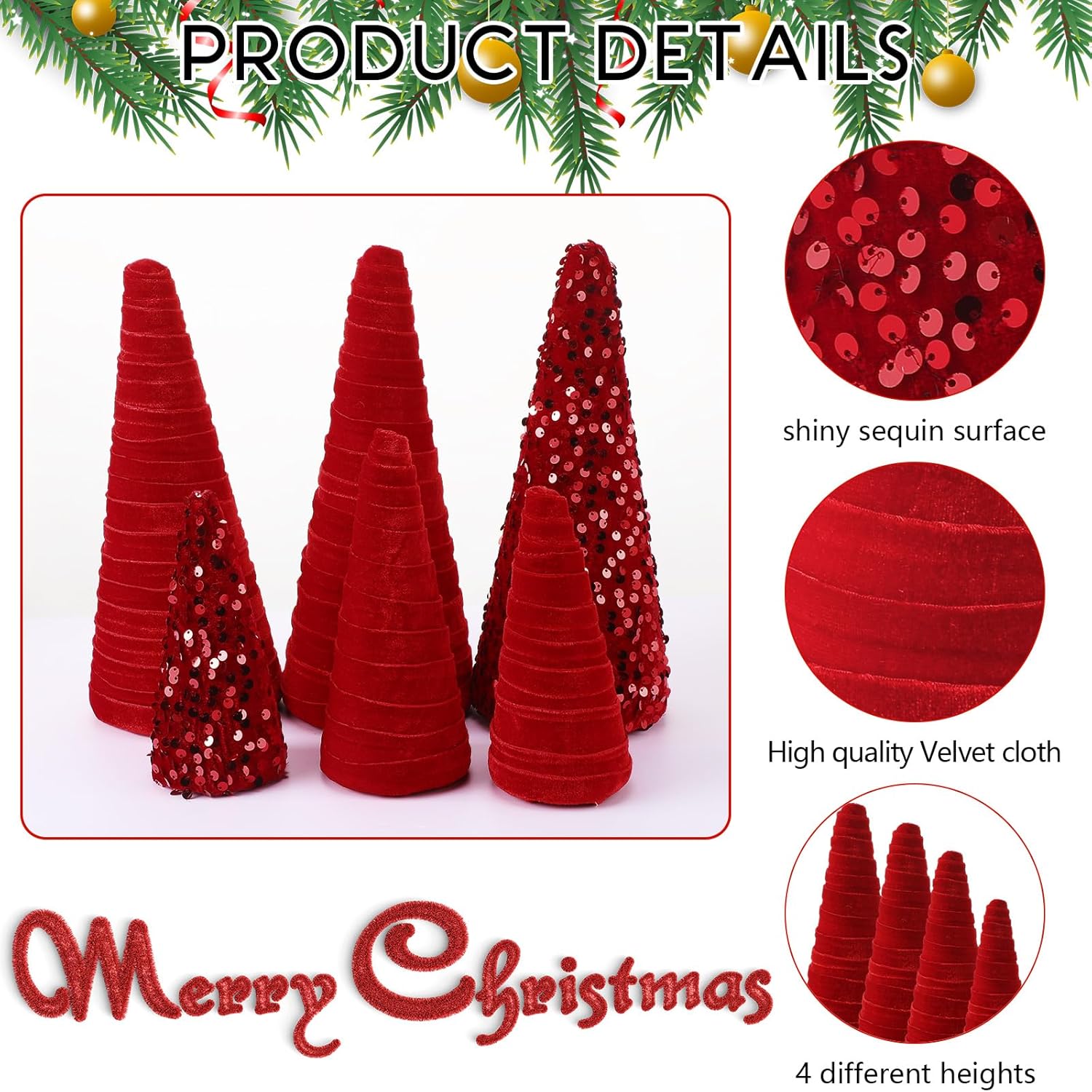 Syhood 6 Pcs Christmas Velvet Trees Set Christmas Modern Winter Tree Decorations, Christmas Home Decor, Rustic Winter Home, Minimalist Decor, Farmhouse Home Decor (Red)