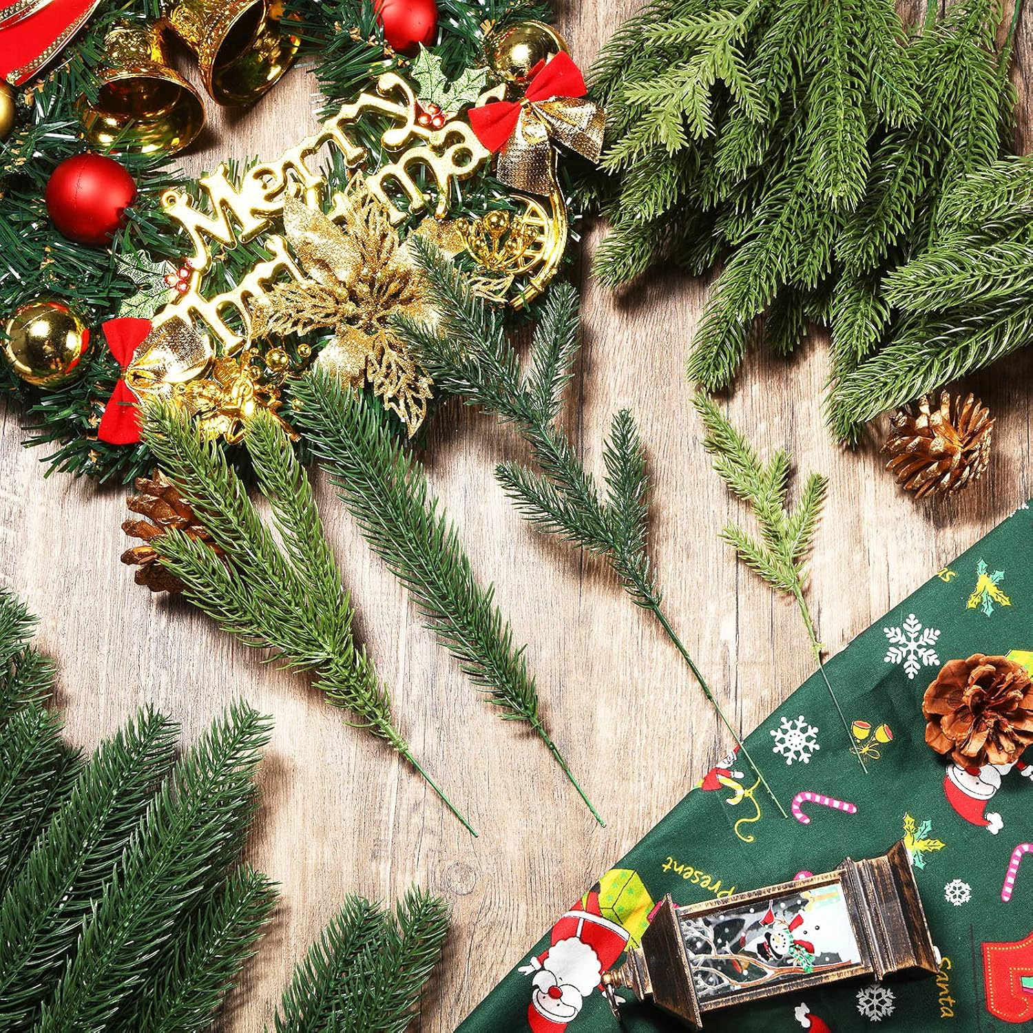 Syhood Christmas Artificial Pine Branches 4 Styles Pine Needles Faux Pine Tree Branches Garland Fake Greenery Picks for Mantle Garland Indoor Home Xmas Holiday Wall Decor(Green, 60 Pieces)