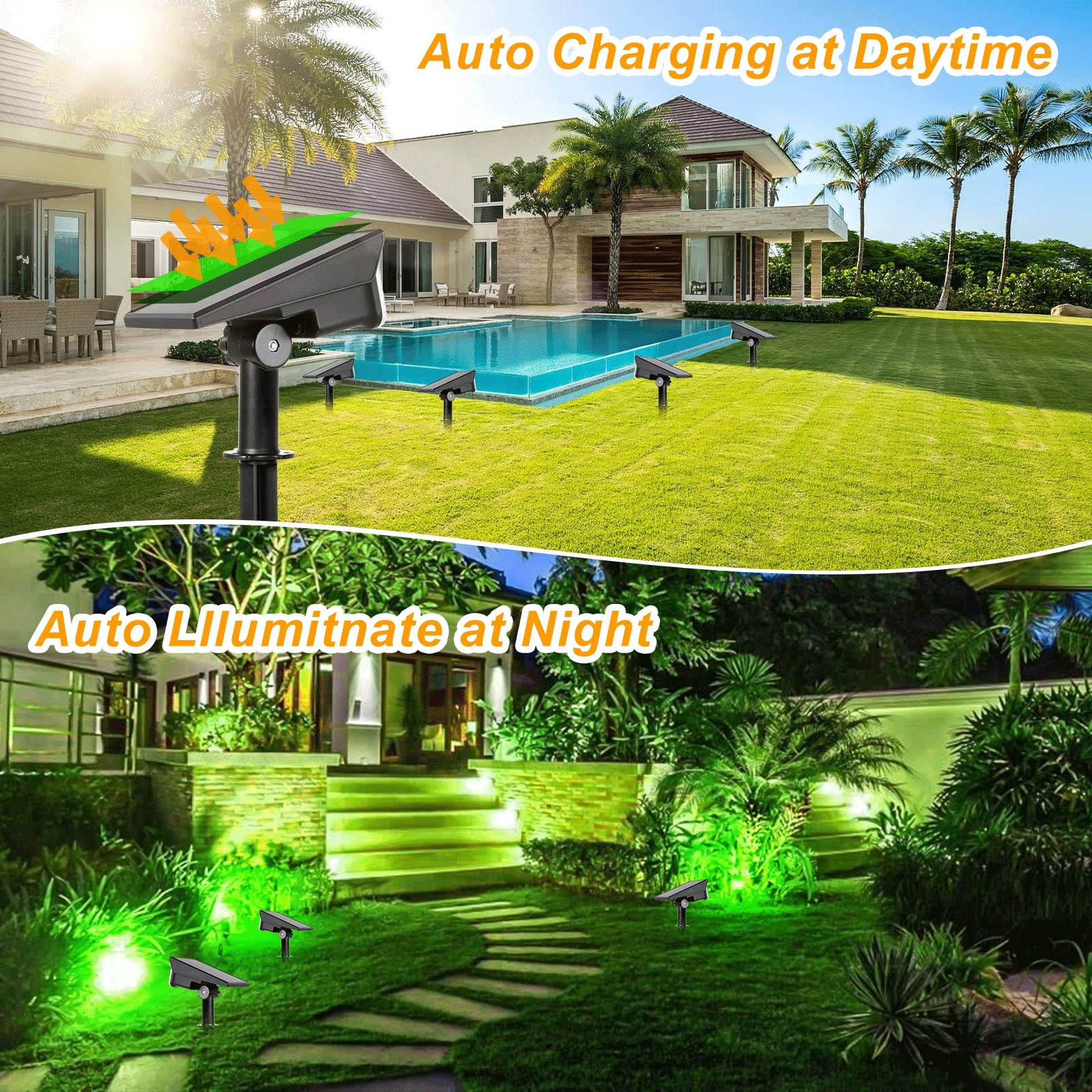 T-SUNUS Green Solar Lights Outdoor Waterproof IP65 Landscape Spotlights 2 Modes Dusk to Dawn for Christmas Halloween Tree Statue Graveyard Garden Flag 4 Pack