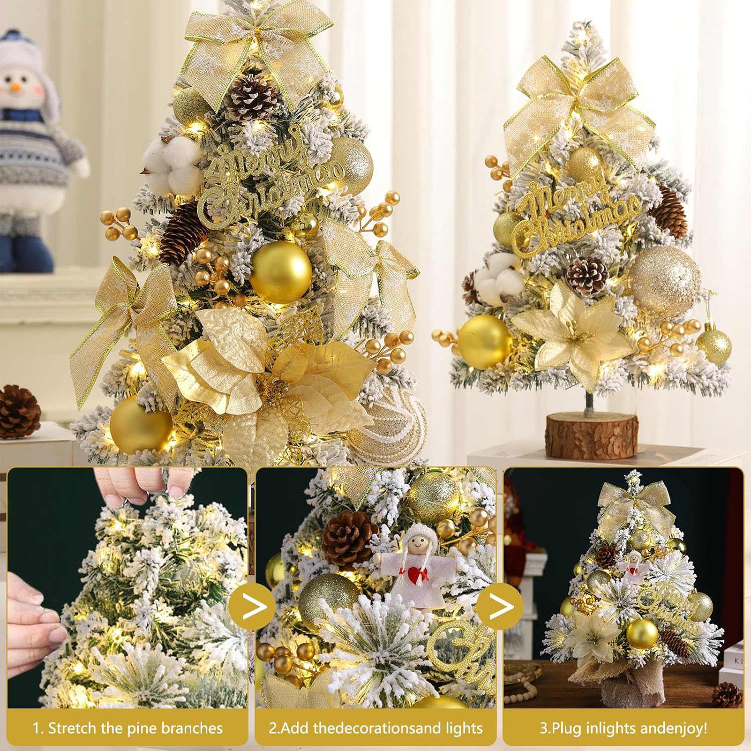 Tabletop Christmas Tree, 24inch/2ft Mini Christmas Tree, Tabletop Small Xmas Tree for Holiday Indoor DIY Christmas Decoration (White)