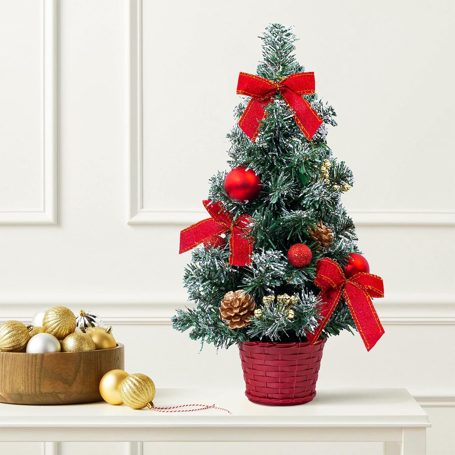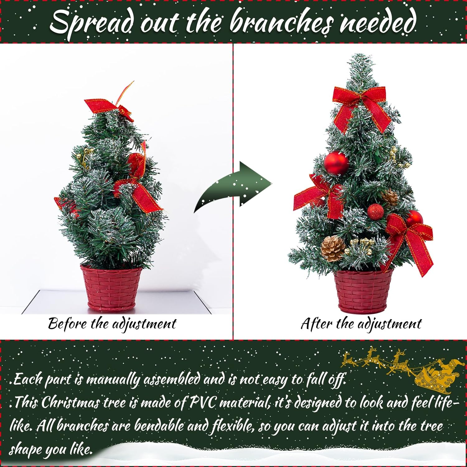 Tabletop Mini Christmas Tree, 15.74" Artificial Christmas Tree Miniature Pine Christmas Tree Perfect for Christmas Decorations, Home, Kitchen, Dining Table(Red)