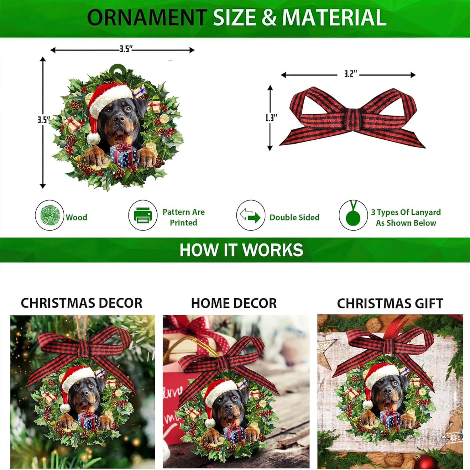 Talataca Rottweiler 2D Flat Wooden Christmas Ornament, Rottweiler Dog Wearing A Christmas Hat Wreath Pine Tree Decor, Hanging House Charm Eve Keepsake, Wood Car Mirror Accessories, Xmas
