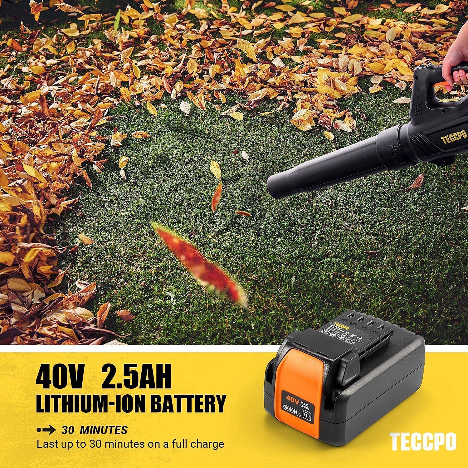 TECCPO 40V Cordless Leaf Blower Brushless, 420 CFM/110 MPH, 2.5Ah Samsung Battery and Charger Included, Fast Installation, 5-Speed Axial Blower, for Lawn Care and Snow Blowing -TDLB4025A