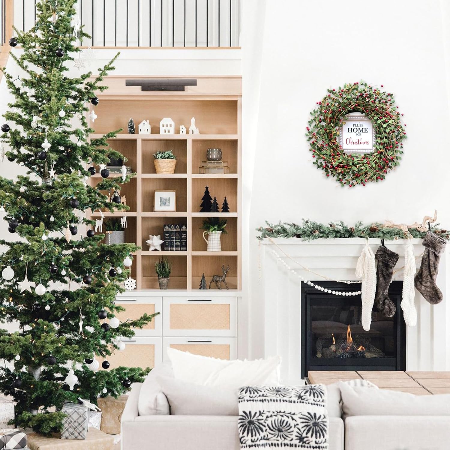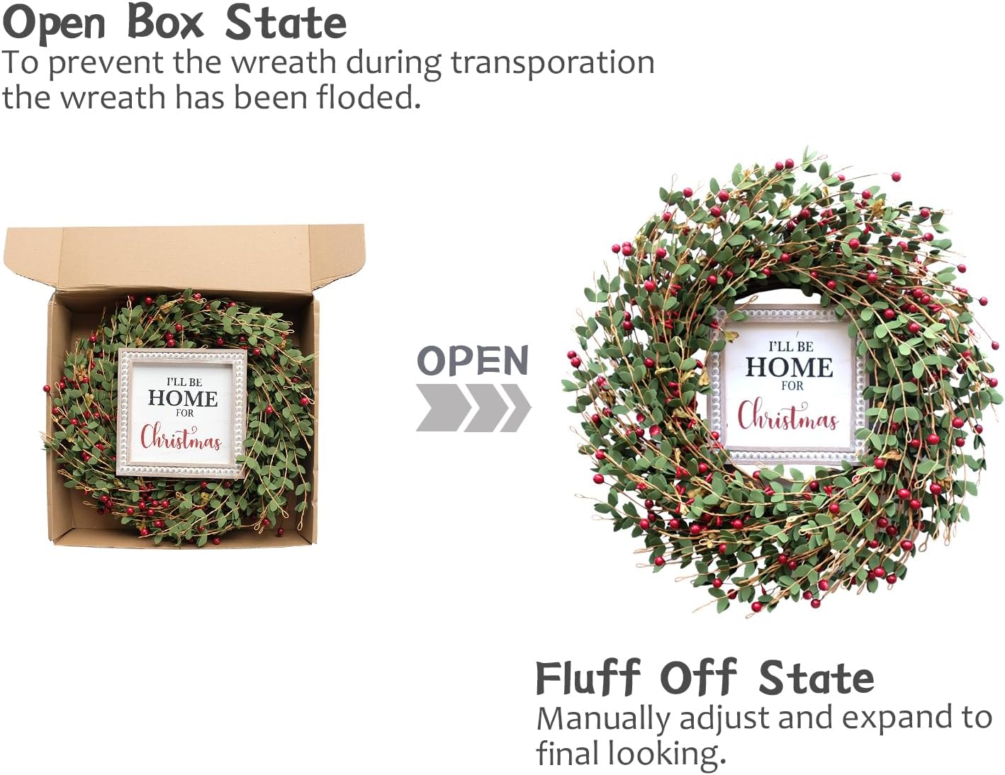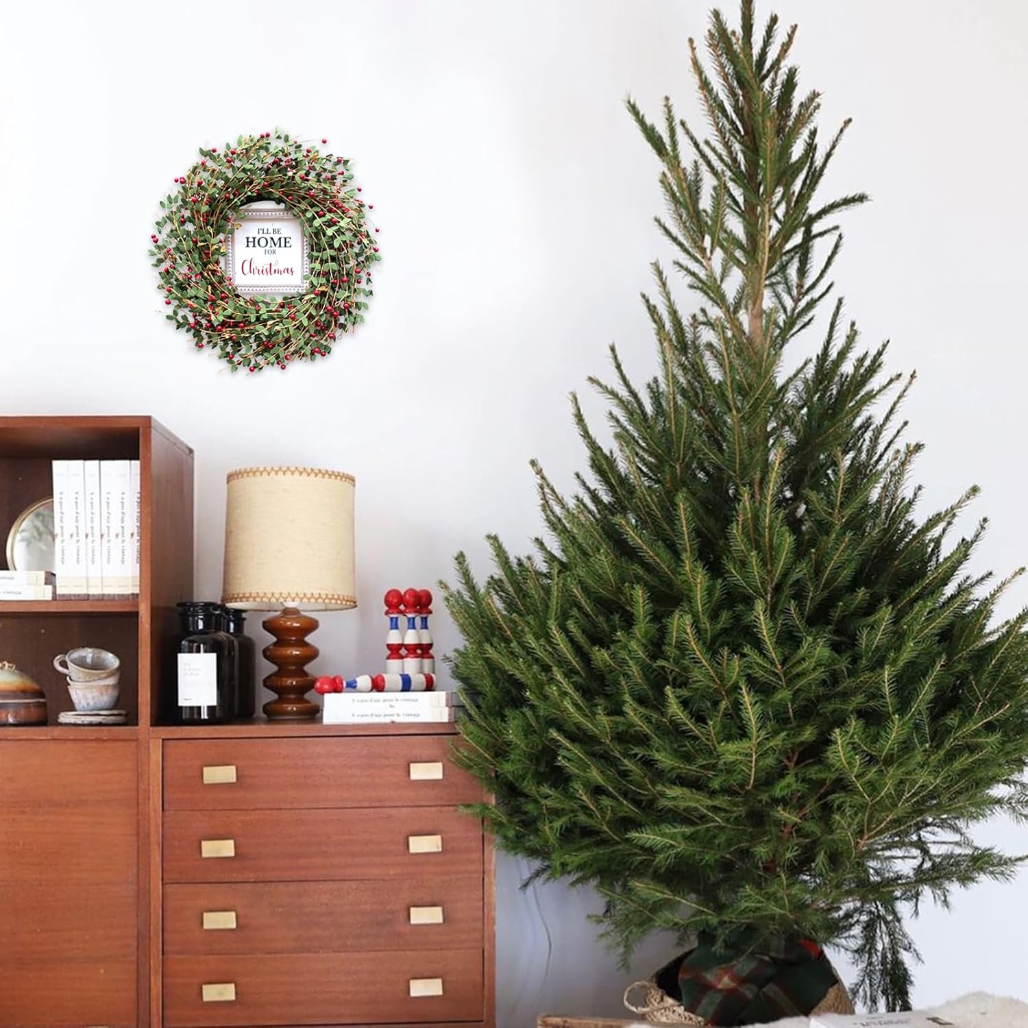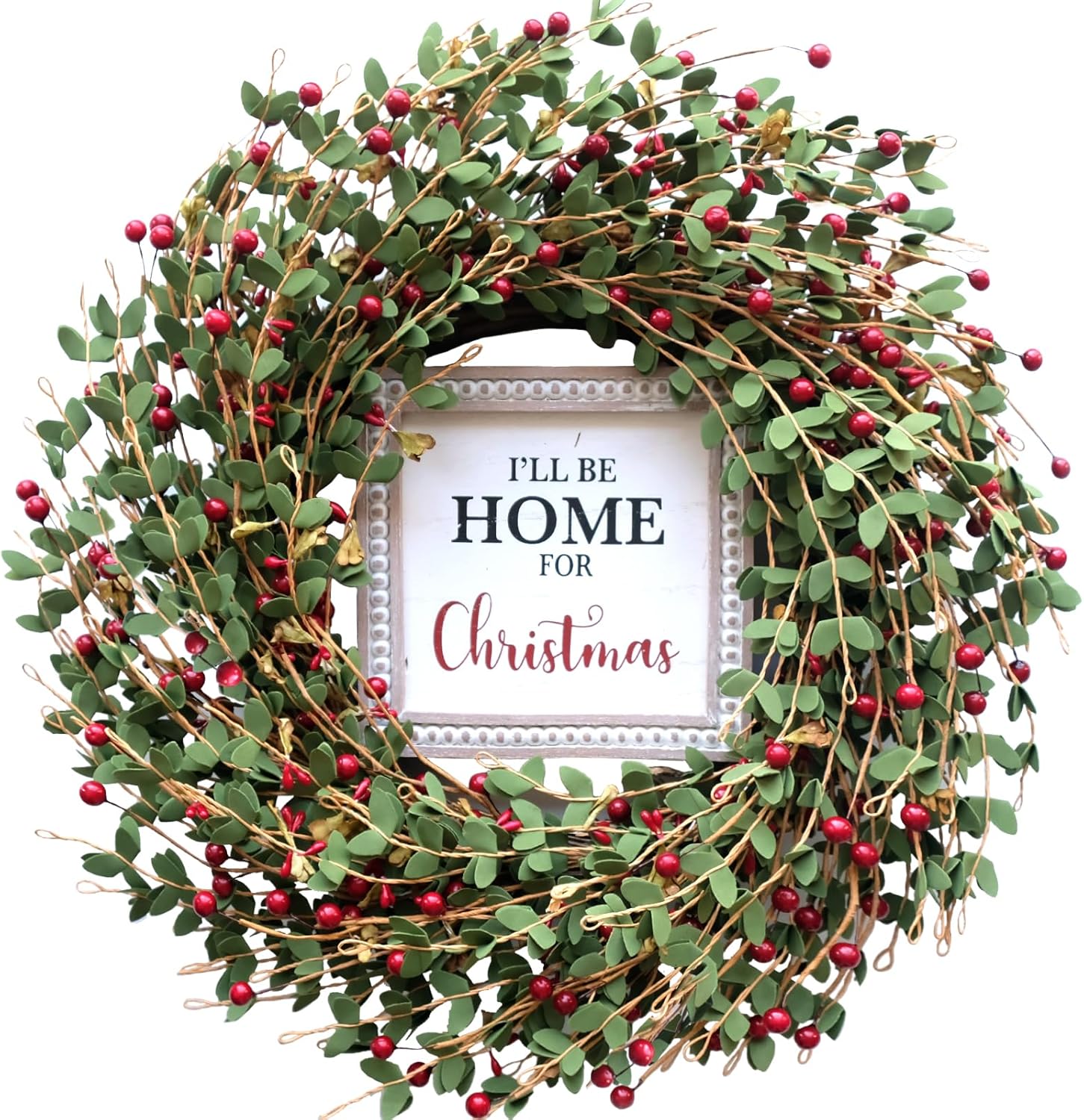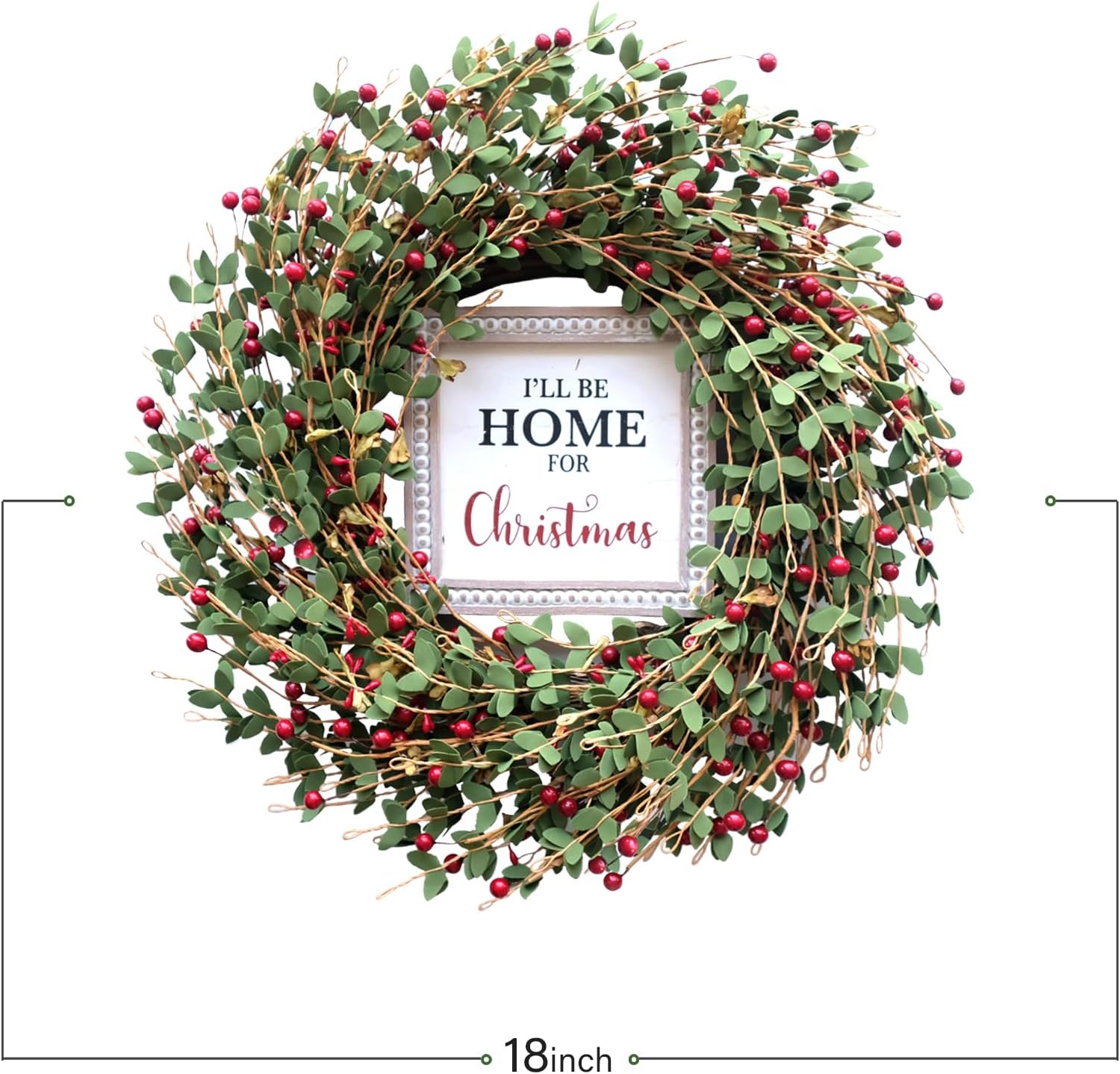 TEMPUS 20“ Christmas Wreath Artificial Berries Greens Wreath with Celebrate Christmas Sign Wreath for Front Door Wreath Home Farmhouse Holiday Party Festival Wall Decor (Red)