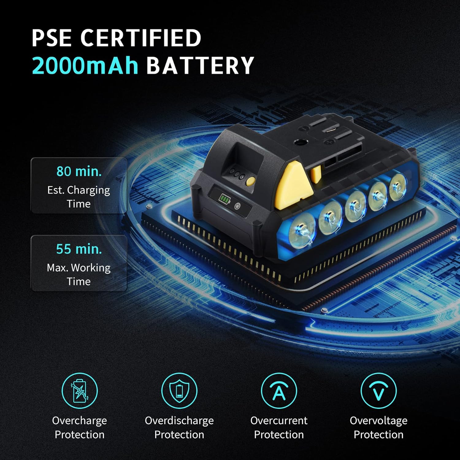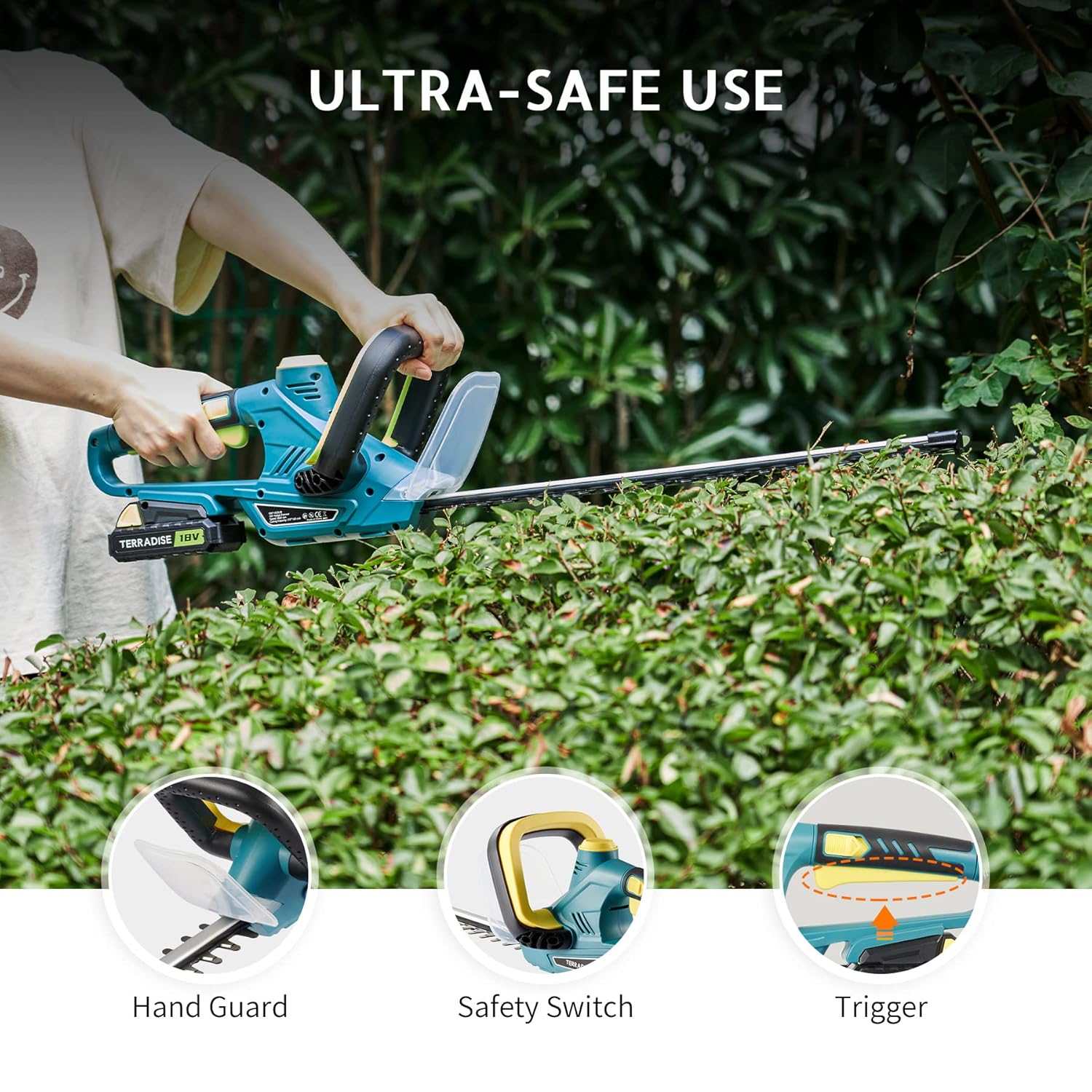 TERRADISE Cordless Hedge Trimmer with 2000mAh Battery Pack and Charger, Gardening Tool for Brush and Hedge Trimming, Electric Bush Cutter with 20" Dual Action Blades for Tree Branches Shrubs More