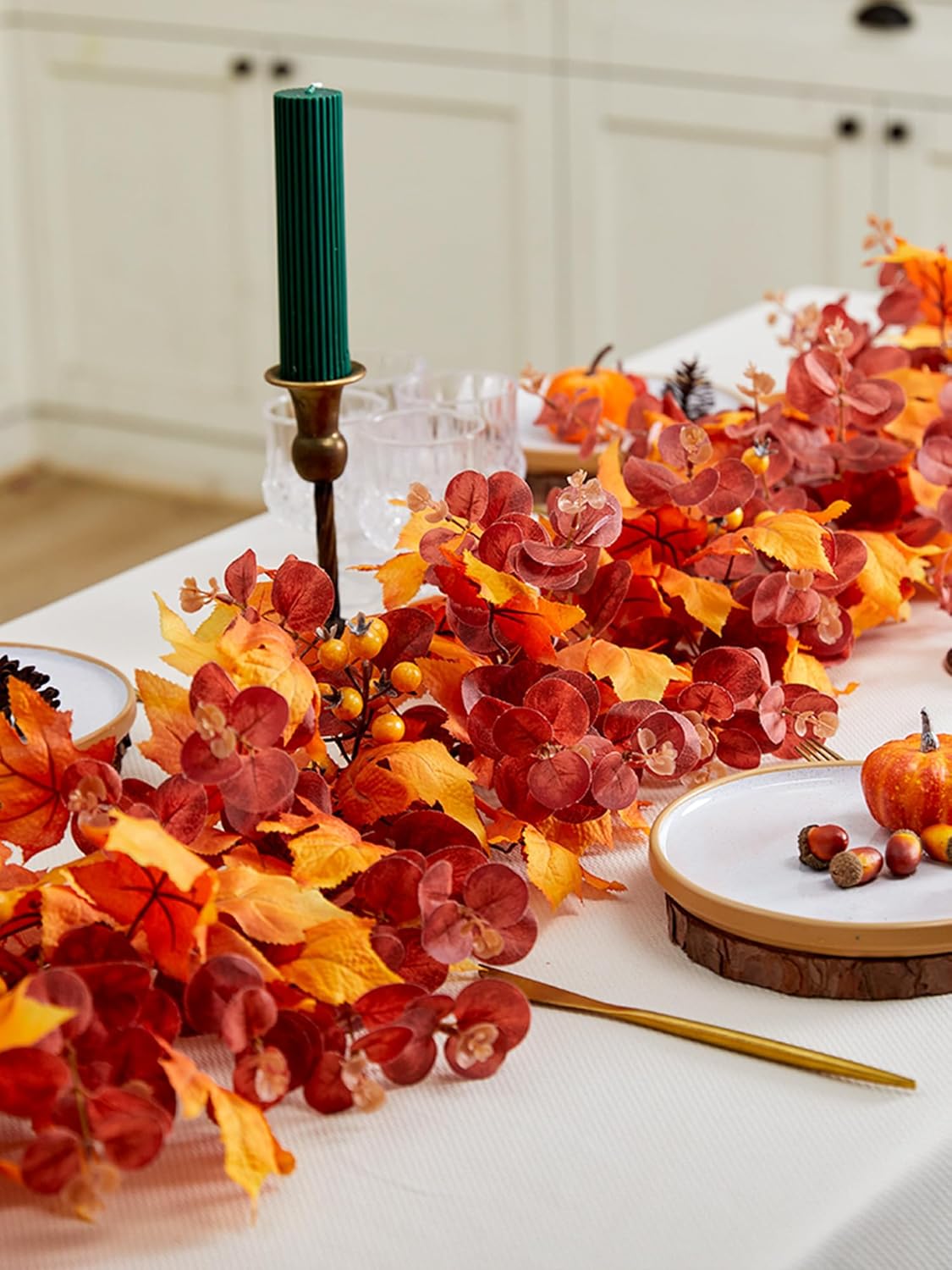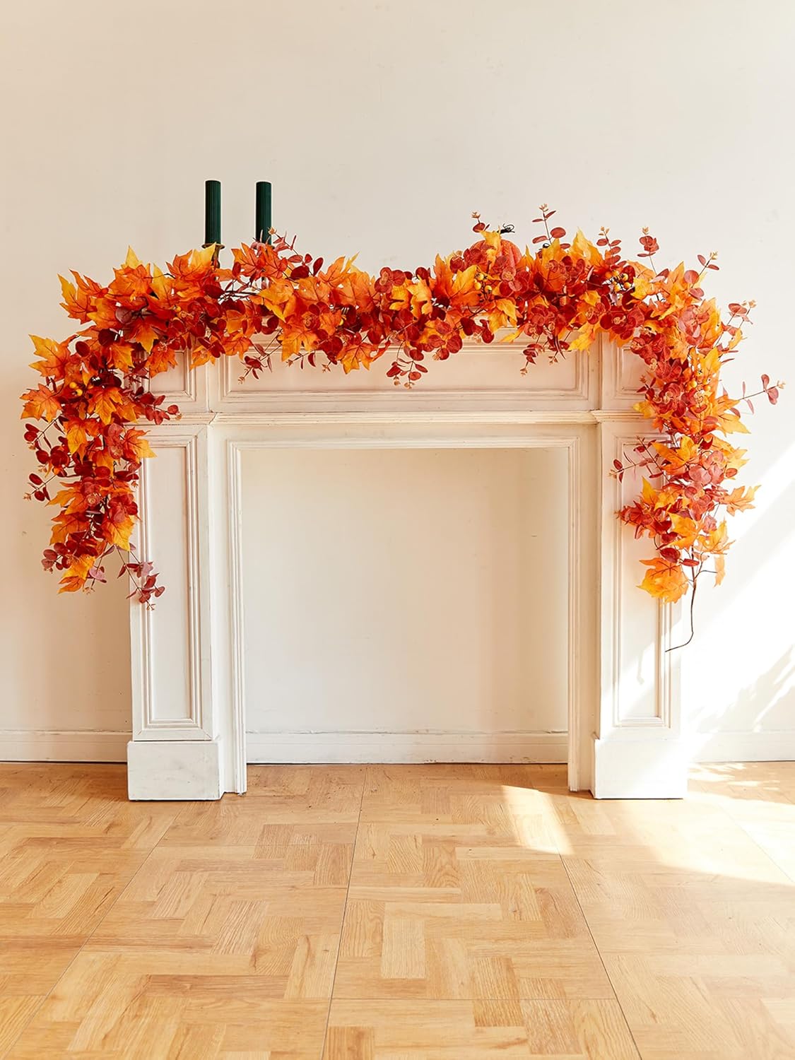 Thanksgiving Decorations - Fall Decor - Fall Garland - 9FT Autumn Maples Leaf Garland for Autumn Decor Hanging Vine Garland for Halloween Thanksgiving Decor Home Wedding Fireplace Party Christmas