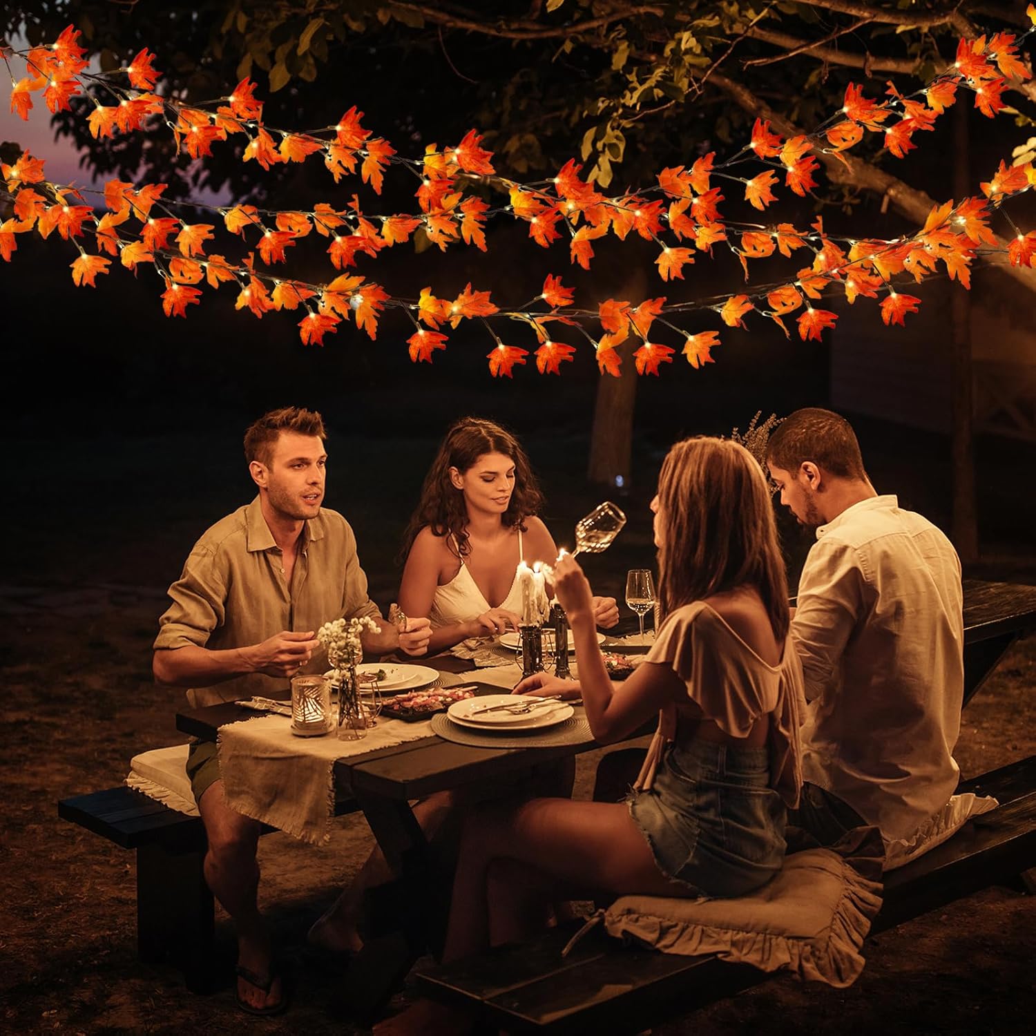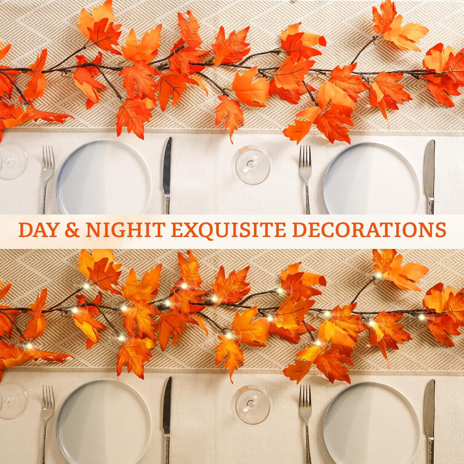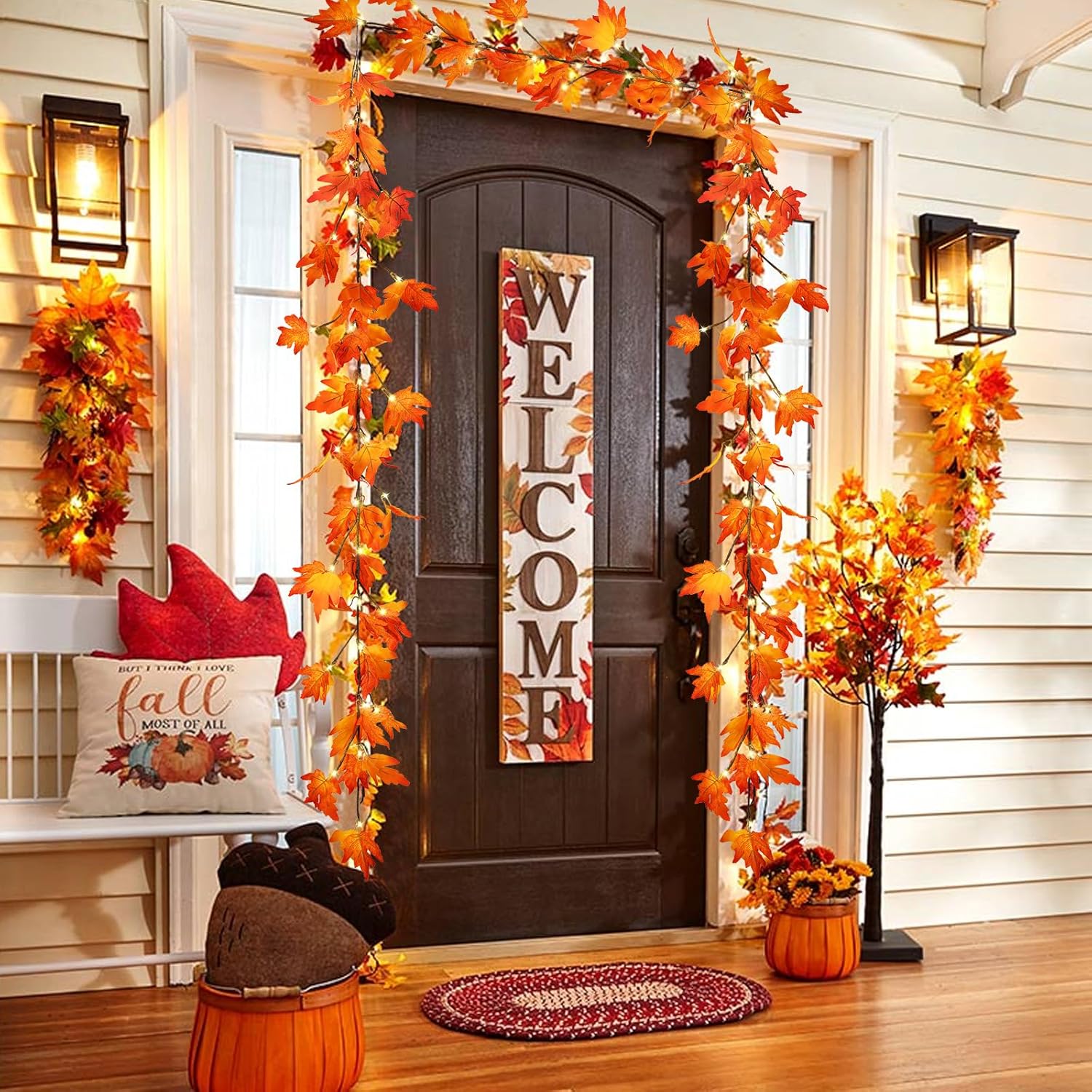 Thanksgiving Decorations Fall Garland with Lights 6 Ft Fall Maple Leaf Garland with 36 Fairy Lights for Indoor Outdoor Autumn Harvest Halloween Fall Decor Home Wedding Fireplace Party Christmas