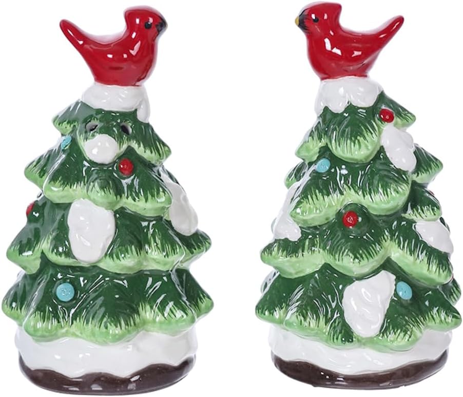 The Bridge Collection Snowy Christmas Tree Salt and Pepper Shakers - Festive Ceramic Salt & Pepper Shakers - Christmas Trees with Cardinals Holiday Kitchen Tabletop Decor