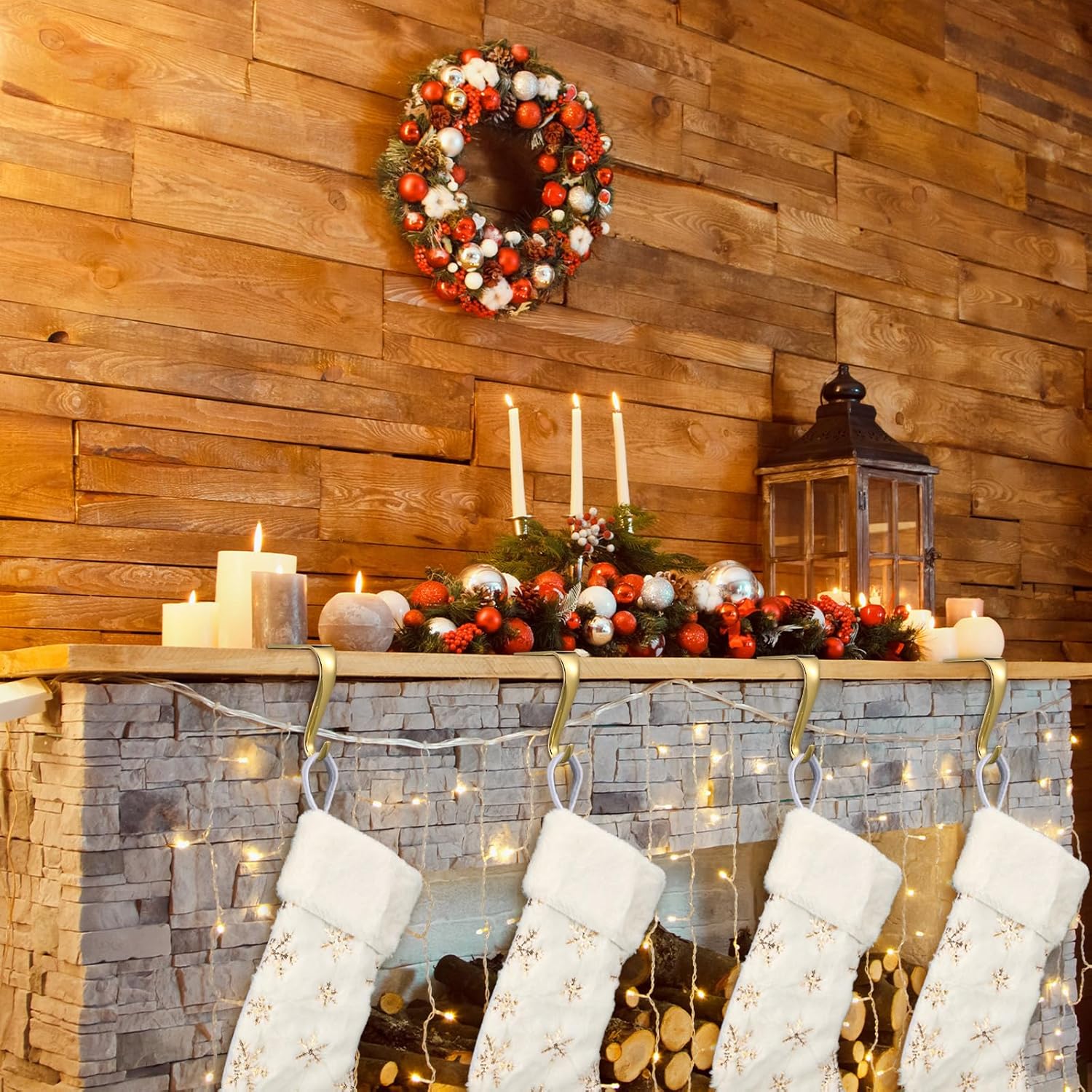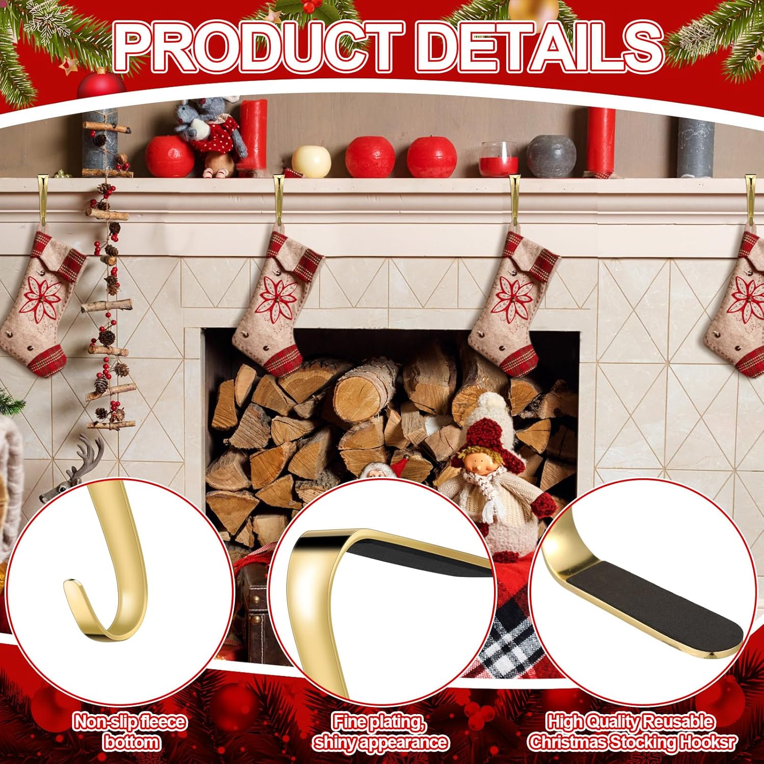 Therwen 18 Pcs Christmas Stocking Holders for Mantel Heavy Duty Fireplace Hanger Hooks Mantel Stocking Hooks Christmas Garland Hanger Metal Mantle Grips for Fireplace Shelf Party Decoration (Gold)