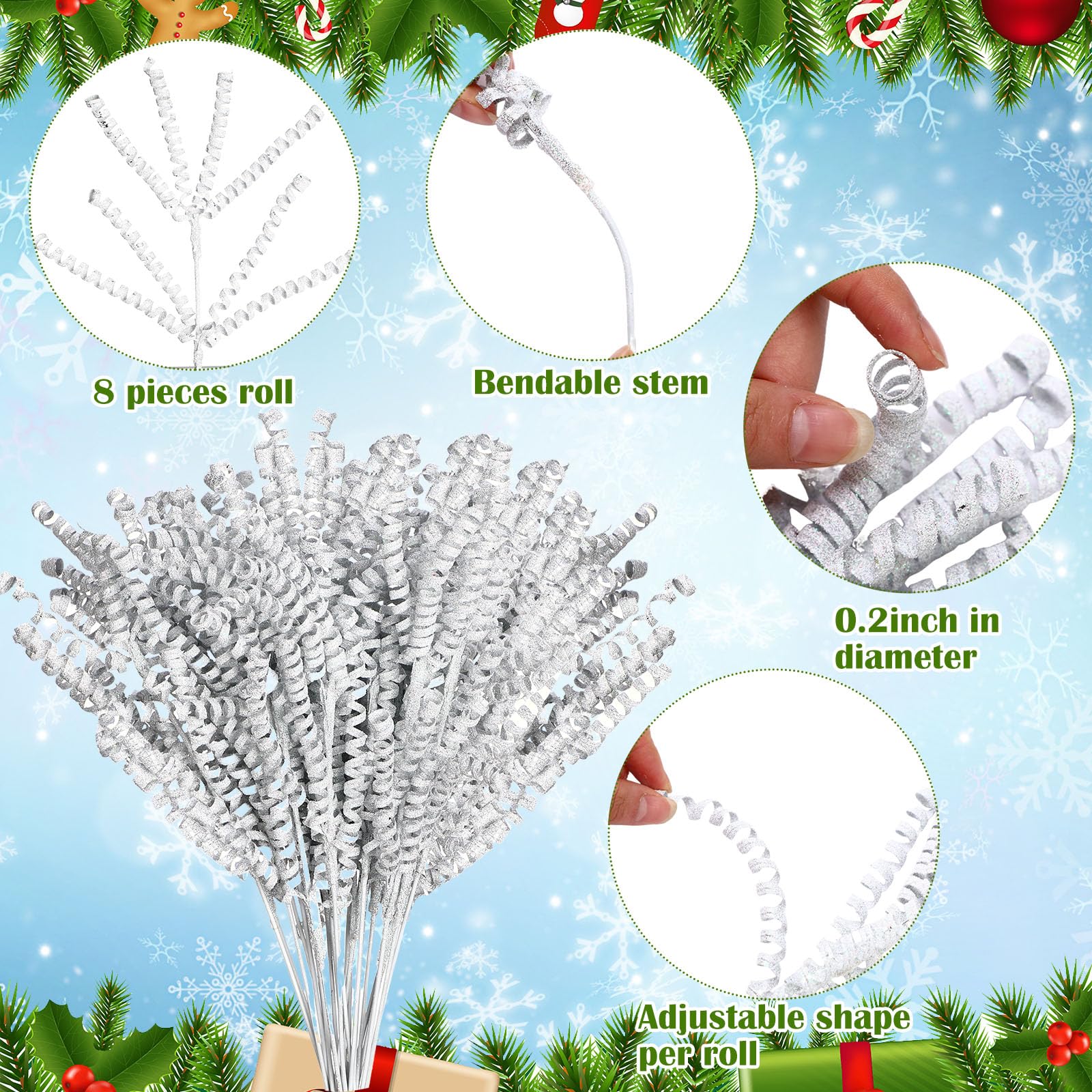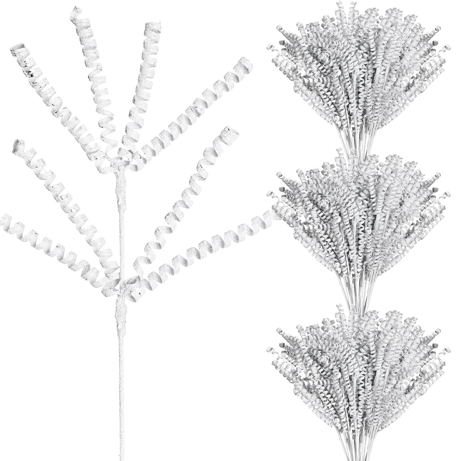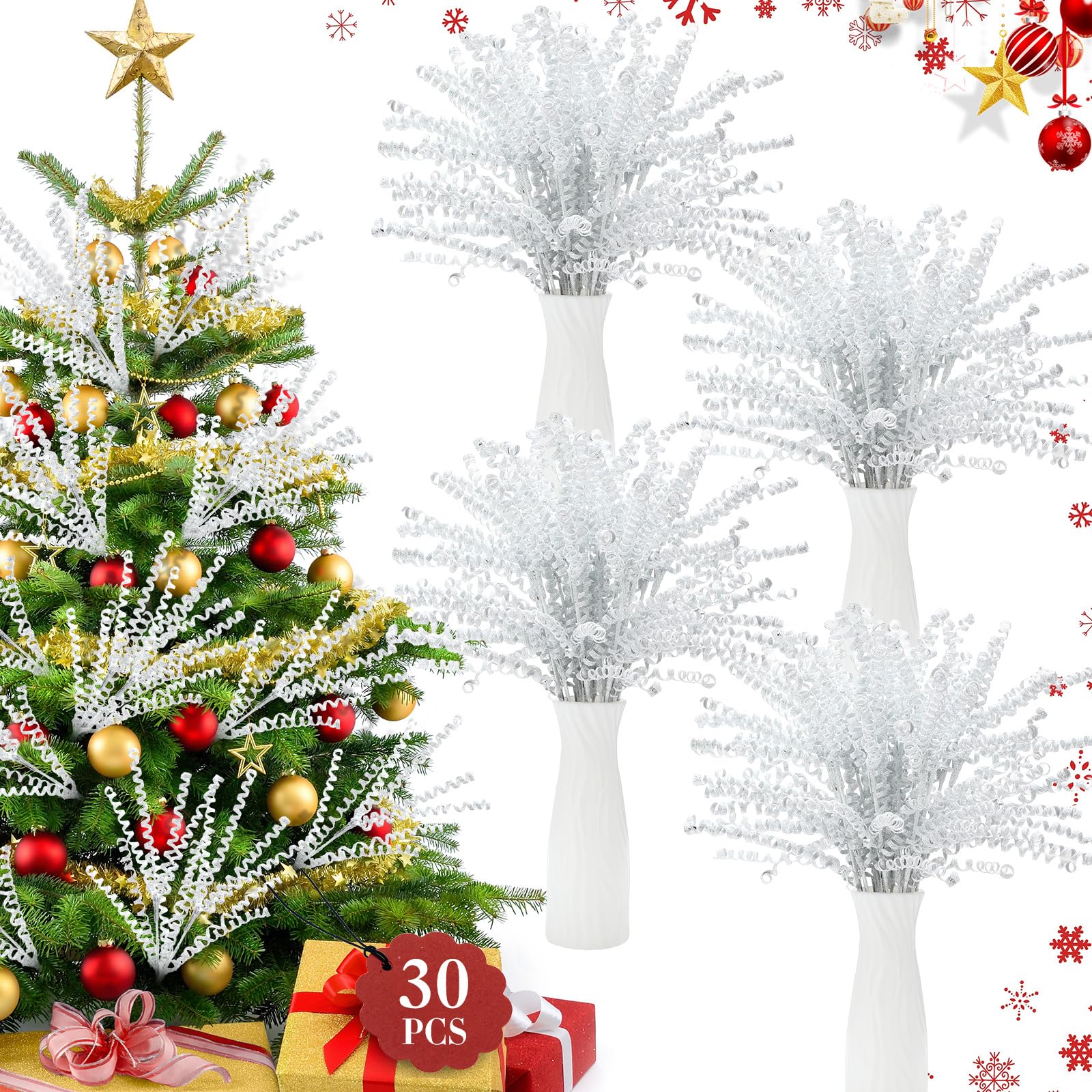 Tigeen 30 Pcs 16.5" White Christmas Tree Curly Picks Sprays Artificial Glitter Stems Glittery Twigs Branches for Christmas Tree Ornament Vase Filler DIY Garland Wreath Crafts Holiday Home Decor