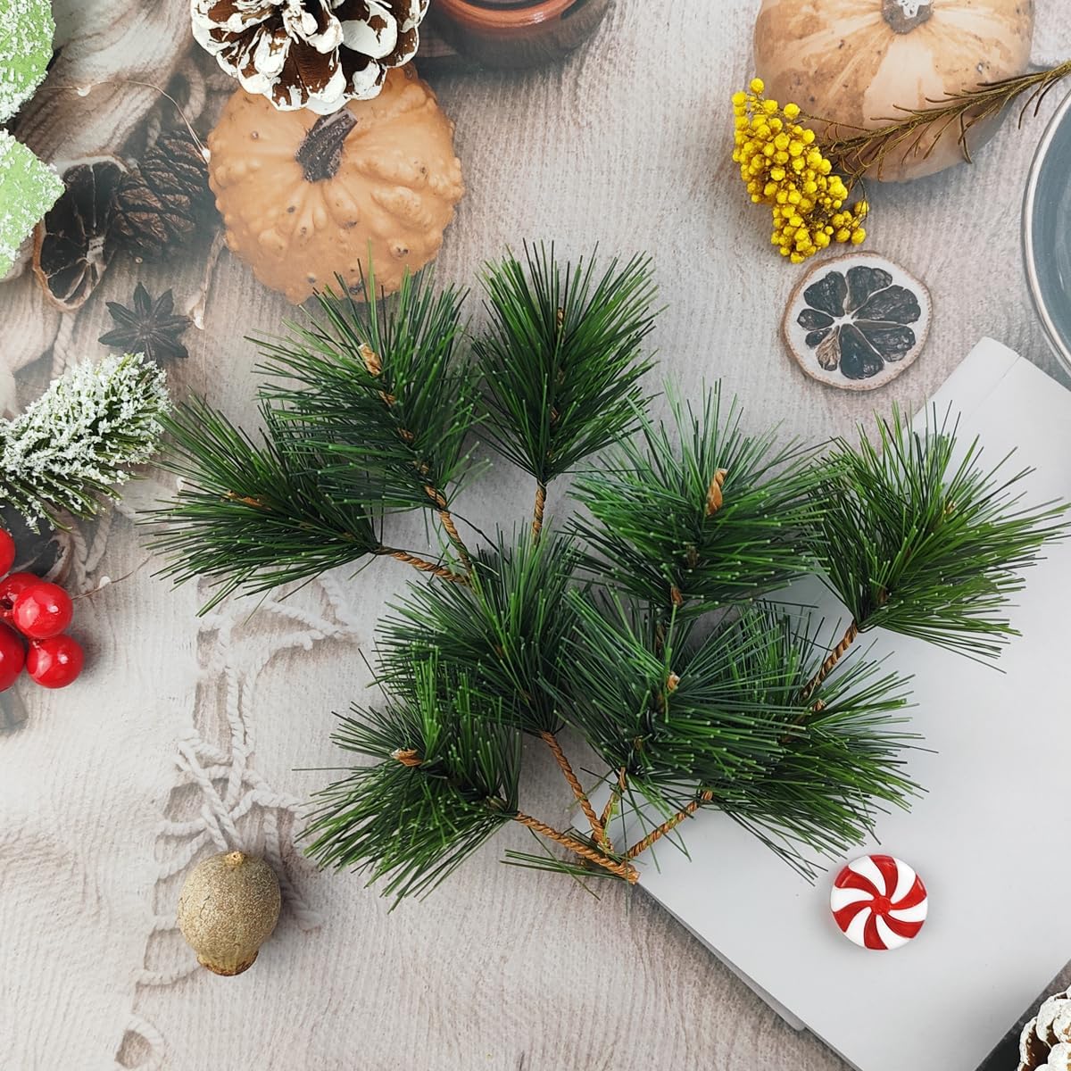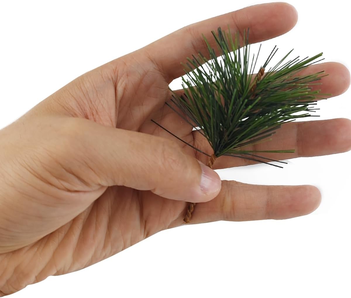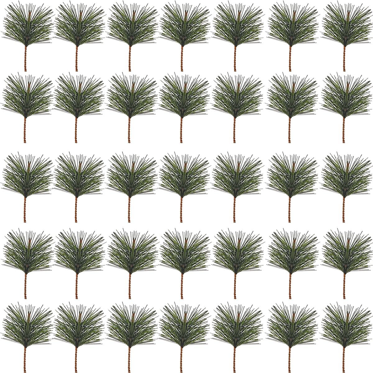TIHOOD 35PCS Artificial Green Pine Needles Branches -Small Pine Twigs Stems Picks-Fake Greenery Pine Picks for Christmas Garland Wreath Embellishing and Home Holiday Garden Decoration