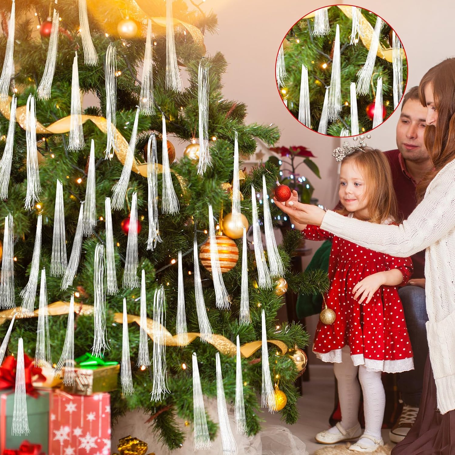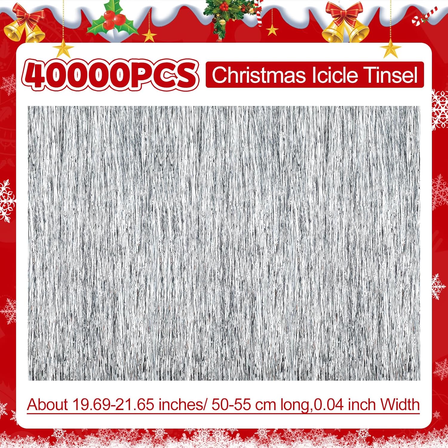 Timgle 40000 Pcs Icicle Tinsel Strands for Christmas Tree Tinsel Foil Fringes Shiny Icicles Garland for Christmas Tree Party Decor Birthday Supplies (Silver)