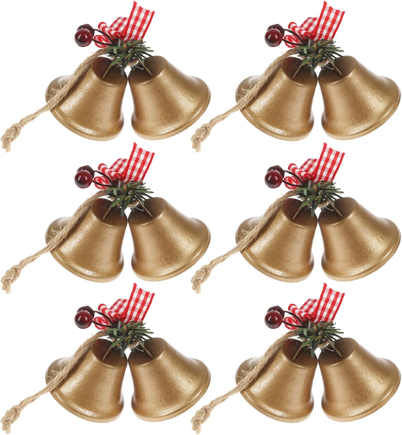 Tinsow 6 Pcs Red Christmas Bells, Tree Hanging Ornament Metal Jingle Bells for Christmas Holiday Decoration (6, Gold)