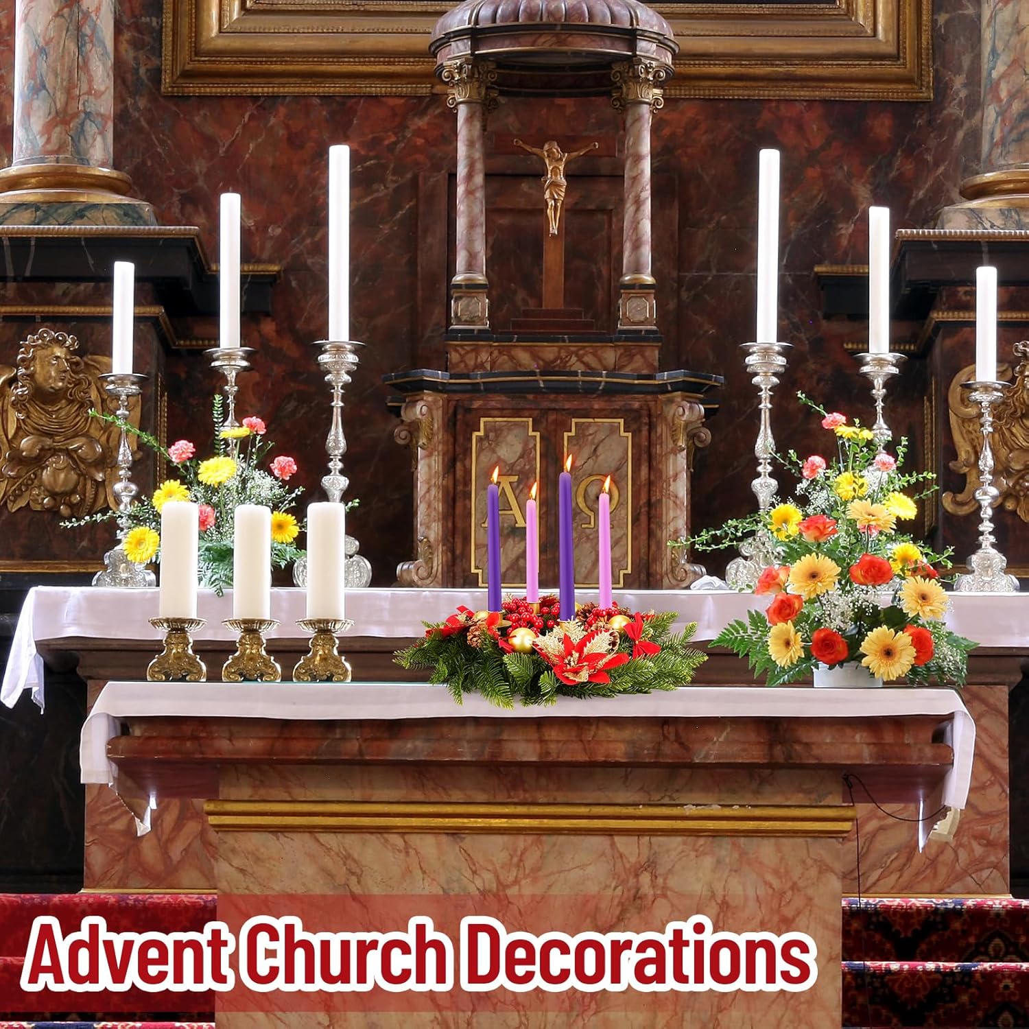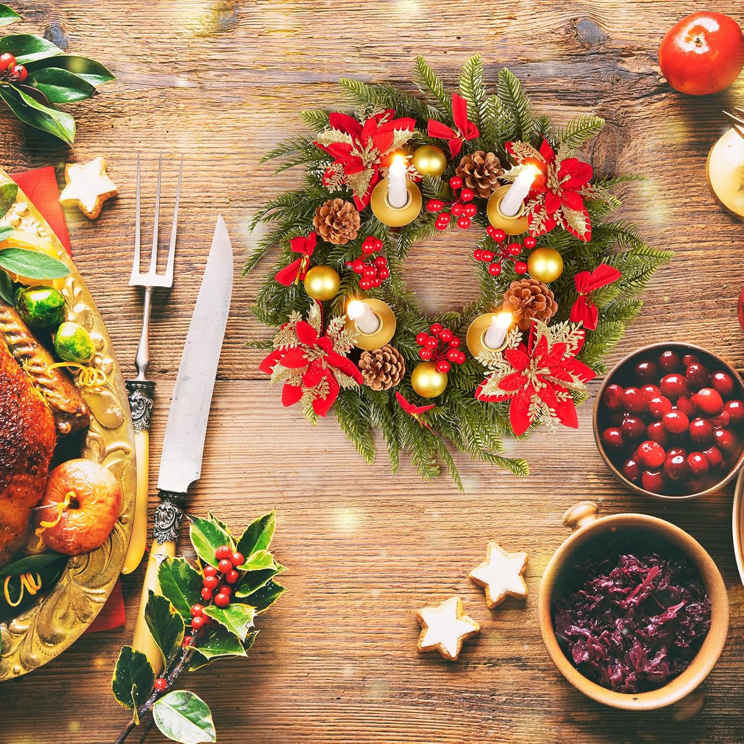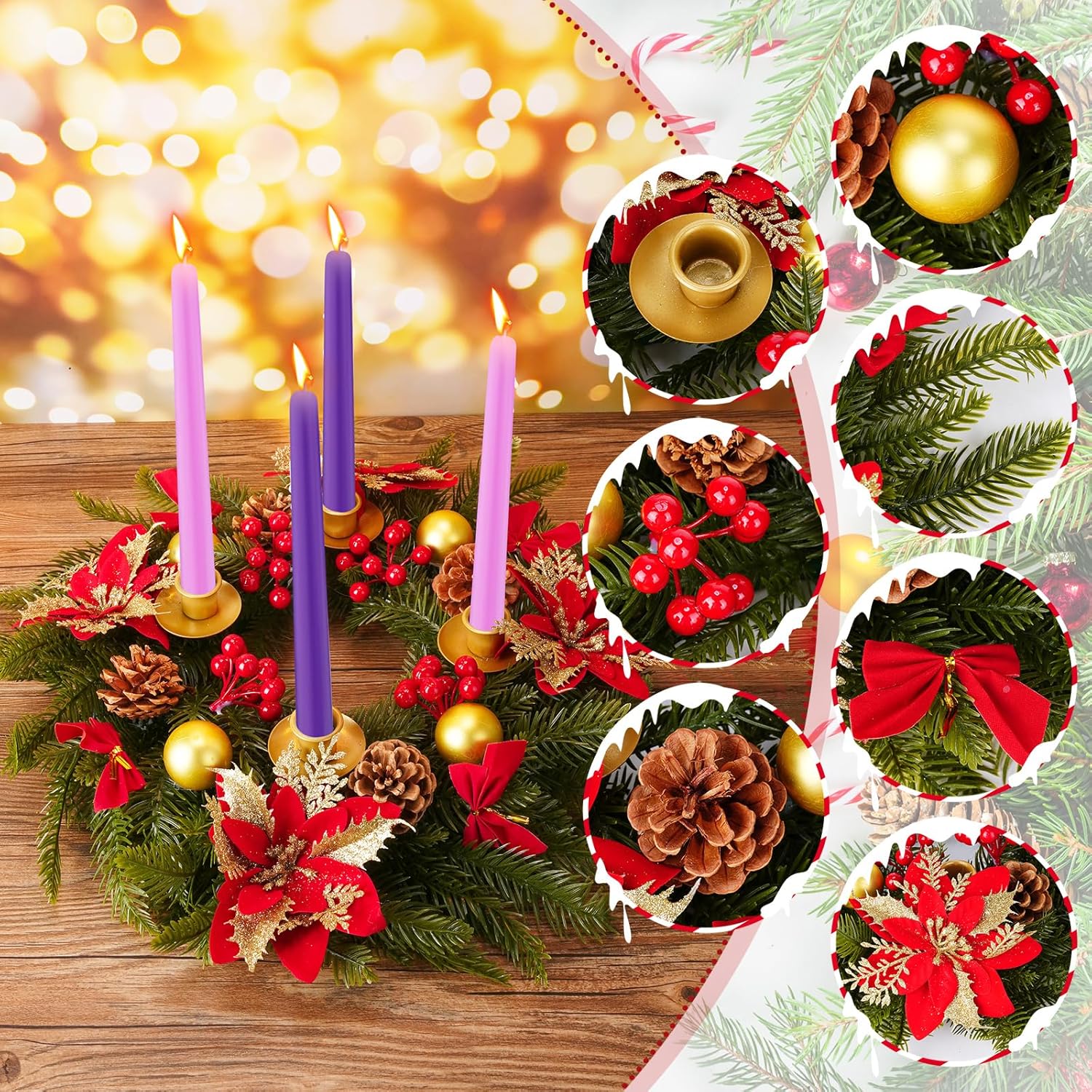 Tioncy 17 Inch Christmas Advent Wreath Candle Holder Christmas Table Centerpiece Decoration Advent Candle Holder Wreath with Pine Cones Holly Berries Stem Bow Tie for Winter Church Decor Supplies