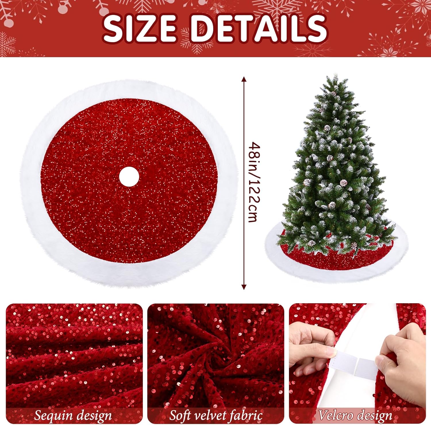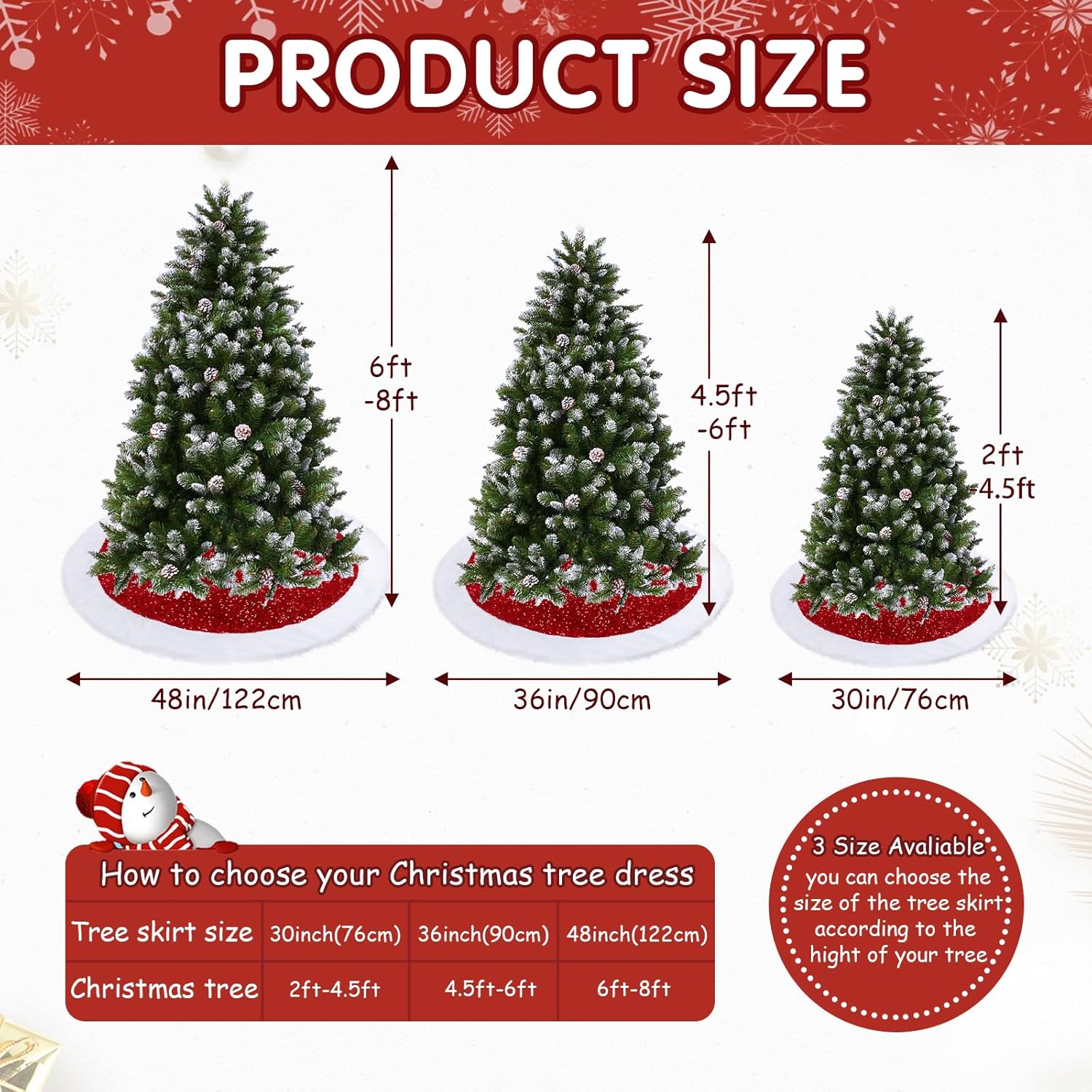 【Size & Color -Sequin Christmas Tree Skirt】Sequin tree skirts with luxury white faux fur edge,full dense sequins embroidered on round carpet. There are three different sizes for you to choose,30in sparkle tree skirt suits for 2-4FT small trees,36in sparkle tree skirt suits for 4-6FT medium trees,48in sparkle tree skirt suits for 6-8FT large trees. Please measure the size of Christmas tree and choose the suitable sizes when you purchasing the sequin plush tree skits.【Premium Material-Sparkly Xmas Tree Skirt】This artificial Christmas tree skirt is made of quality velvet fabric,soft faux fur and non-woven bottoms and with 5MM flip sequins embroidered on the surface. Double layer design and soft velvet combined,making the tree skirt more gorgeous and charming.Christmas tree skirt will sparkle beautifully under the lights,creating a luxurious and elegant look of your Xmas tree.