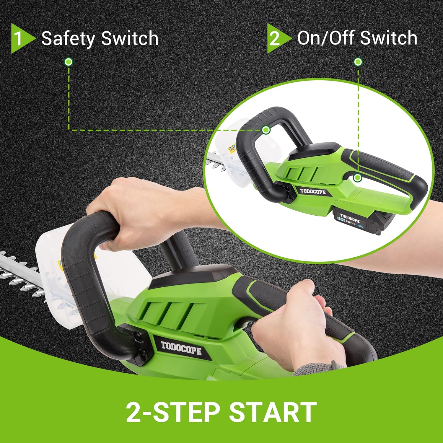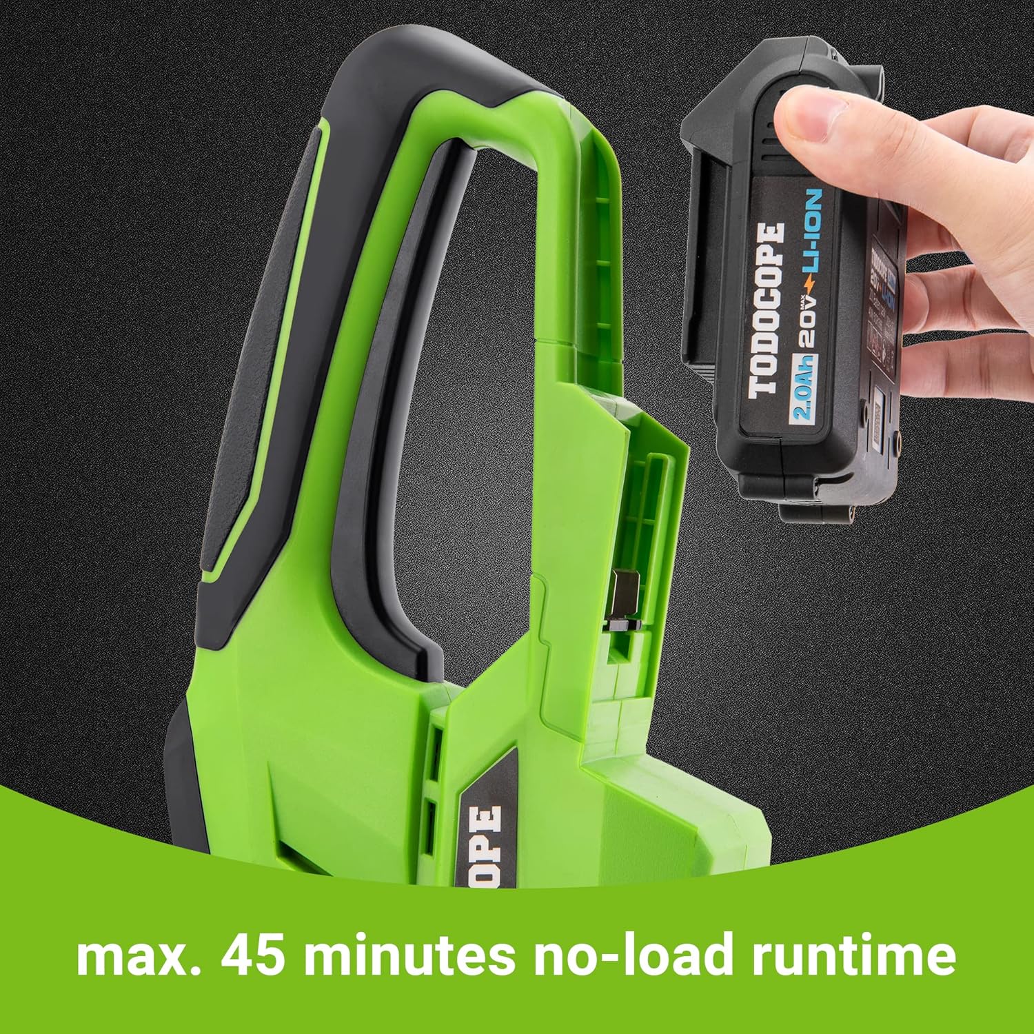 TODOCOPE 20V Cordless 23 Inch Quick Charge 2.0AH Battery Powered Hedge Trimmer, Dual-Action Blade, 5/8" Cutting Capacity & 5 lbs Lightweight Electric Bush Trimmer, Green, (TDC-CHT20)