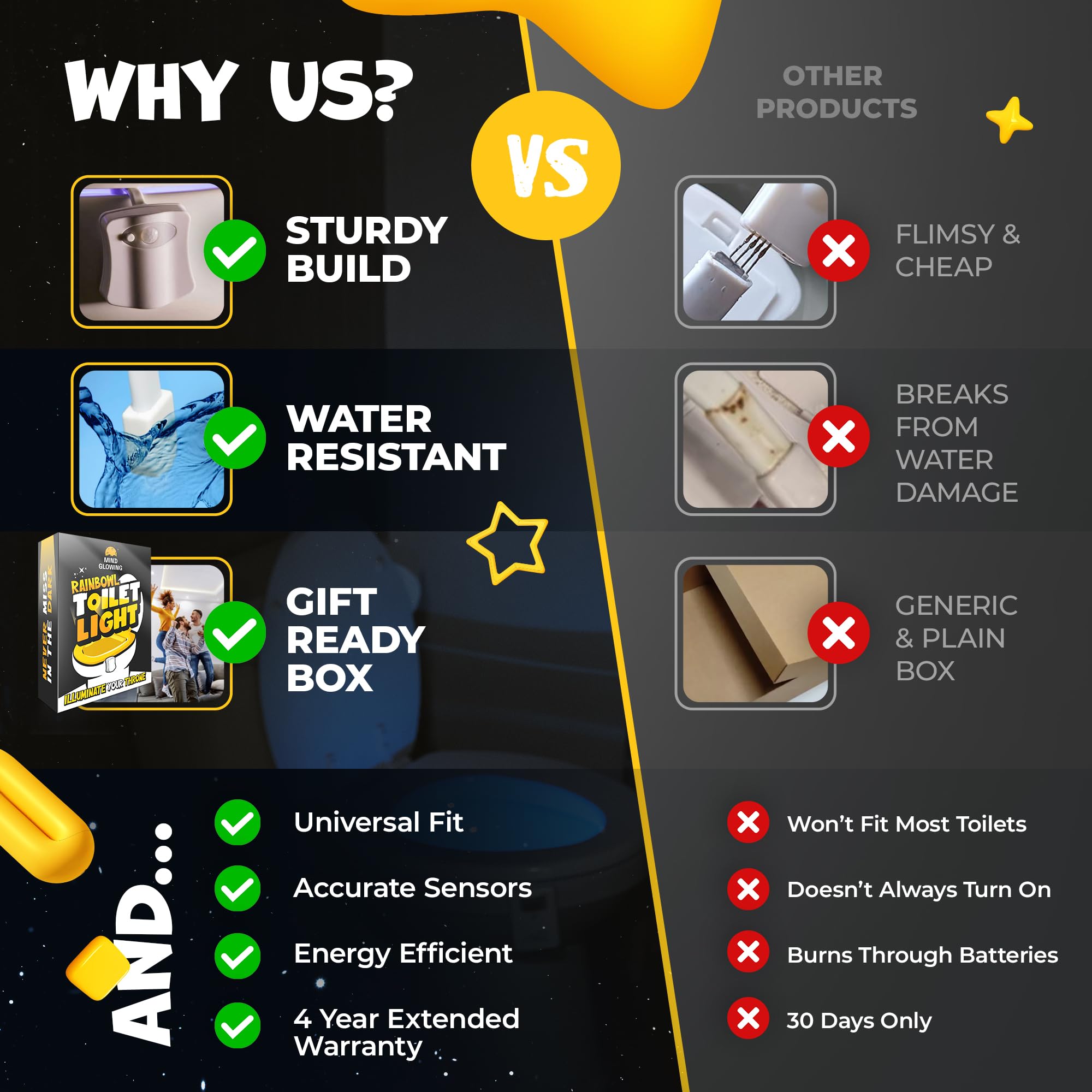 Toilet Bowl Night Light - Unique Cool Gadget with Motion Sensors & Multi Color LED - Mens Stocking Stuffer - Funny Gag Christmas for Dad, Boyfriend, Husband - White Elephant s for Men