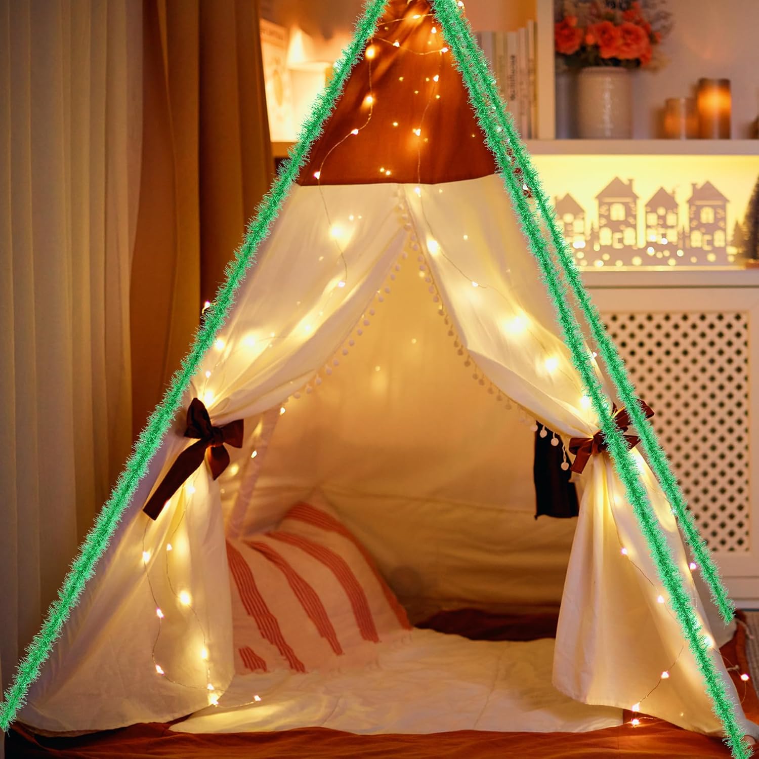 Tongcloud 4 Rolls Christmas Tinsel Ribbon Metallic Garland Tinsel Garland Christmas Metallic Tinsel Ribbon Glitter Tinsel Ribbon for Christmas (Gold, red, green, Silver, 19.6feetx0.7inches)