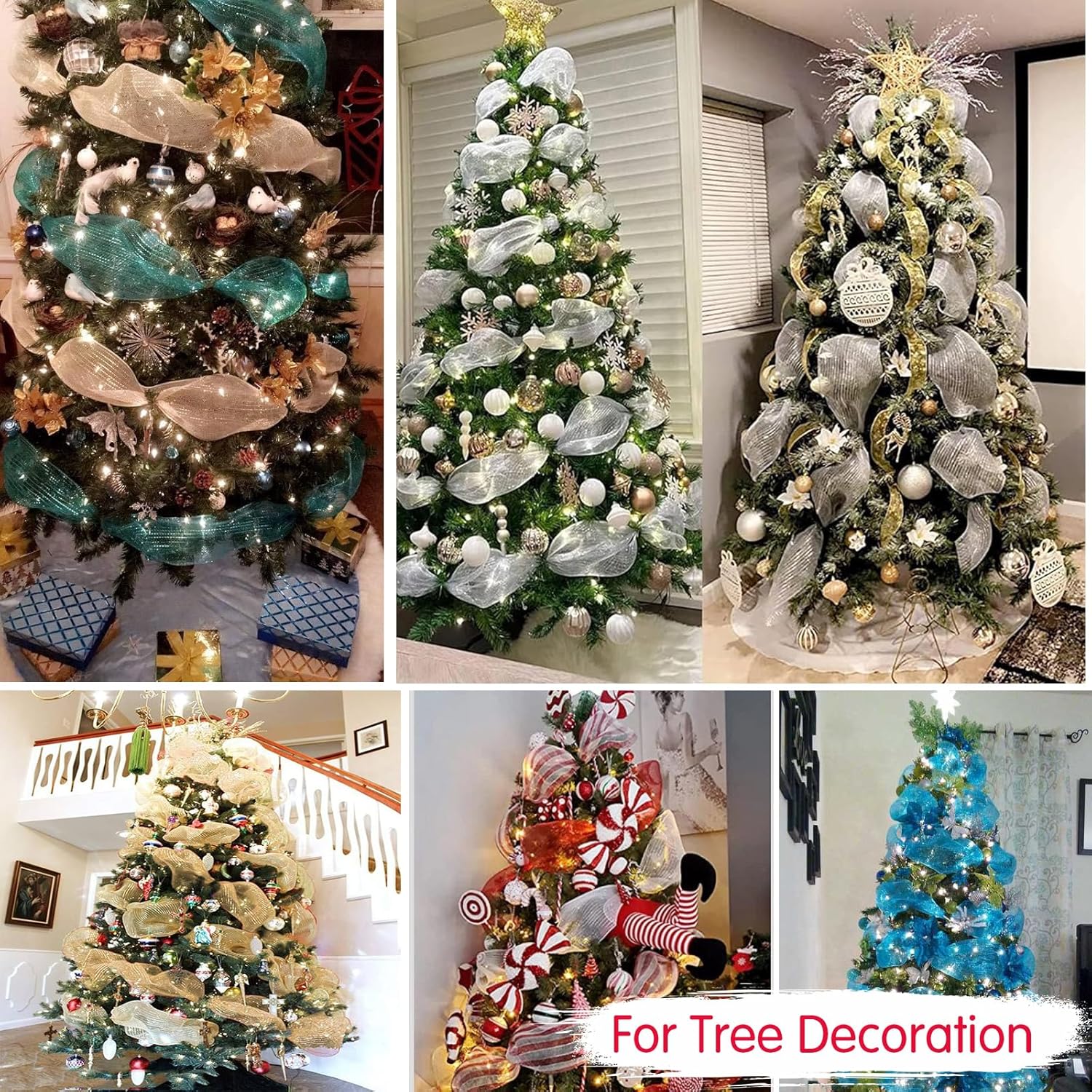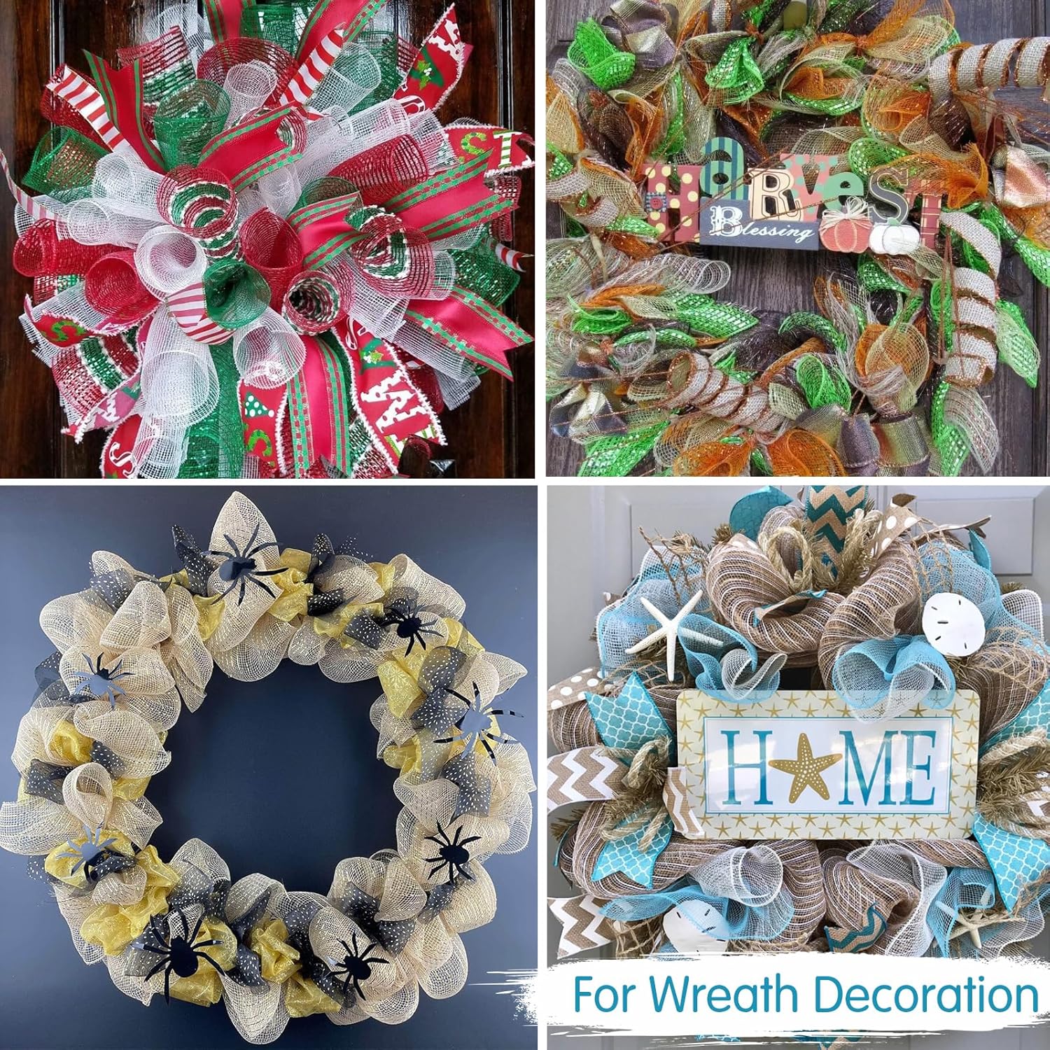 TONIFUL 4 Roll 10 Inch Red Striped Decorative Mesh Ribbon Rolls, Fabric Mesh with Foil for Wreaths Front Door Decor Christmas Festival Party Accessories Party Decoration Supplies (10yds/roll)