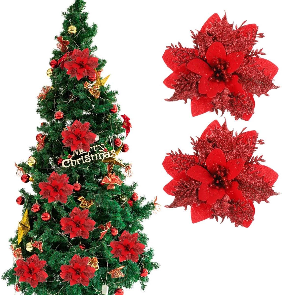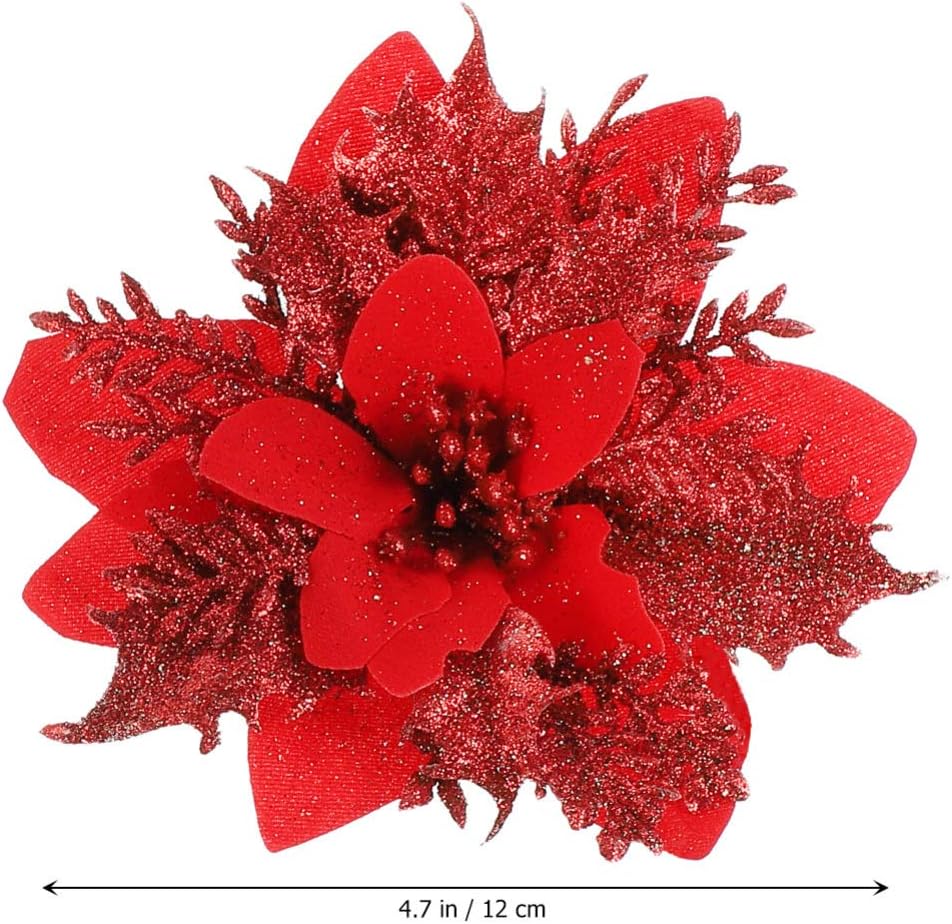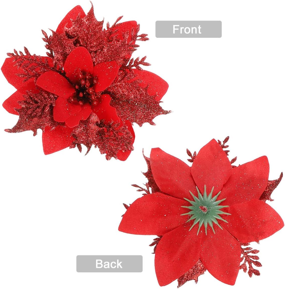 TOYANDONA 24 Pieces Christmas Glitter Poinsettia Flowers Christmas Tree Ornaments Artificial Flowers for Christmas Wreath Decoraiton (Red)