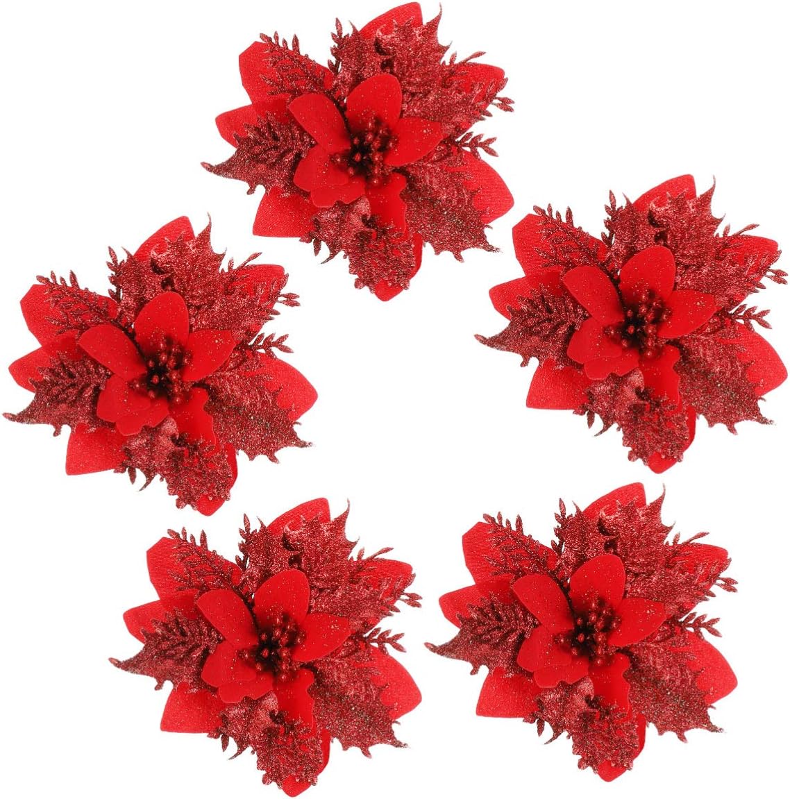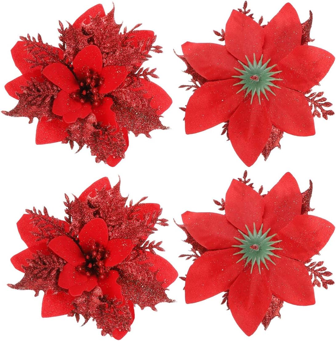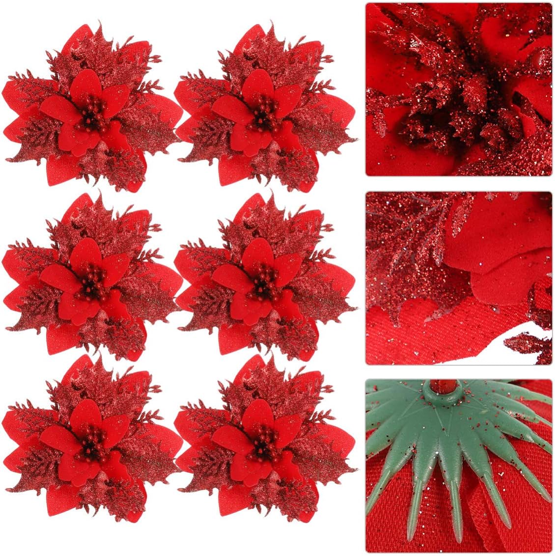 TOYANDONA 24 Pieces Christmas Glitter Poinsettia Flowers Christmas Tree Ornaments Artificial Flowers for Christmas Wreath Decoraiton (Red)