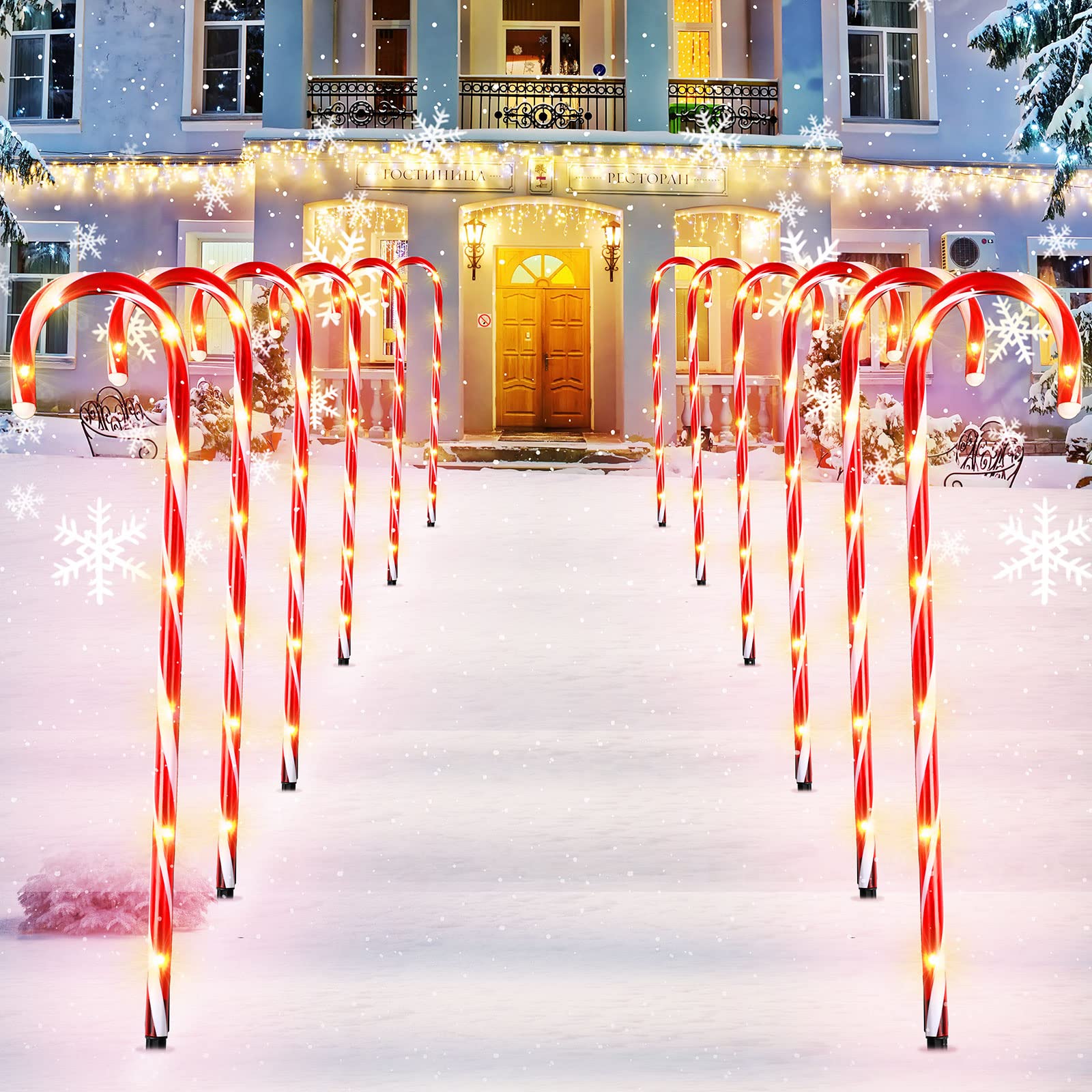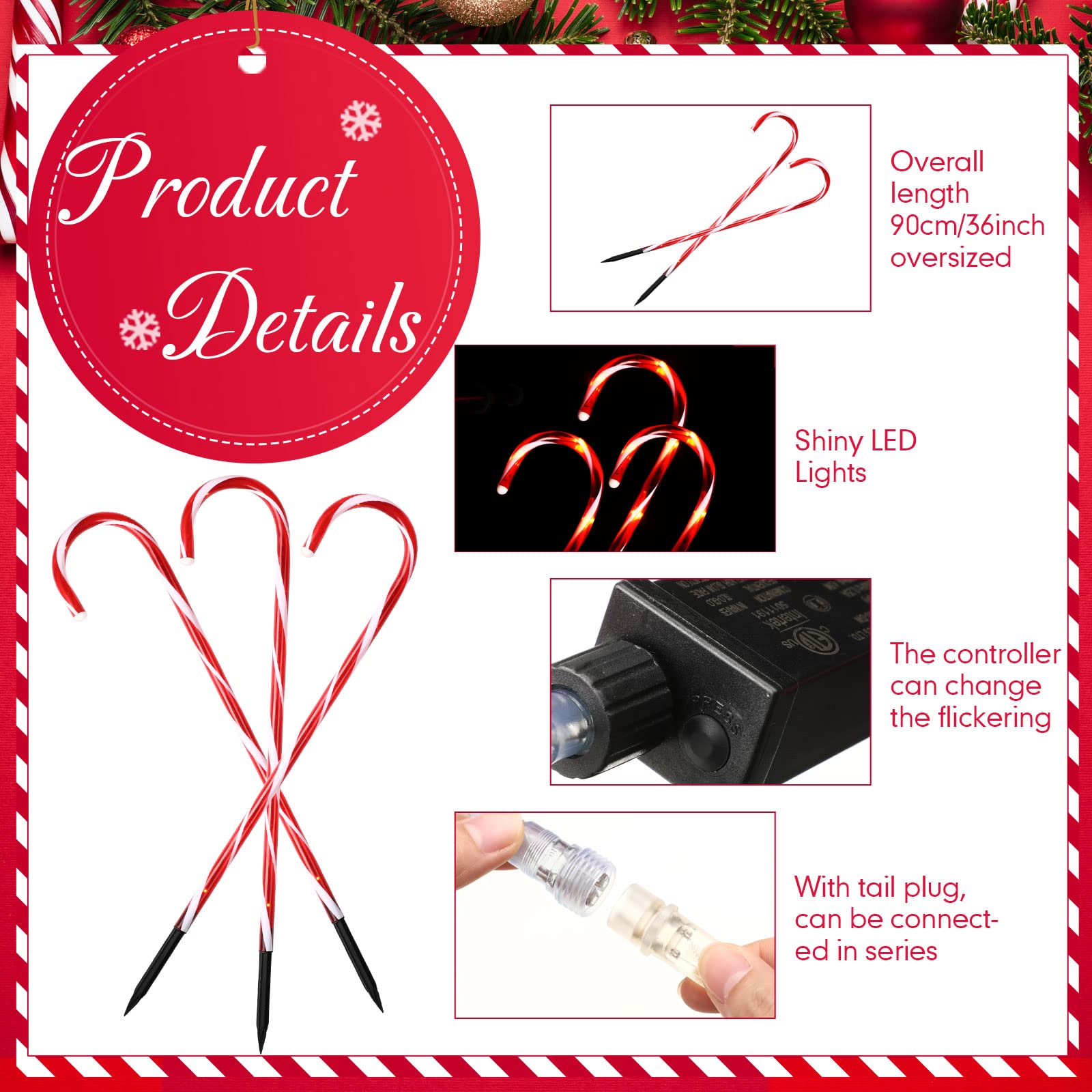 Package Includes: you will get a total of 12 pieces of 36 inch high Christmas candy marker lights There are 2 sets of 6 canes, each set is linked by a wire, which can form a longer path Christmas Decorations: there are 2 sets of Christmas cane lights, a total of 12 pieces, with a height of 36 inches/ 90 cm, which are enough to decorate the yard, lawn, garden, sidewalk, driveway, balcony, tree, or wherever you want, and bright to illuminate your home