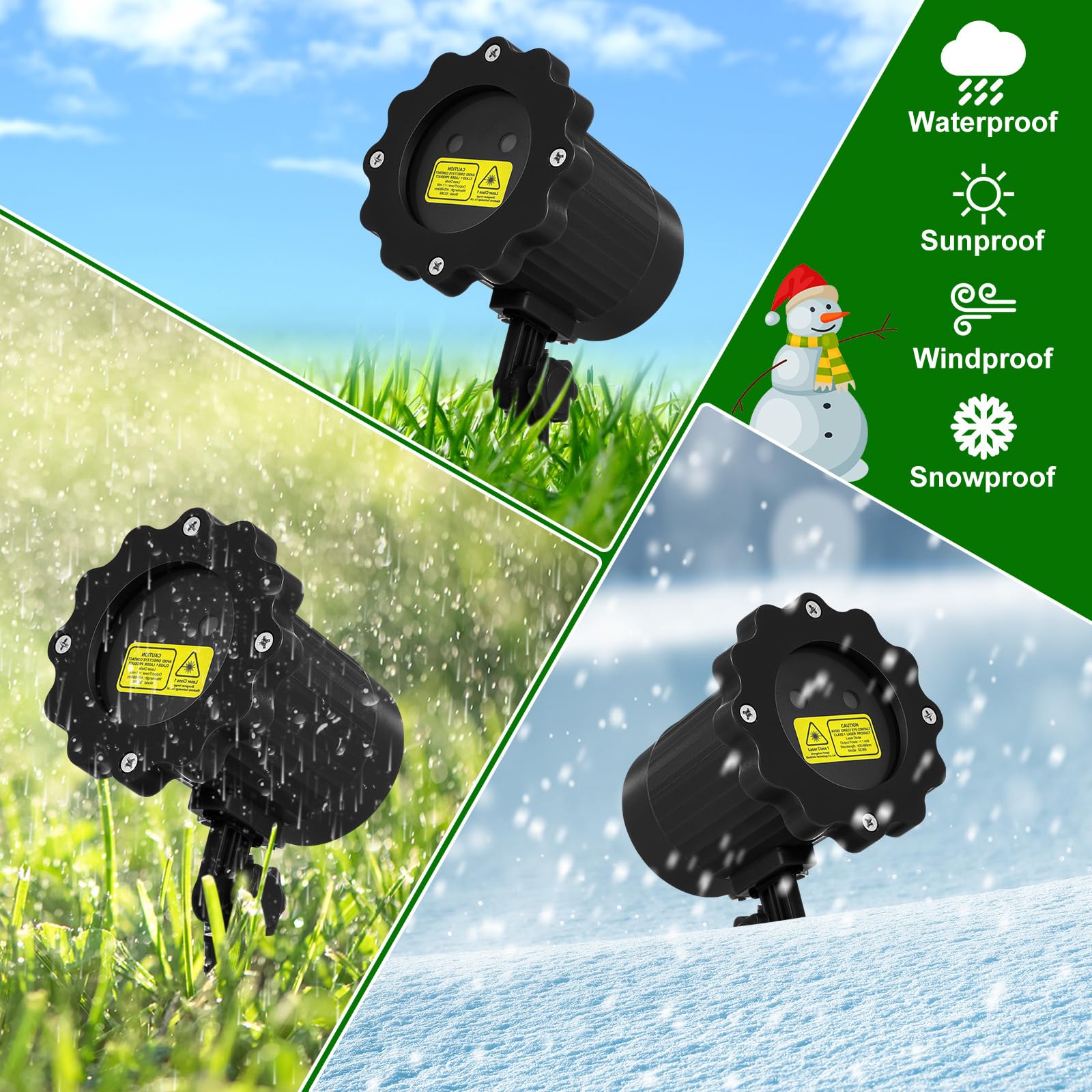 • Ip65 Waterproof for Outdoor Use: our Christmas moving laser projection lights is made of waterproof IP65 plastic, the operating temperature is -20℃ to 50℃ (-4°F to 122°F), can withstand all bad weather, such as heavy rain, blizzards and high temperatures, if you want to create some magic at any time of the year, this stars decorative laser projector will be an ideal choice