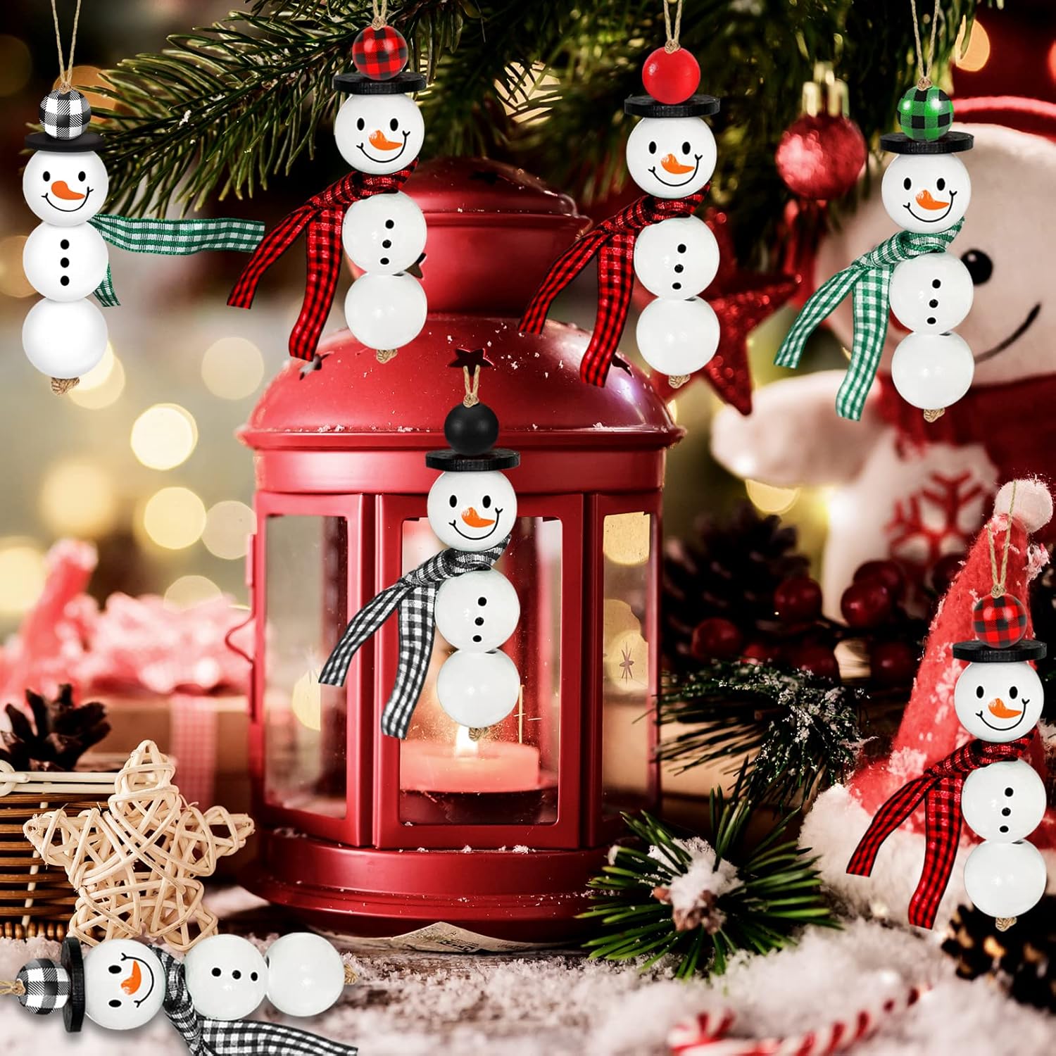 Wooden Snowman Beads Decor - 205 pieces Christmas wooden beads package to meets your various needs, which include 30Pcs snowman head beads, 30Pcs snowman body beads, 30Pcs white wooden beads, 20Pcs red beads and 20Pcs black beads, 15Pcs green and black plaid beads, 15Pcs red and black plaid beads, 15Pcs white and black plaid beads, 30Pcs black discs, 3Pcs lattice ribbon, and a roll of 21.8 yards hemp rope.Christmas DIY Craft - Use your imagination to decorate your own bead snowman, different color beads and ribbons provide a variety of decoration choices. Changing its scarf or hat, or stringing all the beads together to become a necklace. Endless fun waiting for you to explore.