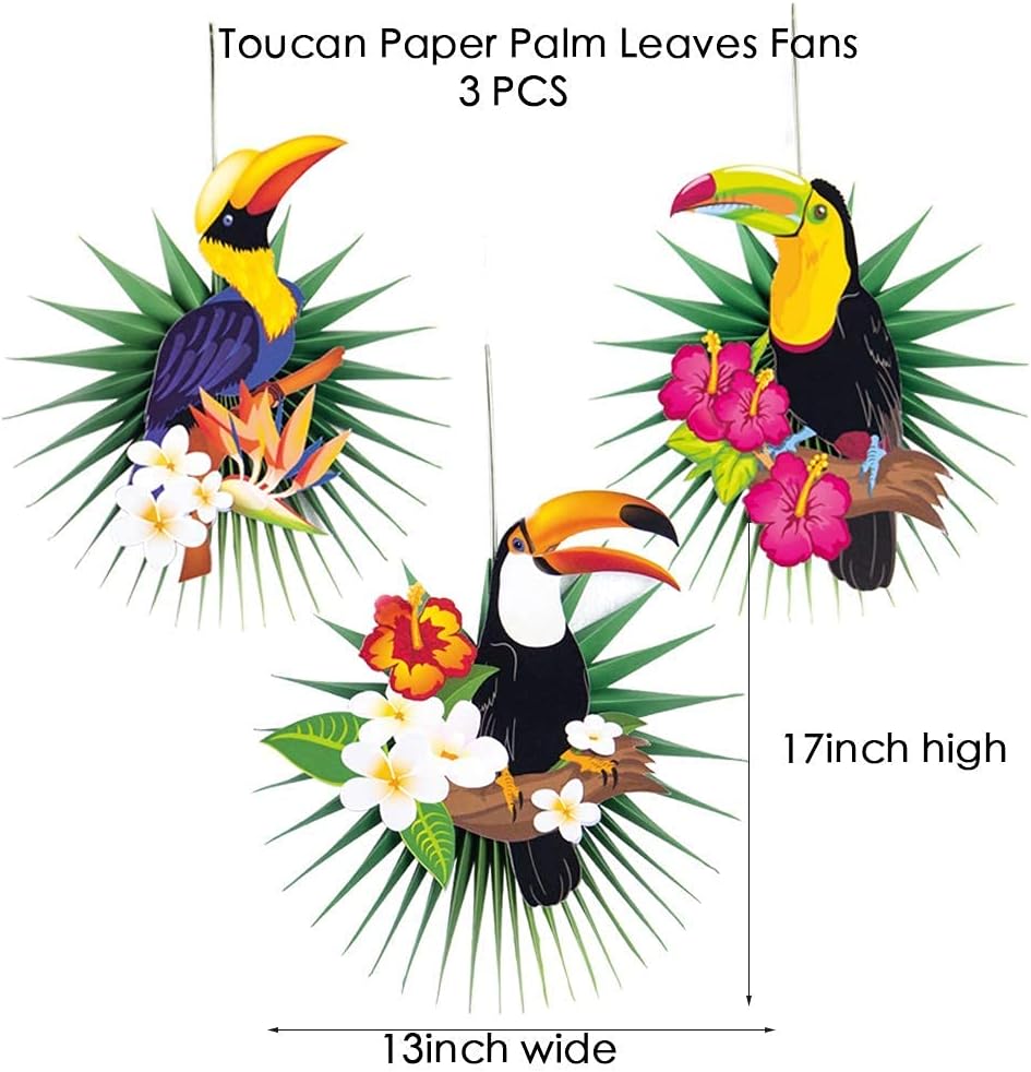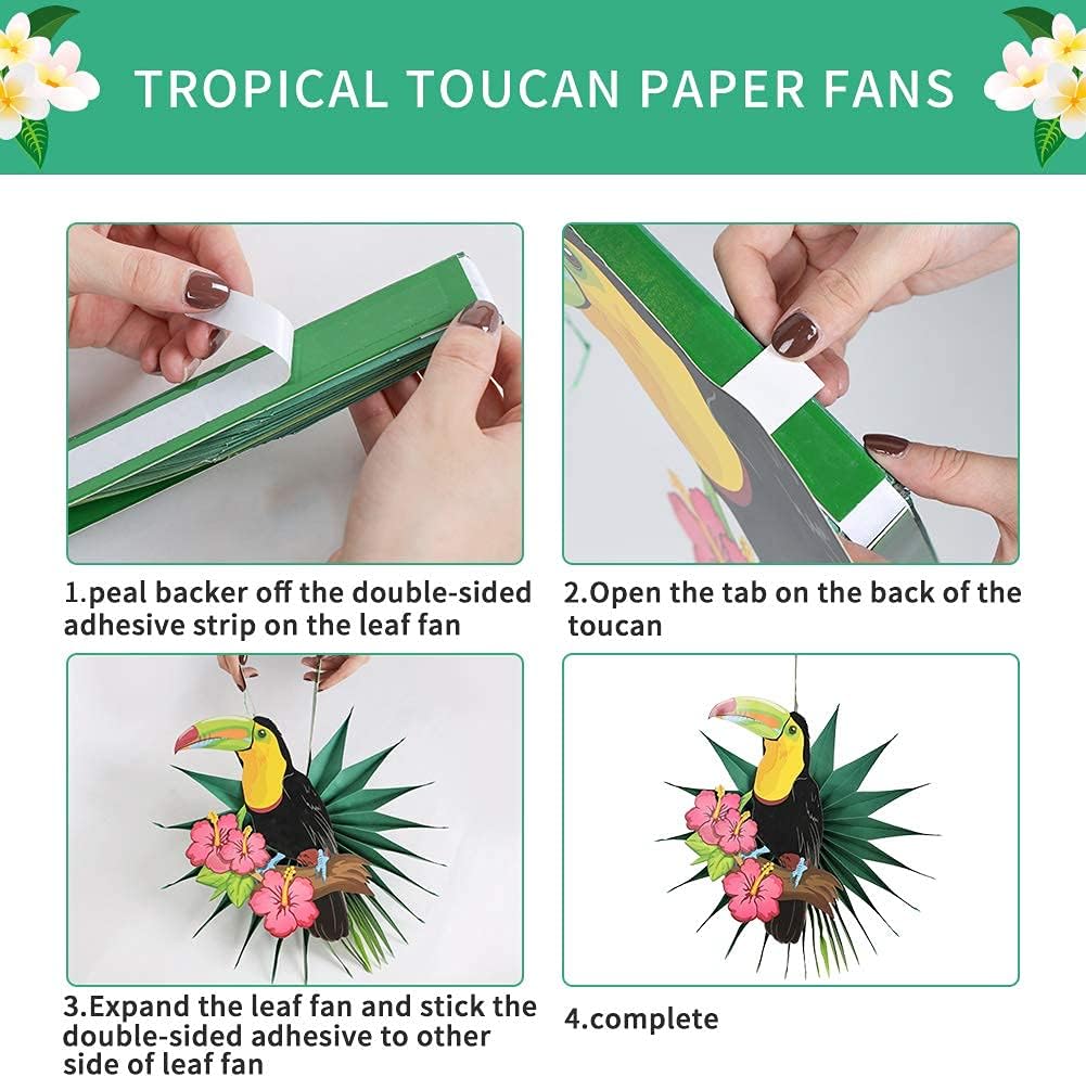 • ift & Decoration: The vivid toucan paper fan and the beautiful leaves garland suitable to hang on wall, ceiling, branches in summer party, birthday party, baby shower party. Also a brilliant present for your family, children, friends and so on. Which is a very unique party background decoration.