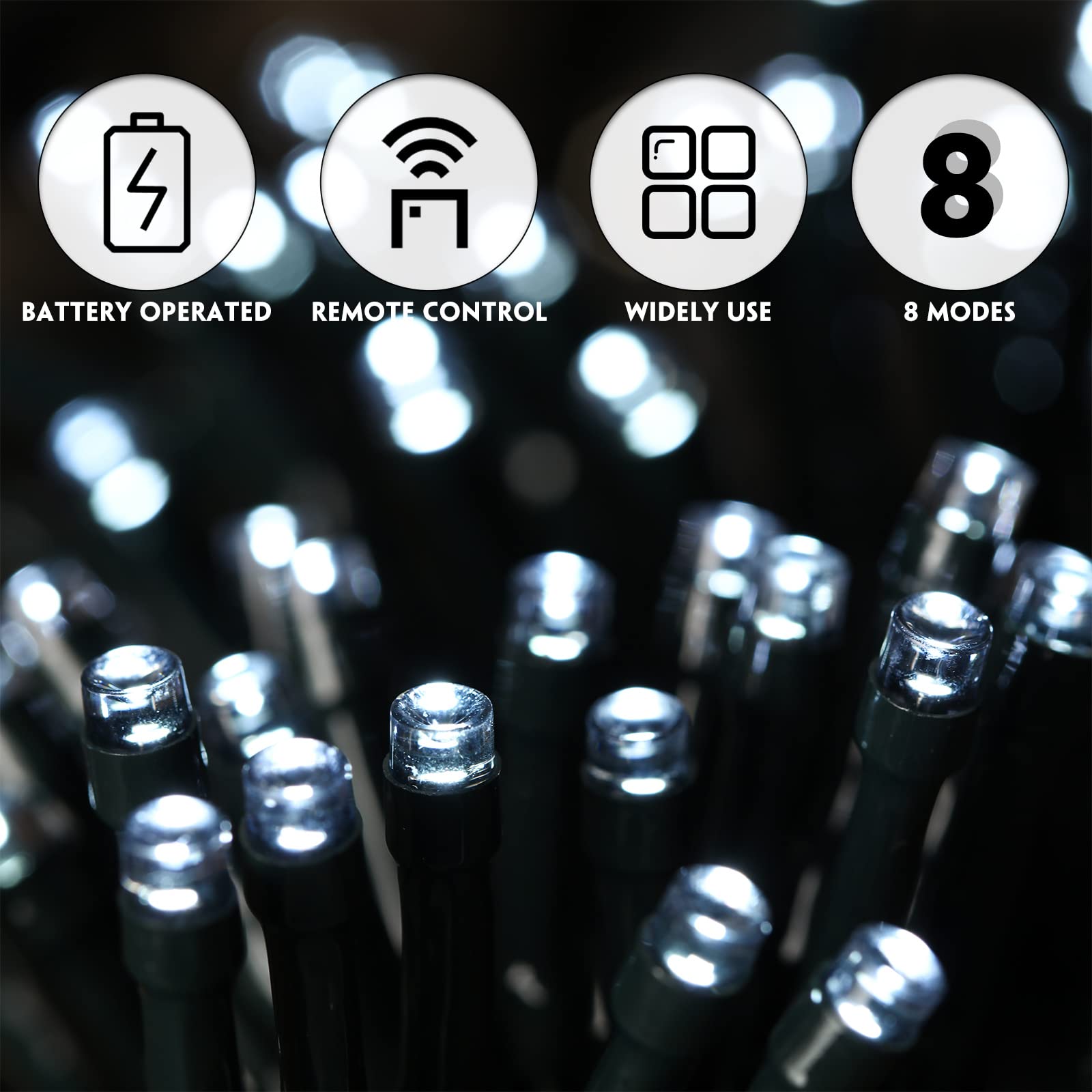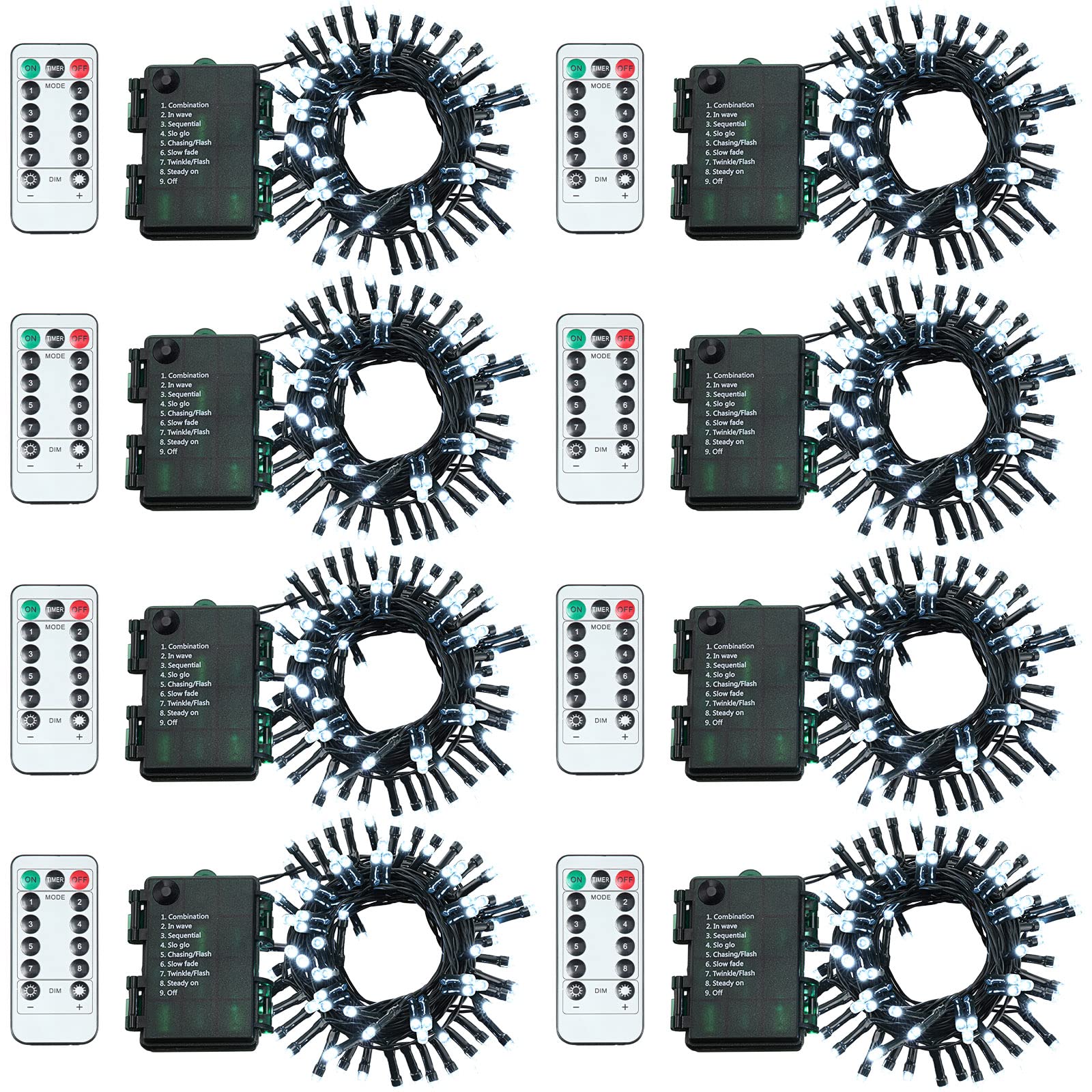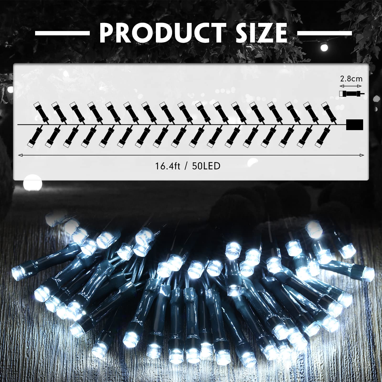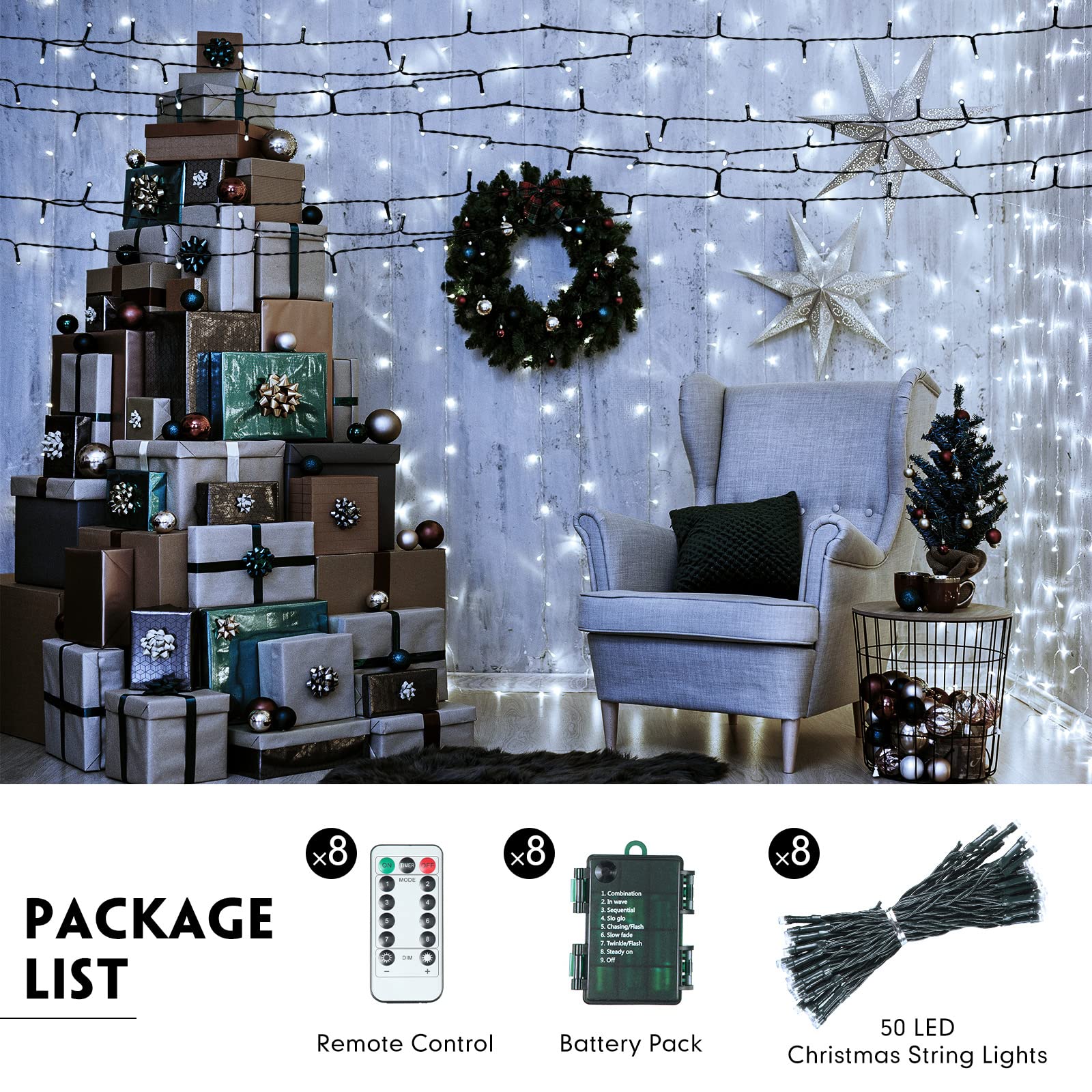 Tuanse 8 Pack Battery Operated Outdoor Christmas Tree String Lights,16.4 ft Mini Light Outdoor Christmas Lights with 50 Led of Dark Green Cable Lighting for Bedroom Garden Yard (White Light)