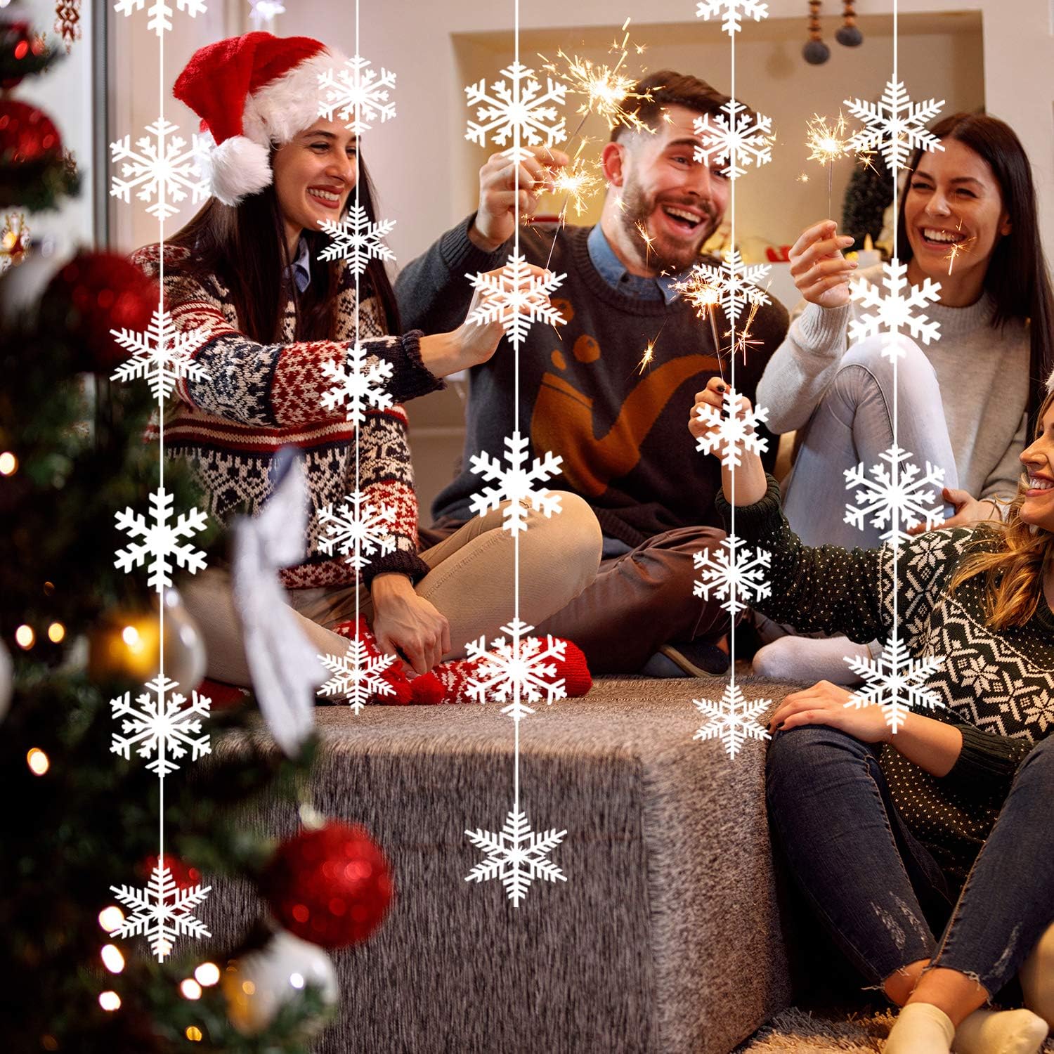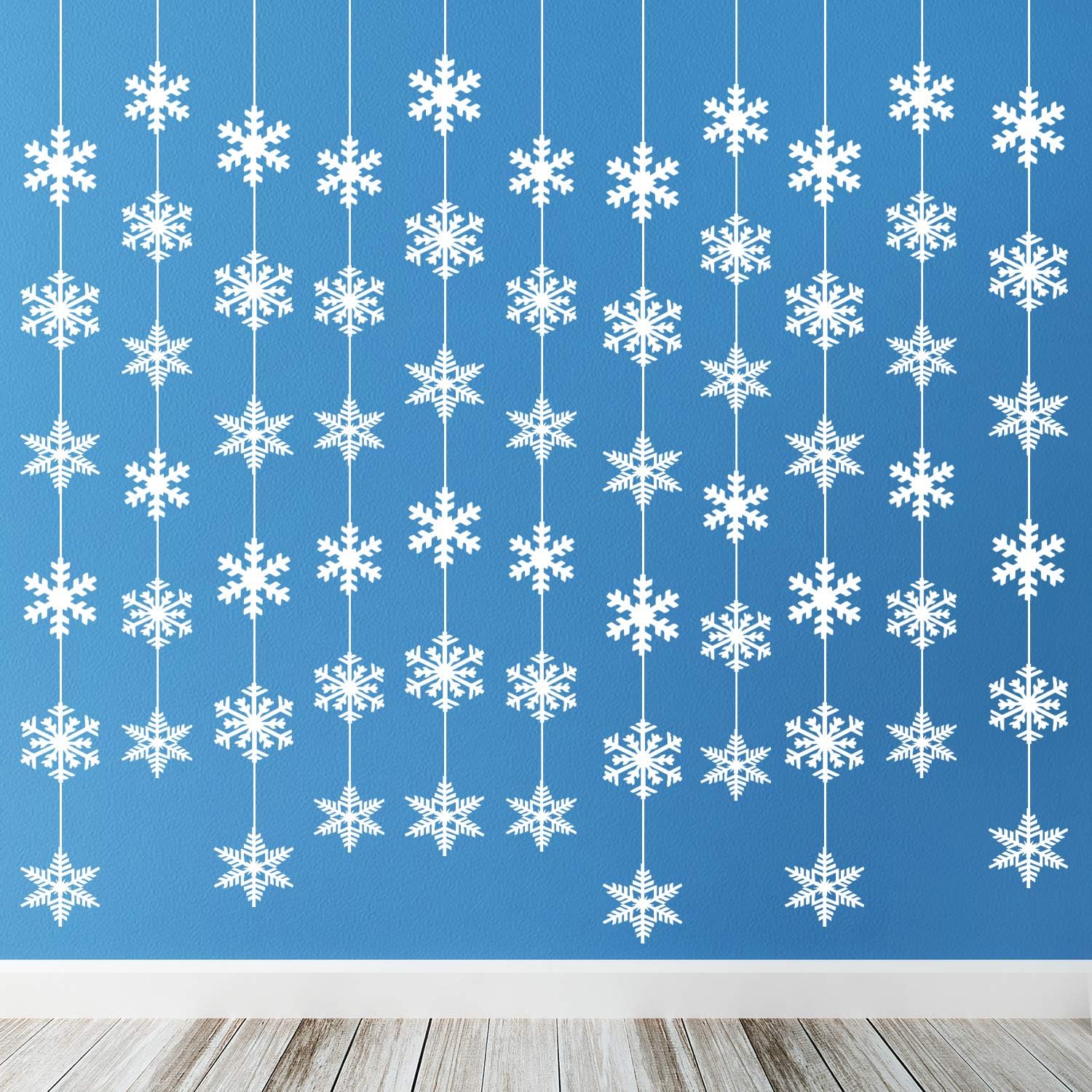 TUPARKA 12 Strings Snowflake Hanging Decorations Frozen Birthday Party Supplies Winter Wonderland Party Decorations White Christmas Snowflake Decorations Snowflake Garland Hanging Decorations