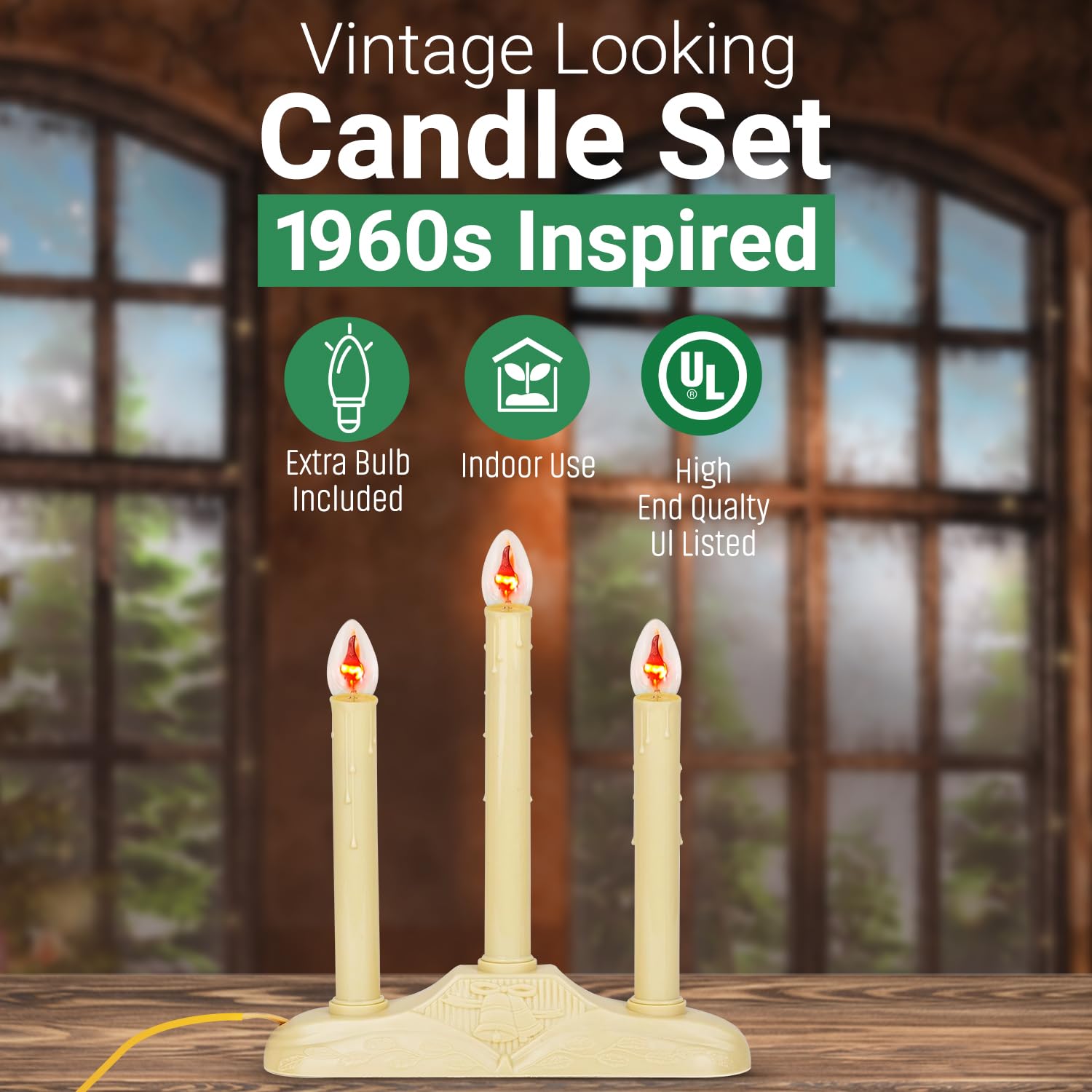 Tupkee Christmas Candolier Window Candles – with Flickering Bulbs – 3-Lights Indoor - Flameless Electric Window Candles Candelabra