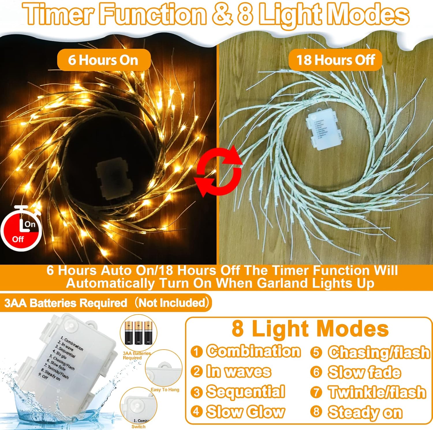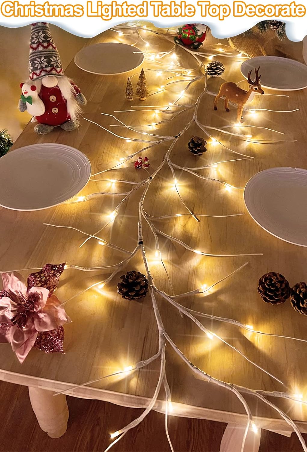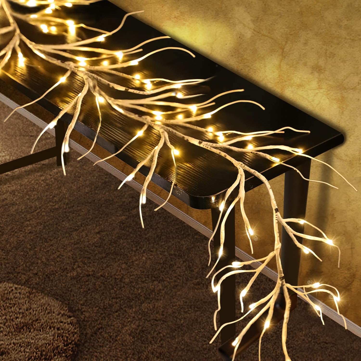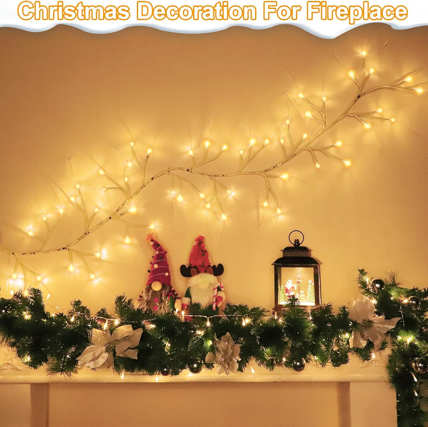 TURNMEON 6Ft 54 LED Lighted Birch Garland Prelit Branches with Timer 8 Modes Warm White Lights Battery Operated Prelit Twig Vine Garland for Mantle Fireplace Table Christmas Decorations Indoor Outdoor