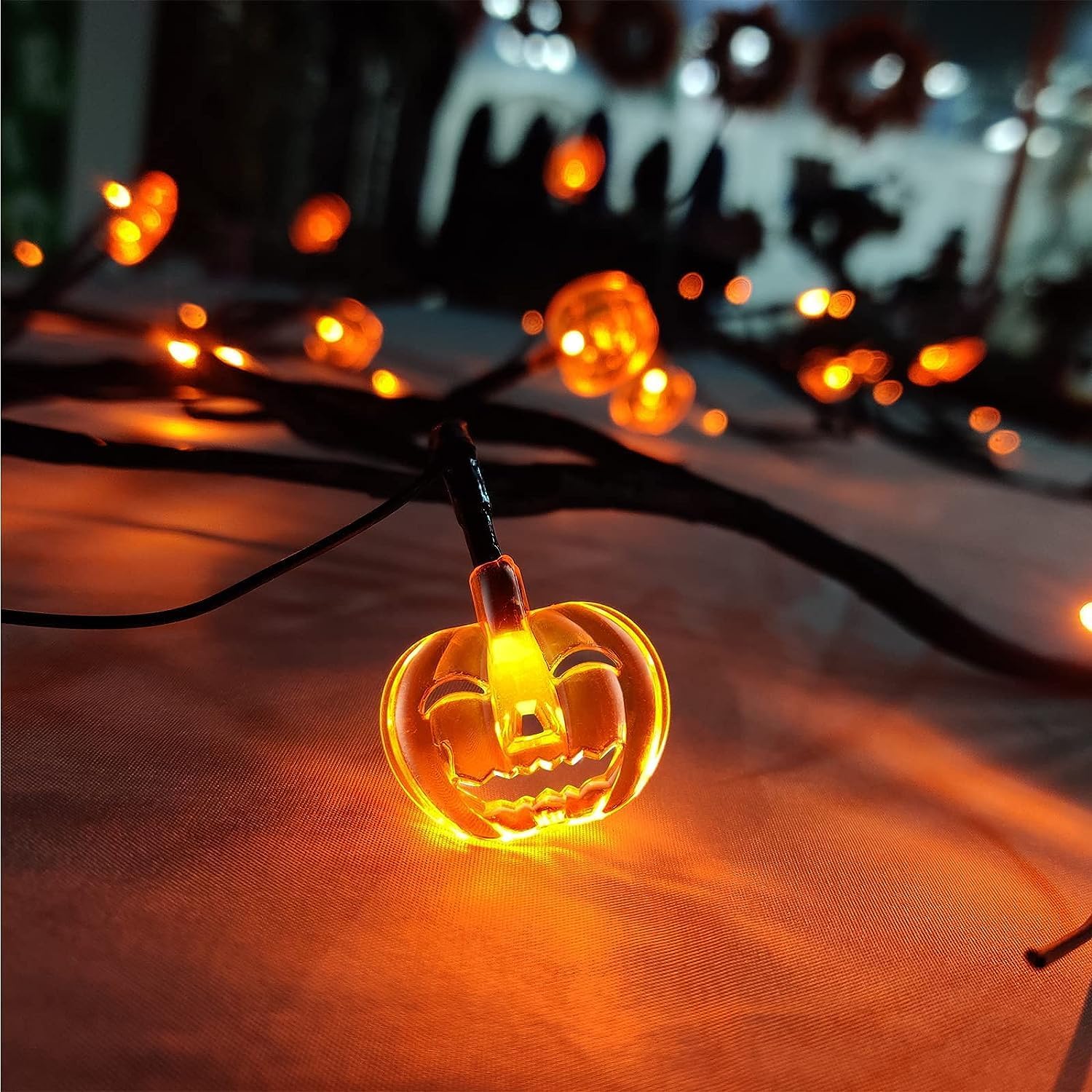 TURNMEON 8 Modes Timer 6 Ft 54 Orange LEDs Halloween Garland with Lights Pumpkins Waterproof Battery Operated Halloween Garland Vine Twig Decor Garland for Wall Bedroom Home Mantel