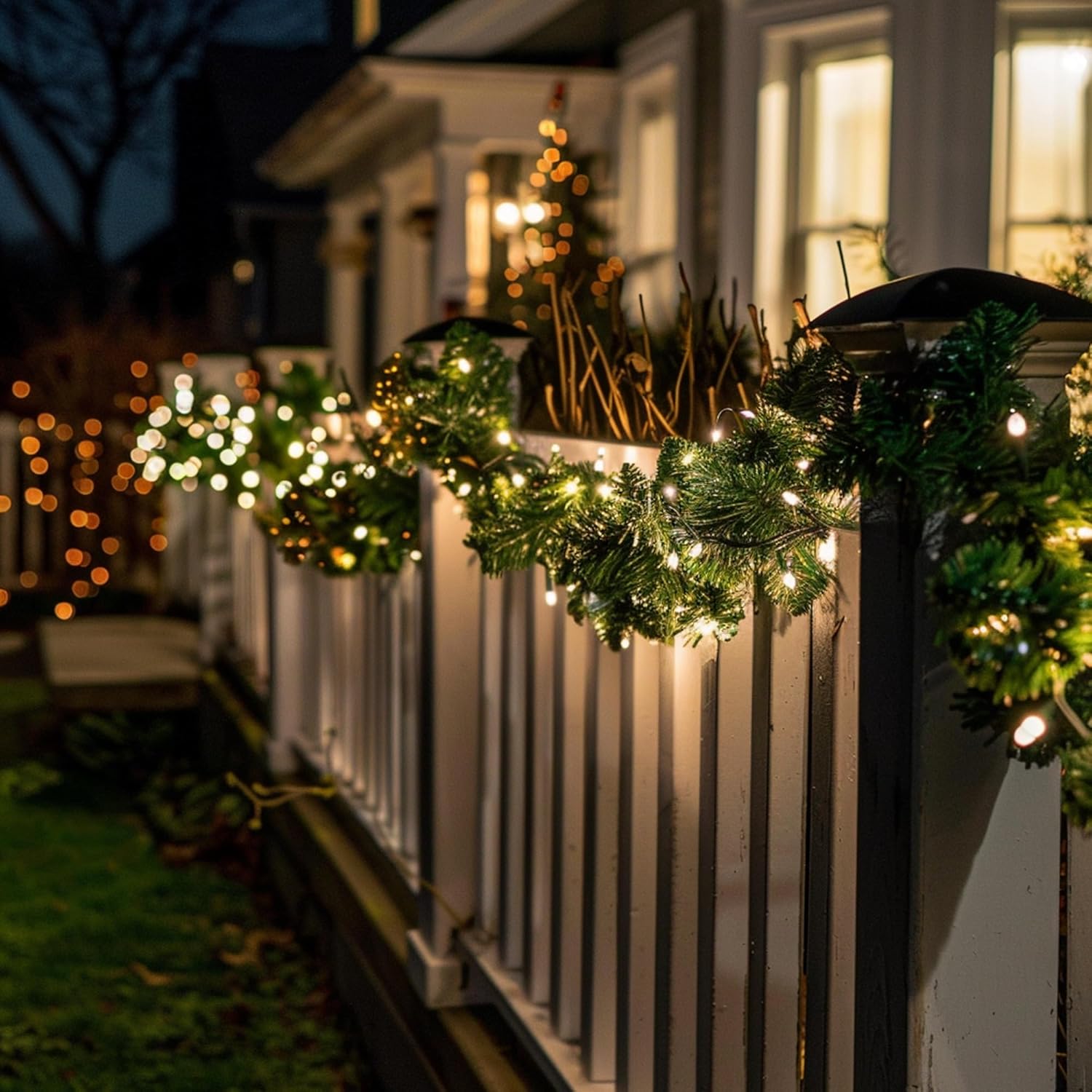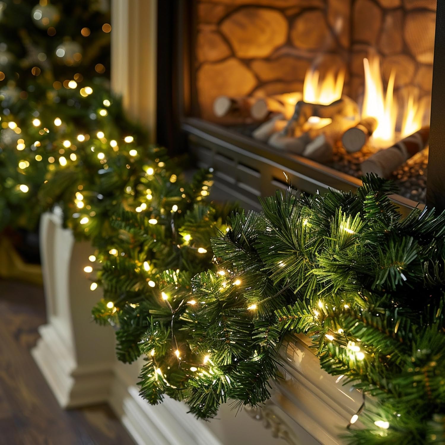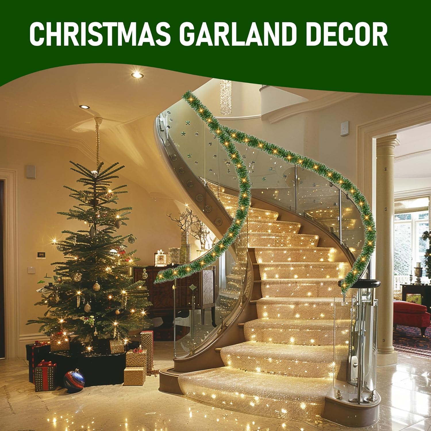 TW SHINE 30 FT Pre-Lit Christmas Garland Decorations, 100 LED Lighted Artificial Pine Garlands with 8 Modes, Green Garland for Indoor Outdoor Door Home Stairs Holiday Decor, Warm White