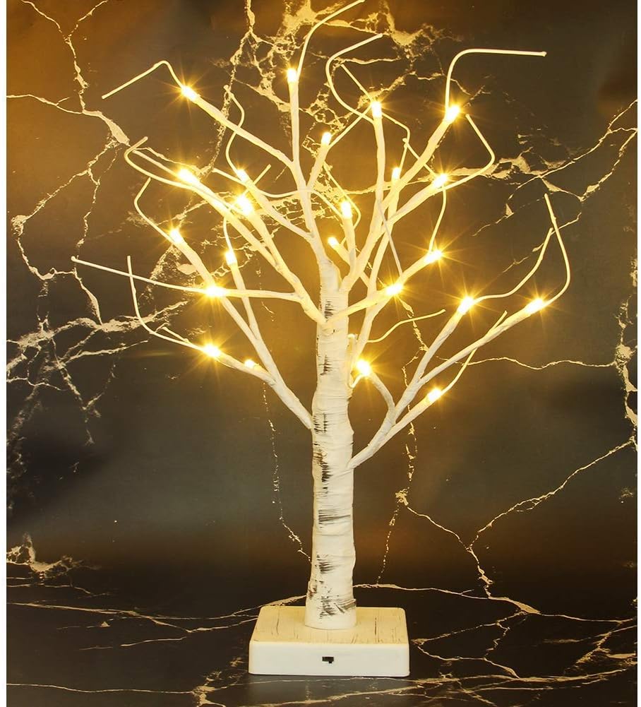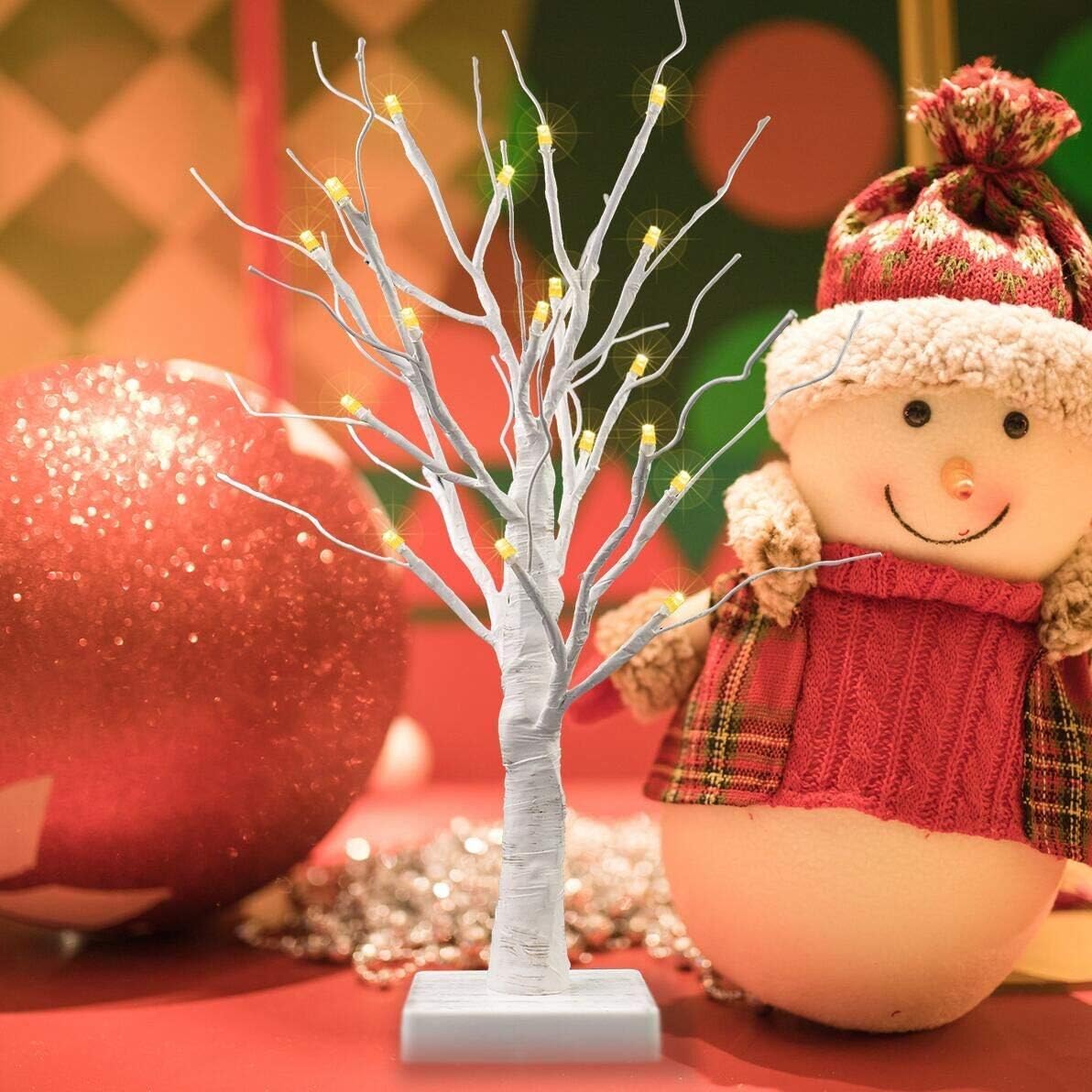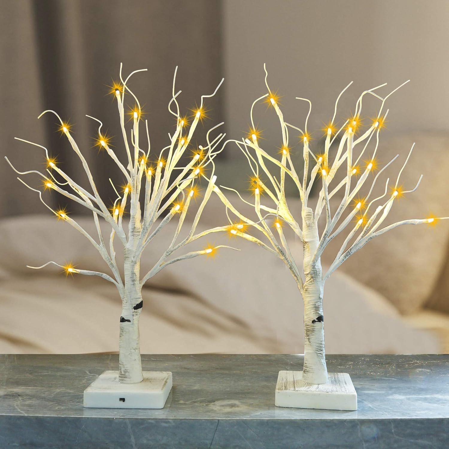 Twinkle Star 2 Pack 24 LED Lighted Birch Tree for Home Decor, Battery Operated Tabletop Mini Artificial Tree for for Christmas Centerpiece Mantel Indoor Wedding Party Fall Decoration 2 FT