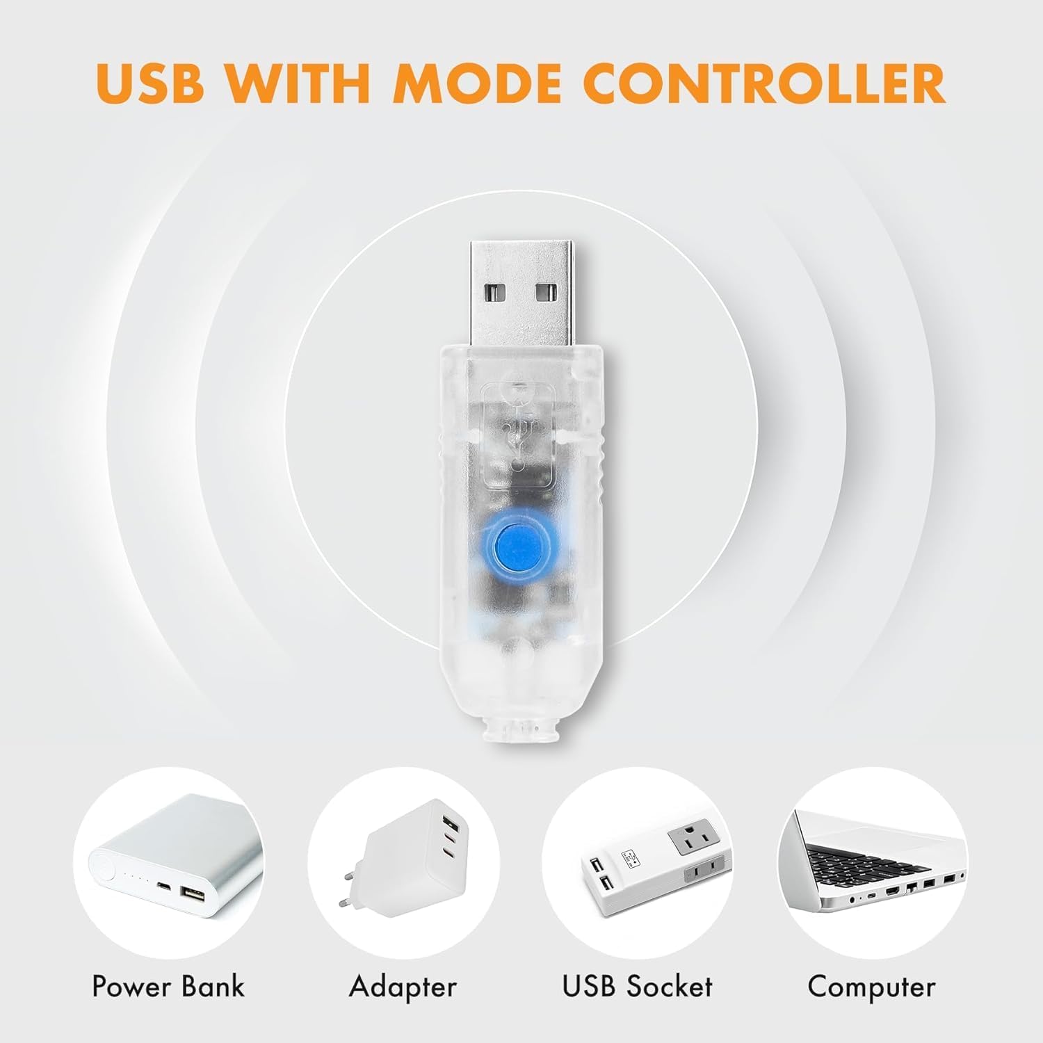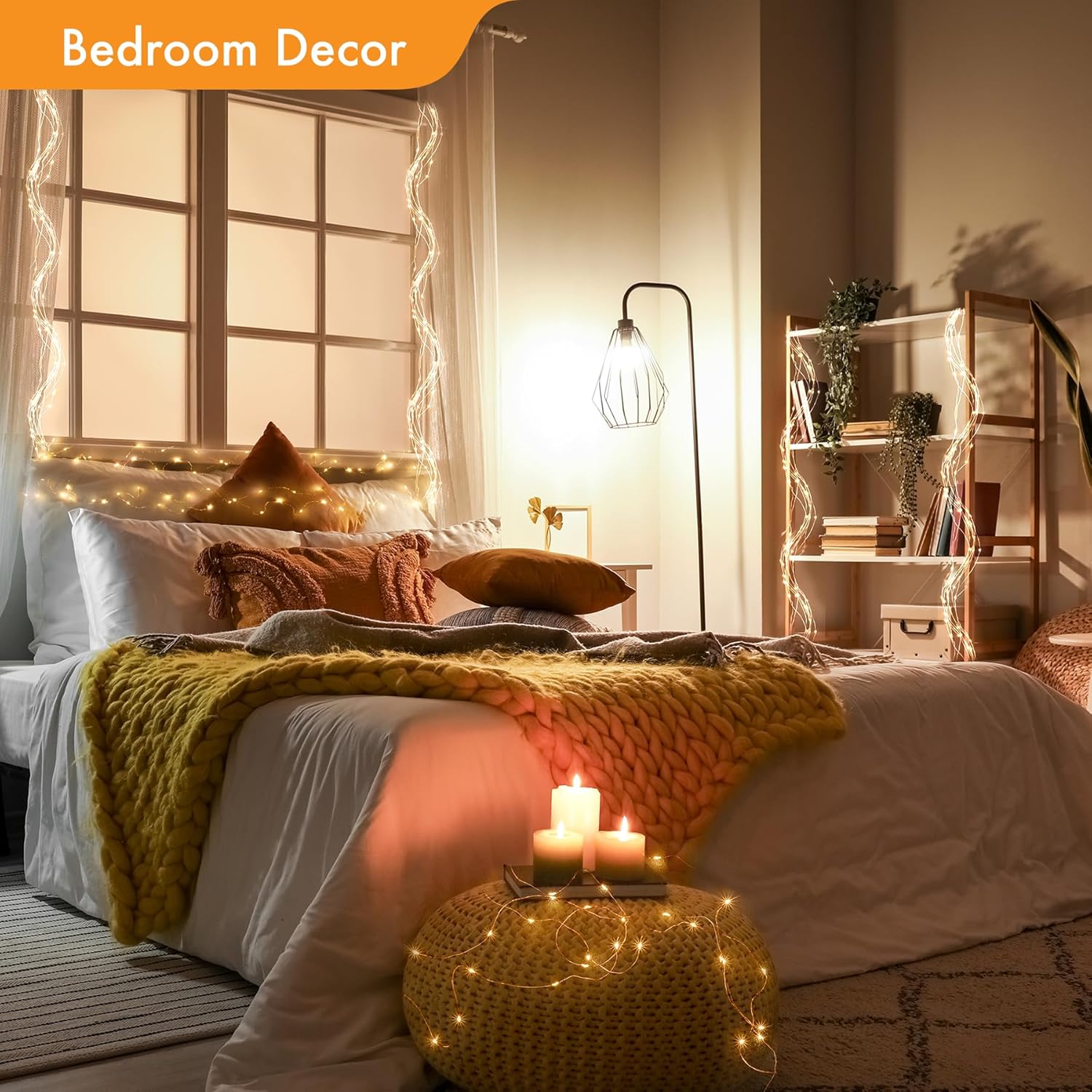 Twinkle Star 200 LED 66 FT Copper Fairy String Lights USB and Adapter Powered,Dimmable Control Fairy String Lights for Christmas Tree Wedding Party Home Decoration, Warm White, 2PACK