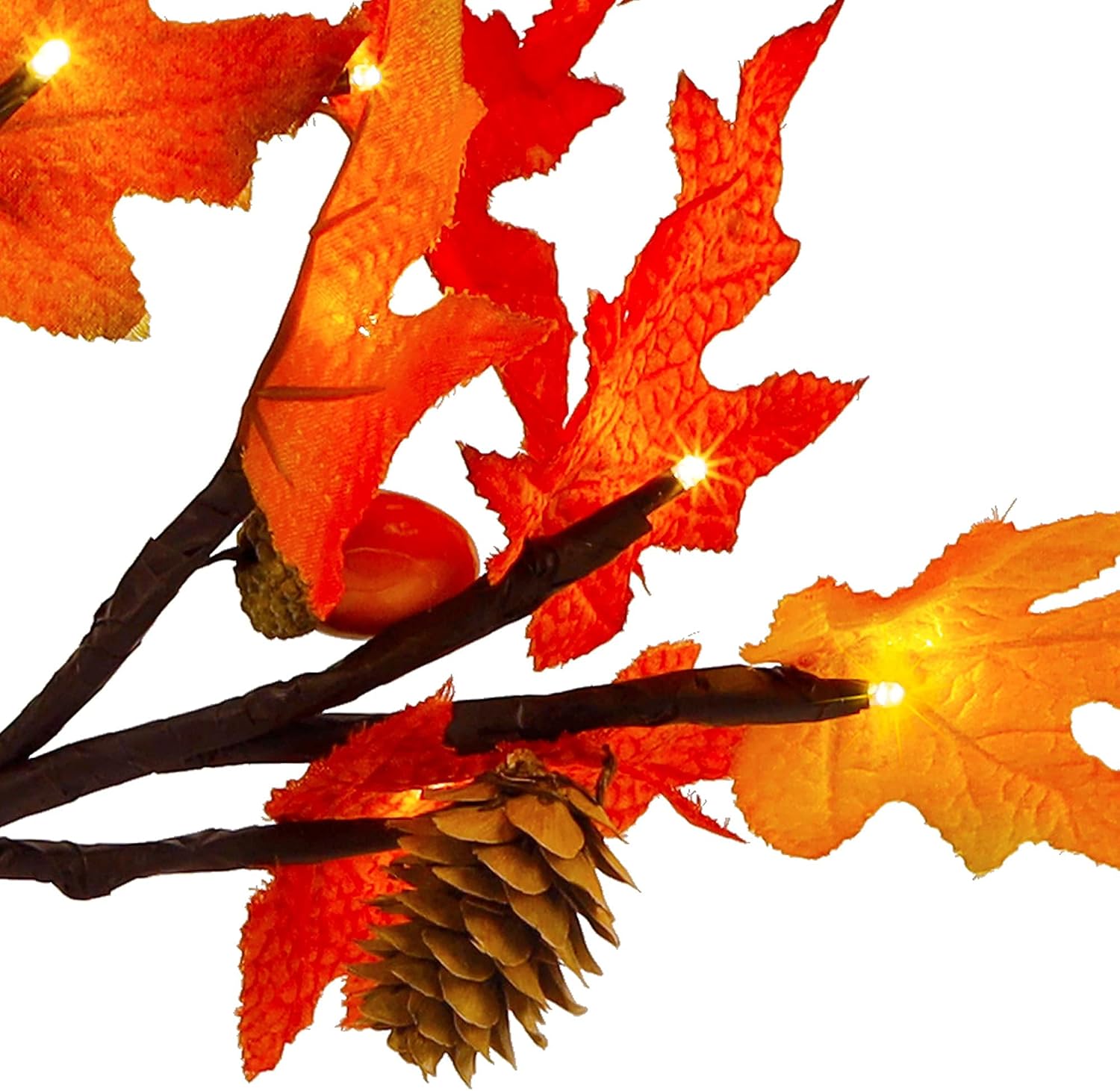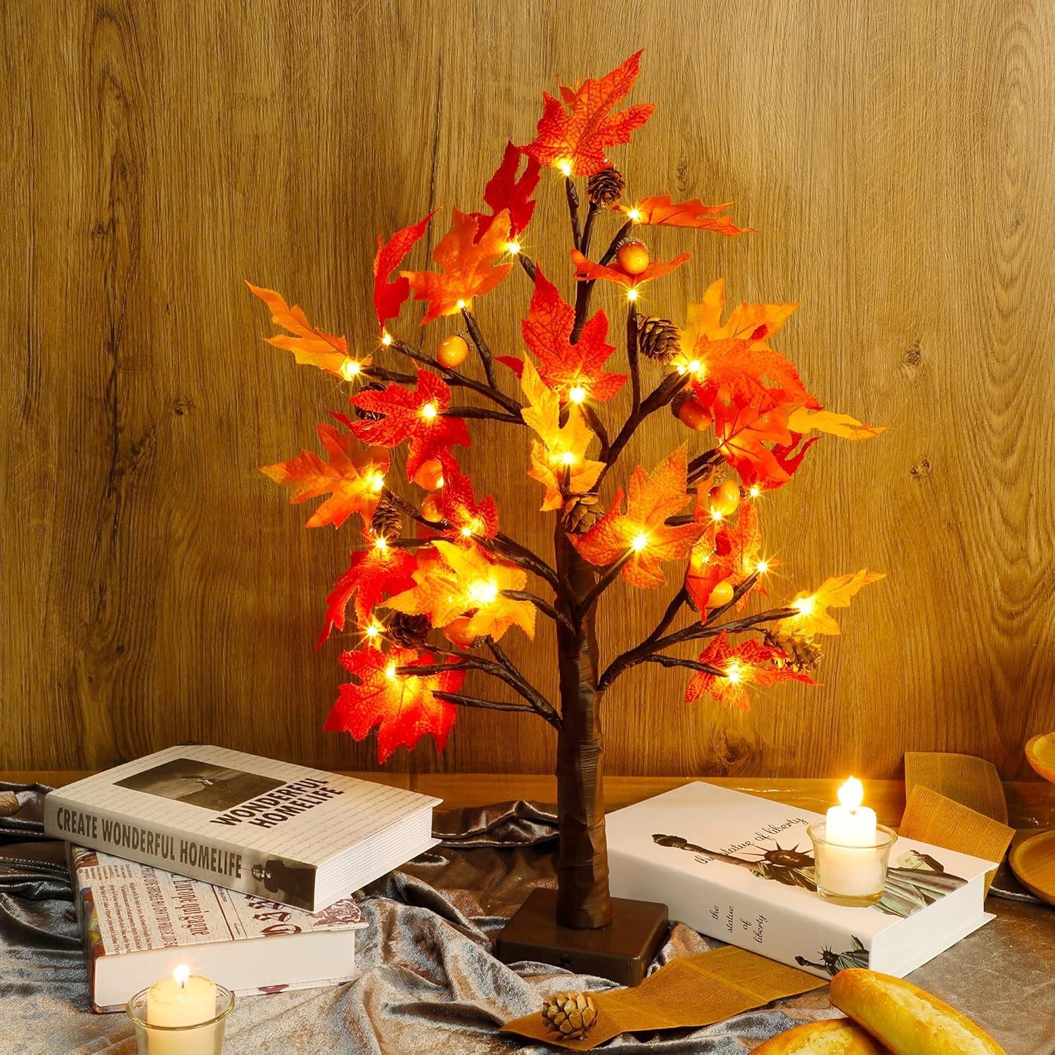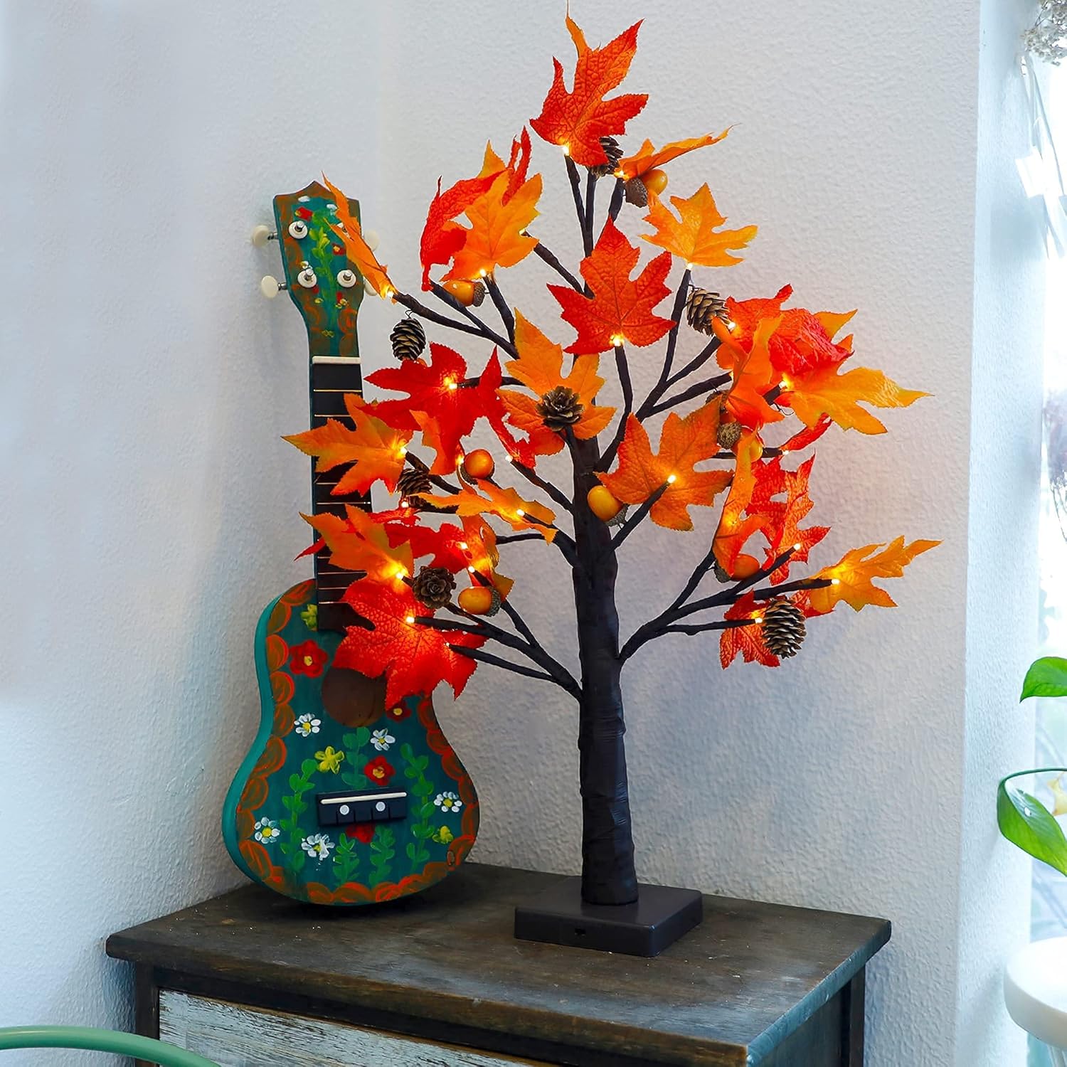 Twinkle Star 23 Inch Tabletop Lighted Maple Tree Battery Operated, Thanksgiving Table Decor with 32 LED Lights, Maple Leaves, Pine Cones and Acorn Autumn Tree for Indoor Home Bedroom Fall Decorations