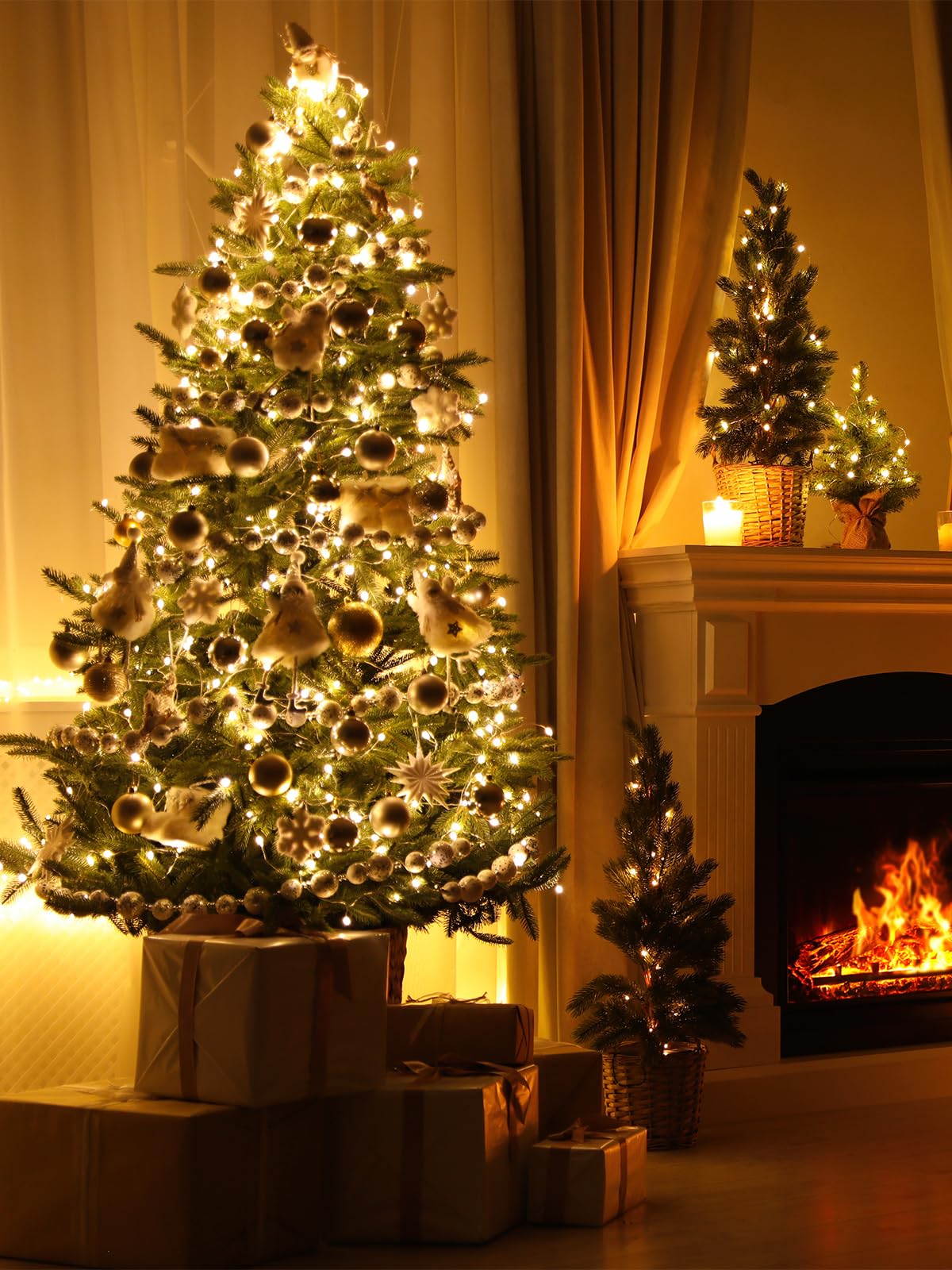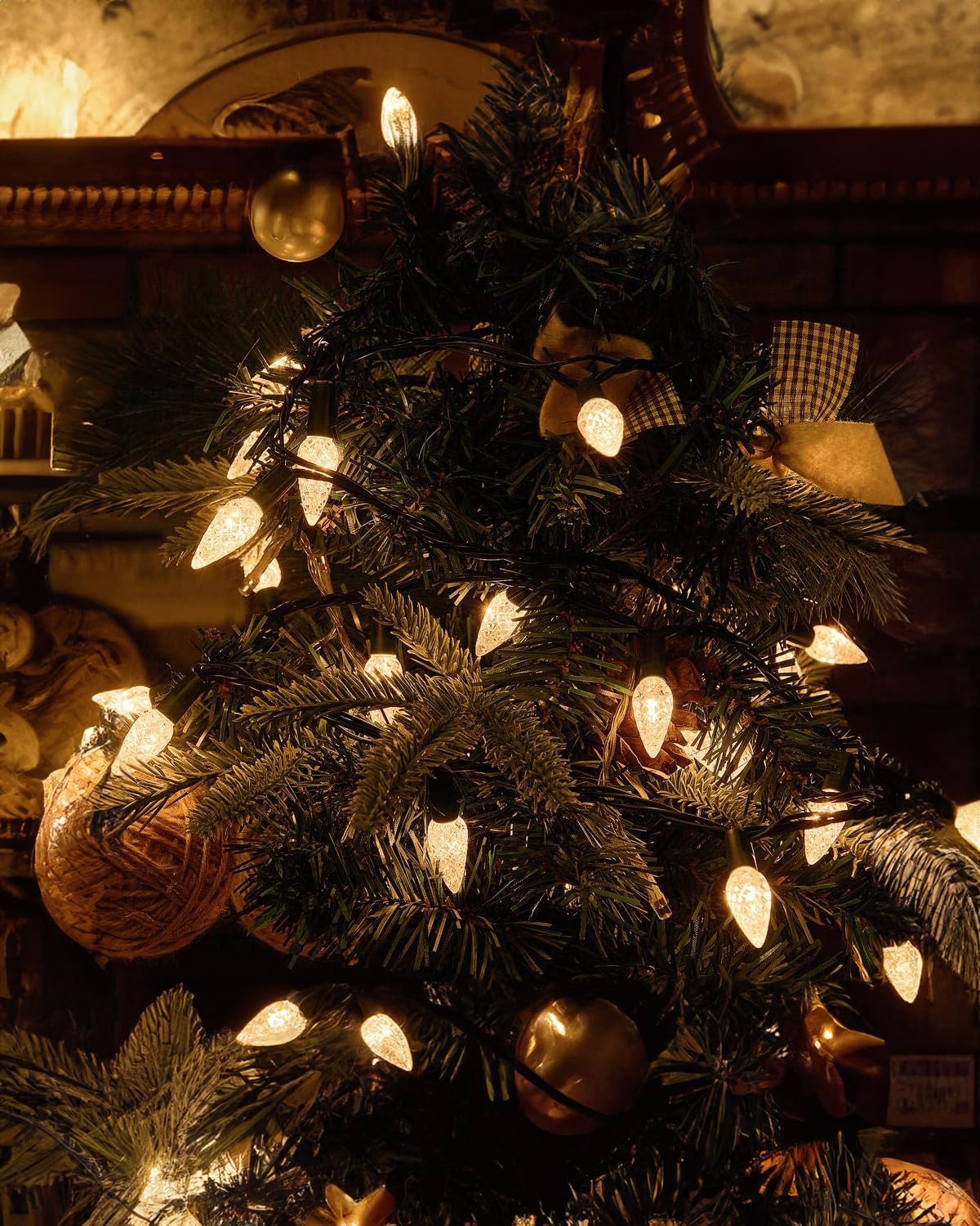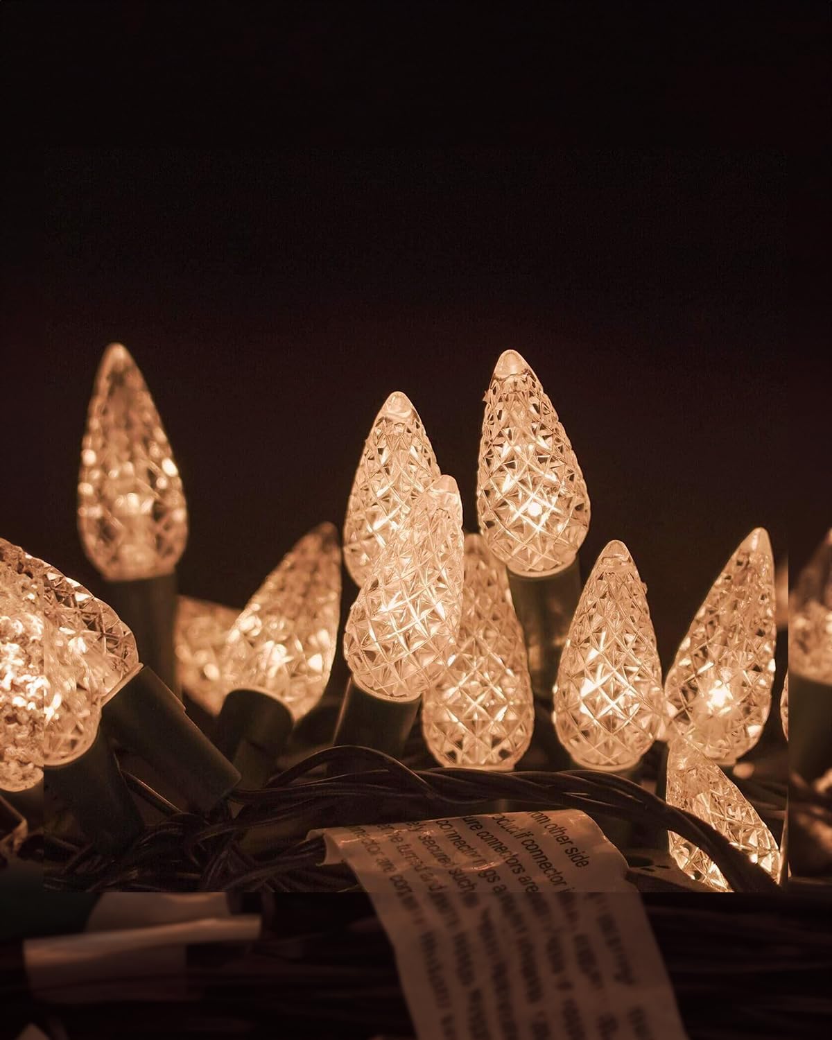 【C6 Christmas String Lights】Made easy and light up your holidays with Twinkle Star 100 warm white LED C6 Christmas strawberry string lights. These lights are sure to bring brightness and adds a pleasure festive atmosphere to your home. The set comes with a super long 9.8 ft leading wire for convenient use. The length of the lights string is 33ft, resulting in a total length of 42.8ft. 【8 Lighting Modes】 8 lighting functions to fit different occasions, moods, feelings, holidays, festivals, anniversaries, etc. (Combination, In waves, Sequential, Slow Glow, Chasing/Flash, Slow fade, Twinkle/Flash, Steady on). Adjust the lighting modes by pressing the round button on the transformer.