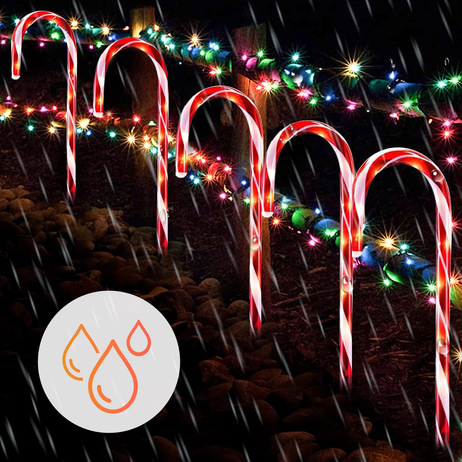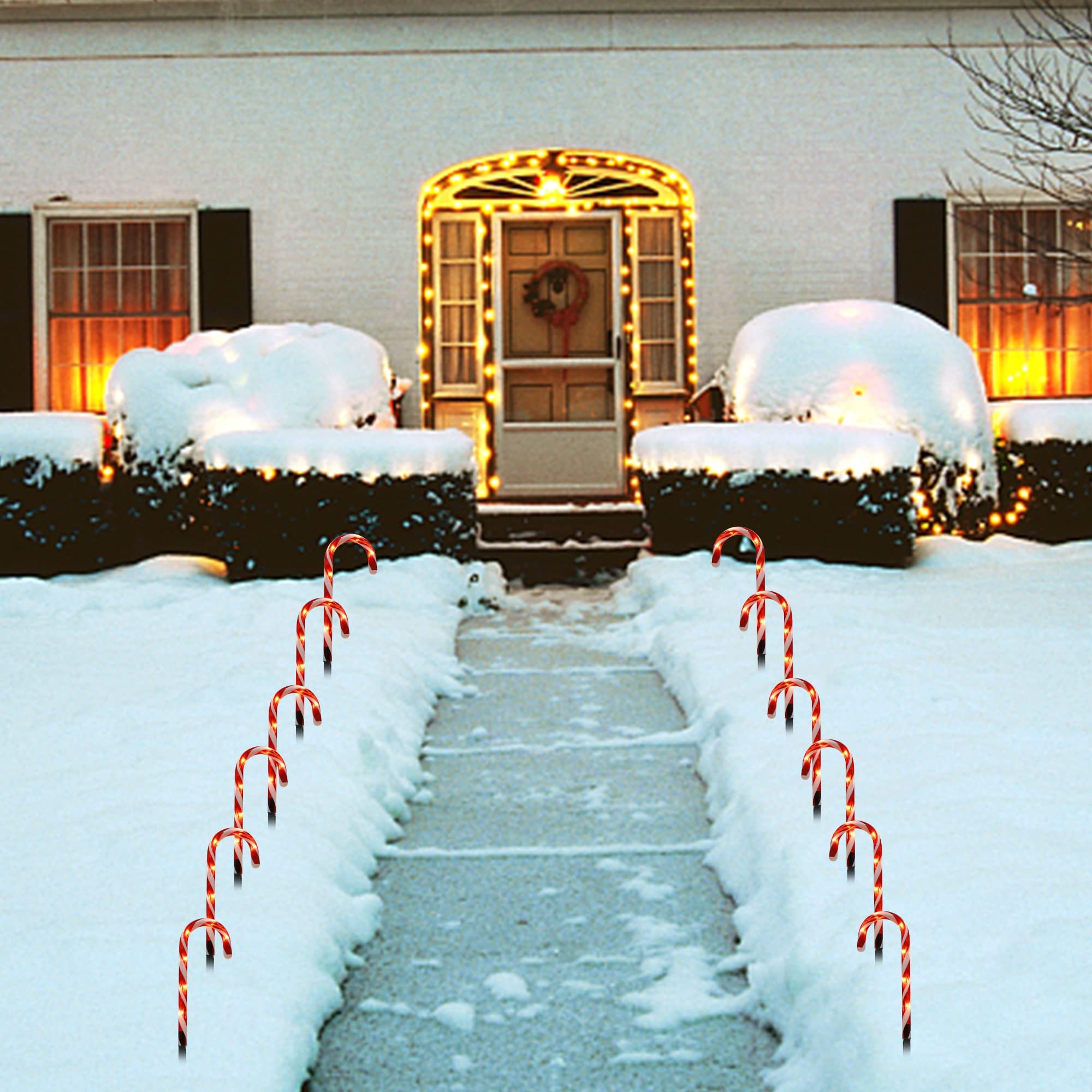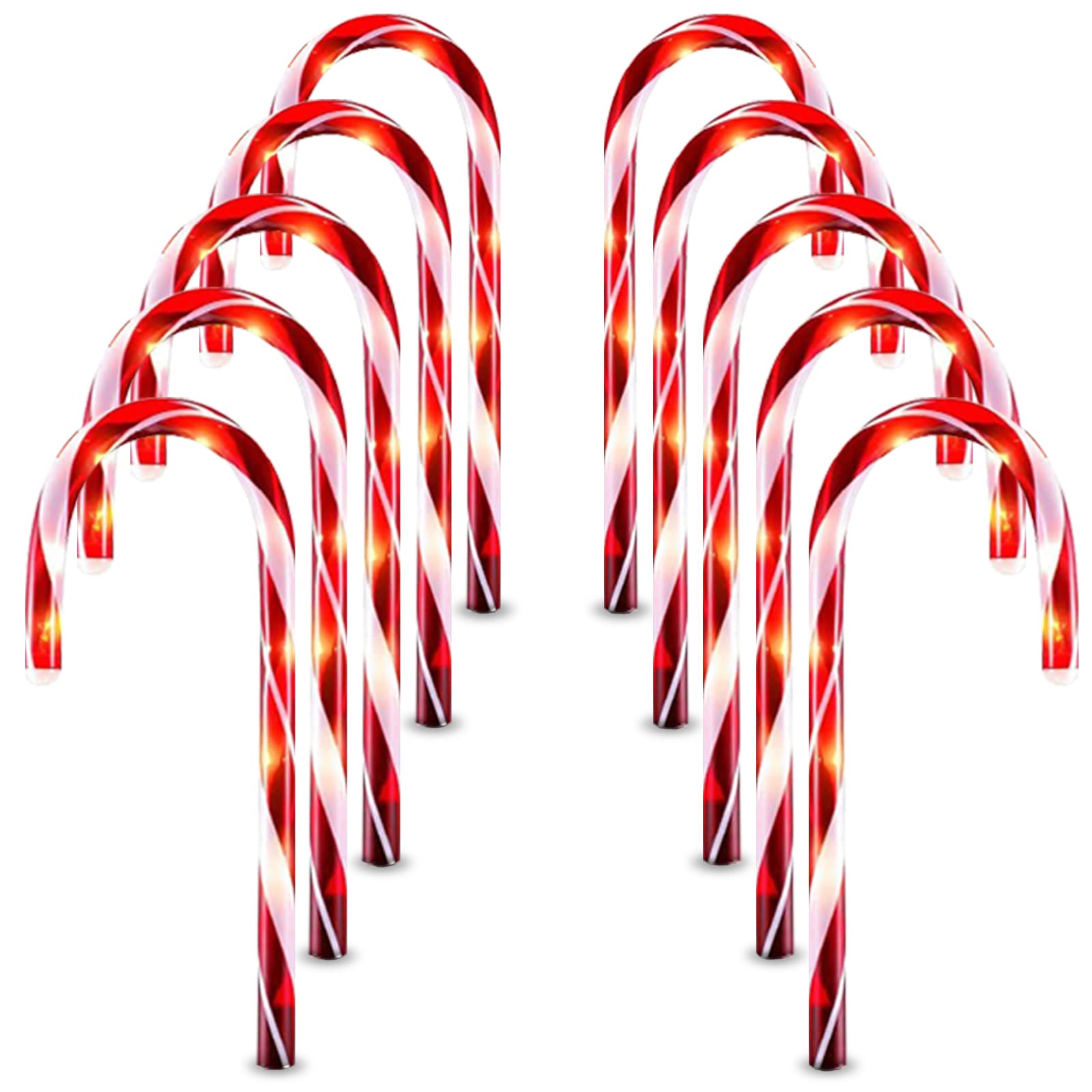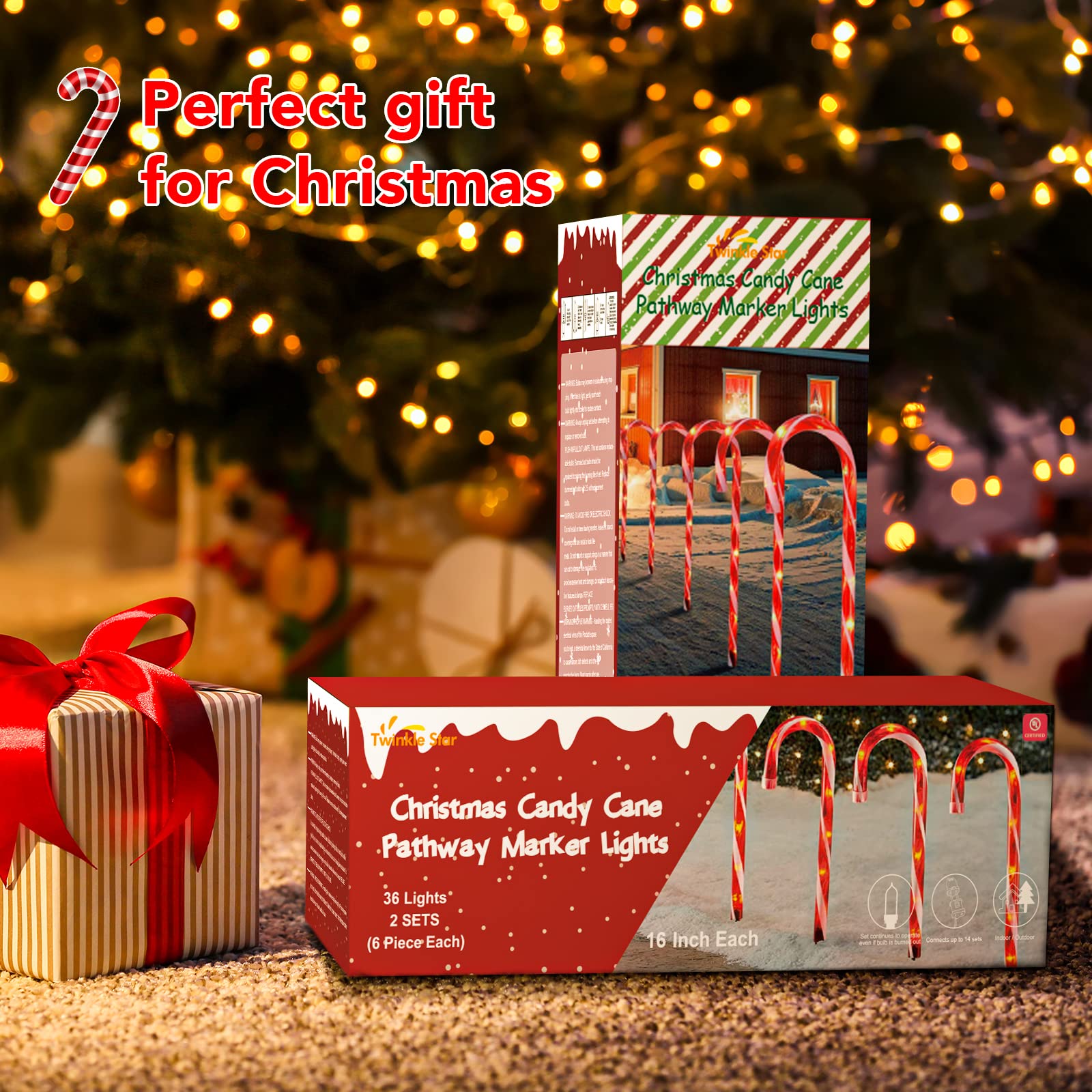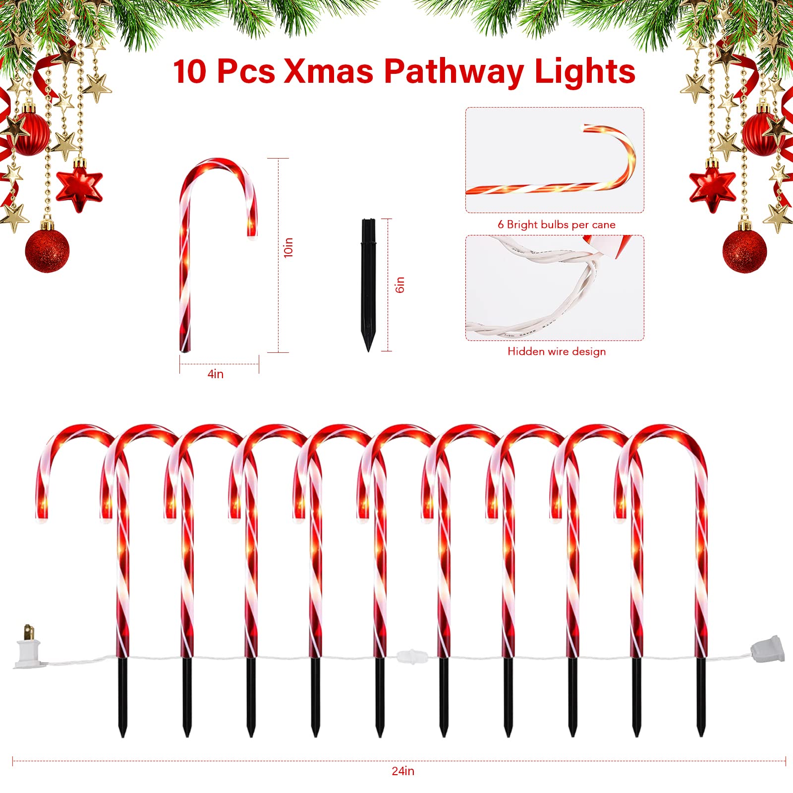 Twinkle Star Christmas Candy Cane Lights, 10 Pcs Christmas Pathway Markers with 60 Count Incandescent Warm White Fairy Lights for Outdoor Holiday Walkway Patio Garden Christmas Decorations