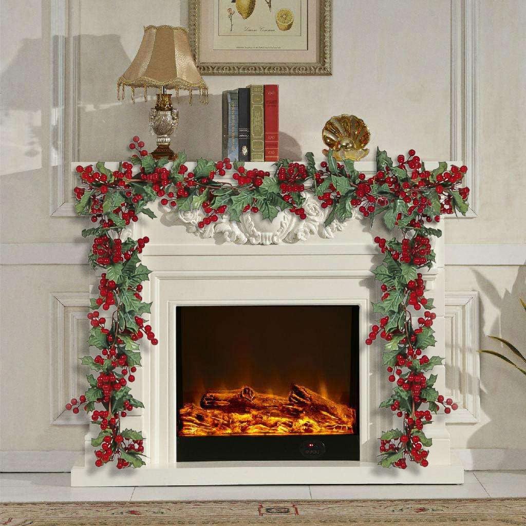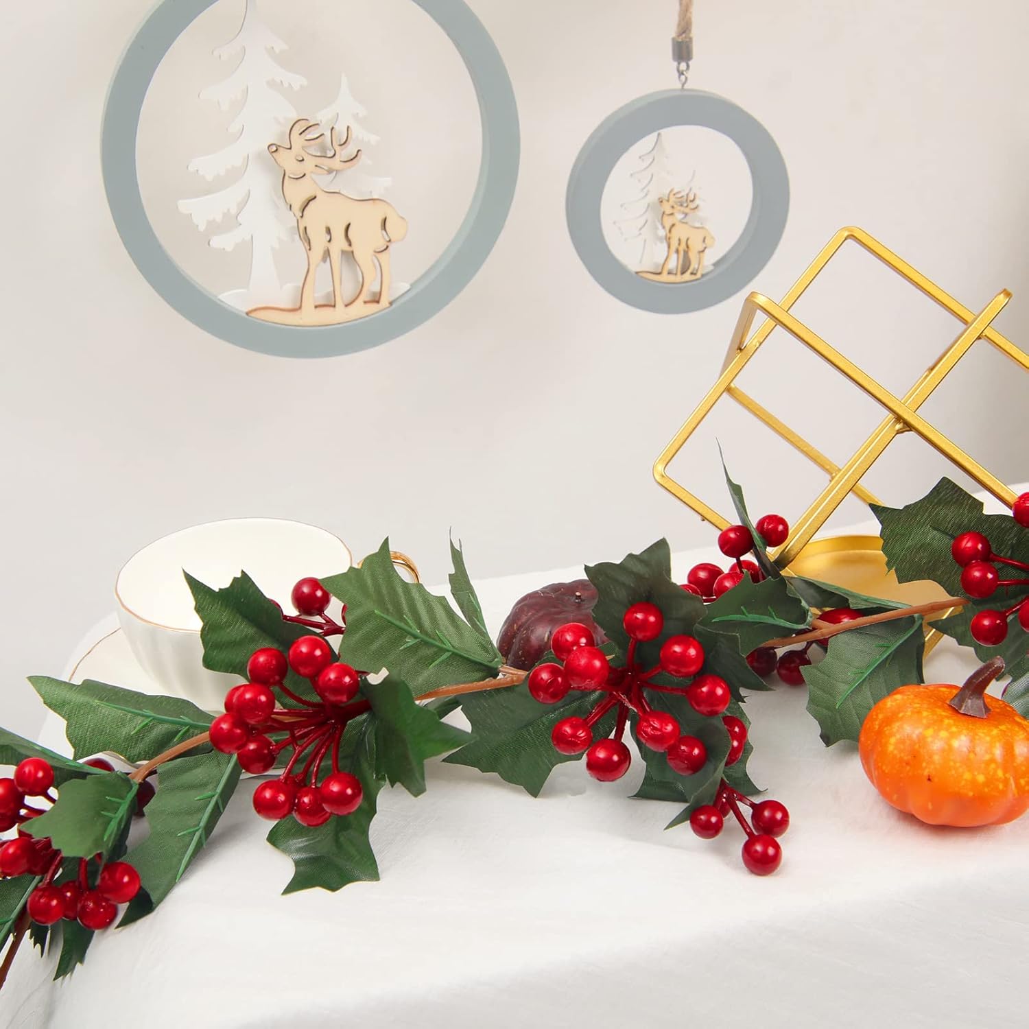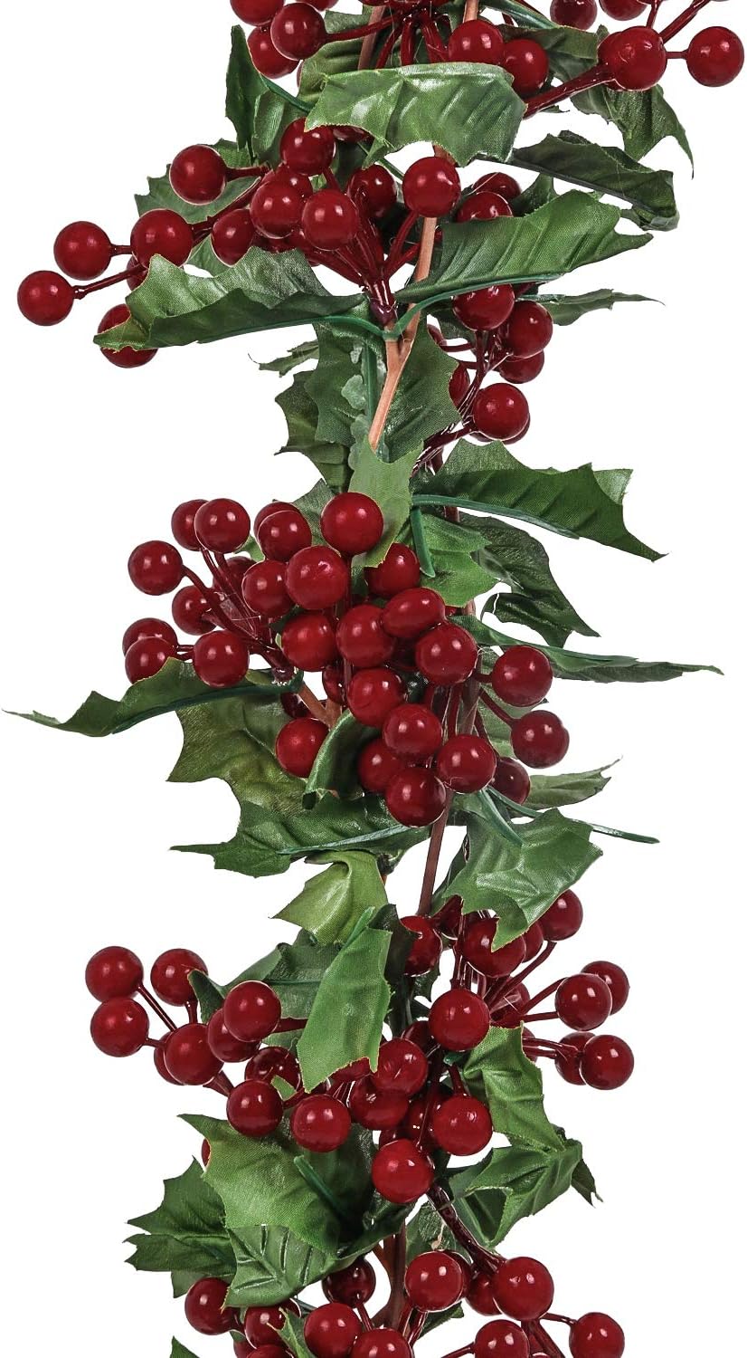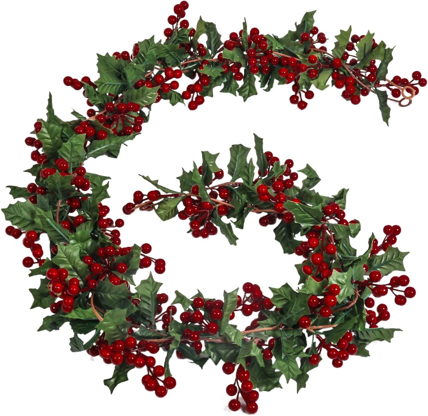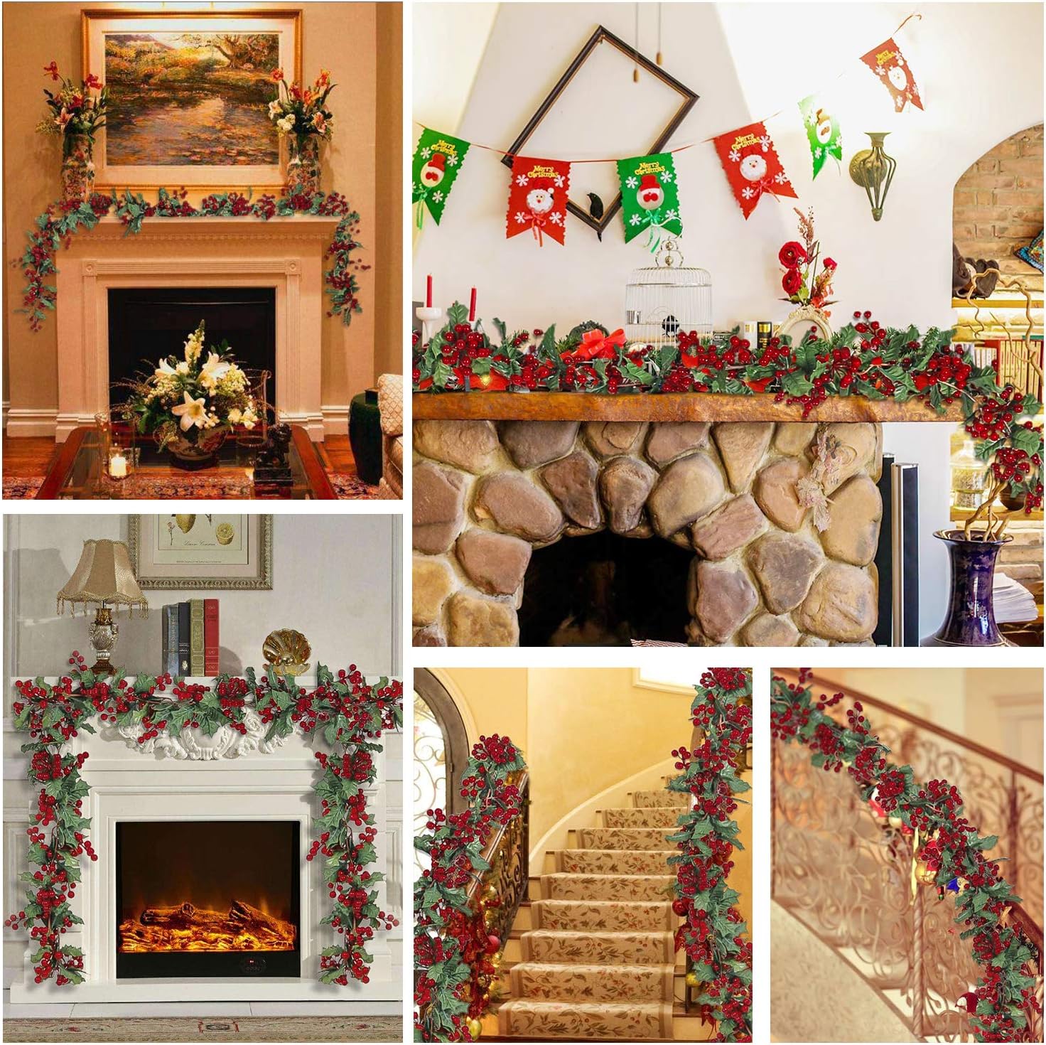 U'Artlines Total 11Ft Christmas Garland 2PCS Artificial Holiday Hanging Garlands Christmas Vine with Red Berries for Stairs Wall Fireplace Mantel Indoor Outdoor Decor (2pcs Red Berries Garland)