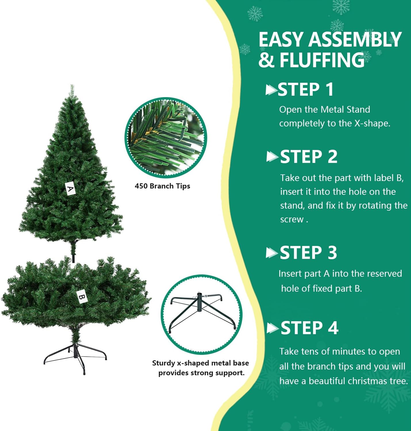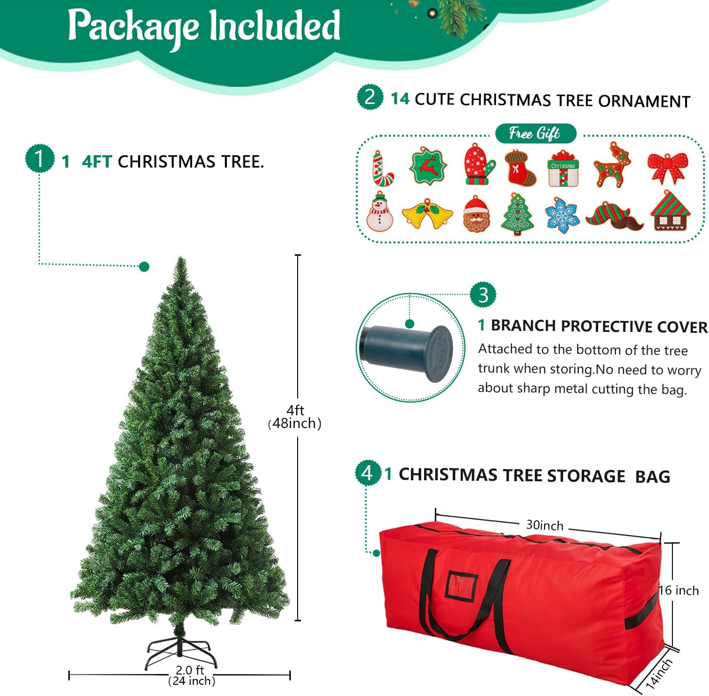 ULICO 4ft Artificial Christmas Tree,Premium Spruce Xmas Tree with 450 Branch Tips, Fake Christmas Tree with Foldable Metal Base Stand,Home, Office,Party Decoration-Green
