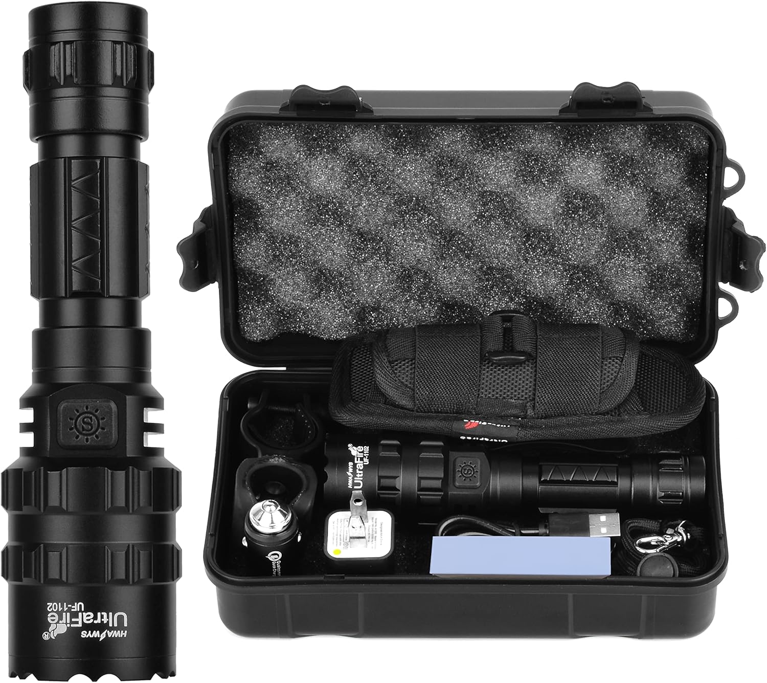 ULTRAFIRE High Lumens Rechargeable Flashlight with Holster, UFB26 and Car Charger Included -1000 Lumens, 5modes, IPX 65 Water-Resistant LED Torch Light for Emergency UF-1102