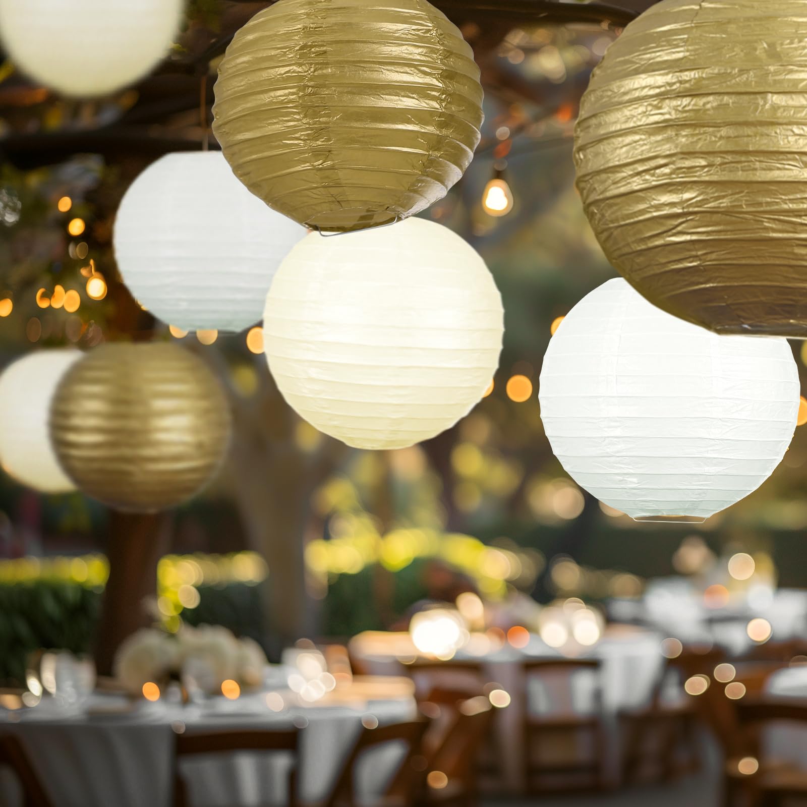 ️ CREATE BEAUTIFUL PARTY ON A BUDGET- 3 Assorted Colors of Gold Tone, Pure Gold, Cream Ivory, and White Paper Lantern Value Combination Pack of 18 Pieces, assorted size ranging from Small to X-Large. You will receive 3Pcs of 12 Inch Lanterns, 3Pcs of 10 Inch Lanterns, 3Pcs of 8 Inch Lanterns, 3Pcs of 6 Inch Lanterns, with 6Pcs of 4 Inch Mini Lilac Paper Ceiling Hanging Lantern. These lanterns can set up any space and create visual effects on a minimal decoration budget. LUXURY GOLD THEMED DECORATION - Dazzling and Instagram Ready Gold Party Supplies are versatile for many occasions. This 18 Pcs Hanging Honeycomb Lantern Set Perfect for Indoor and Outdoor, Reusable and Durable for Occasions like Baby Shower, Bridal Shower, Kids Birthday, Anniversary, Weddings, Mother's Day, Valentines' Day, Christmas, Thanksgiving, and Housewarming Parties.
