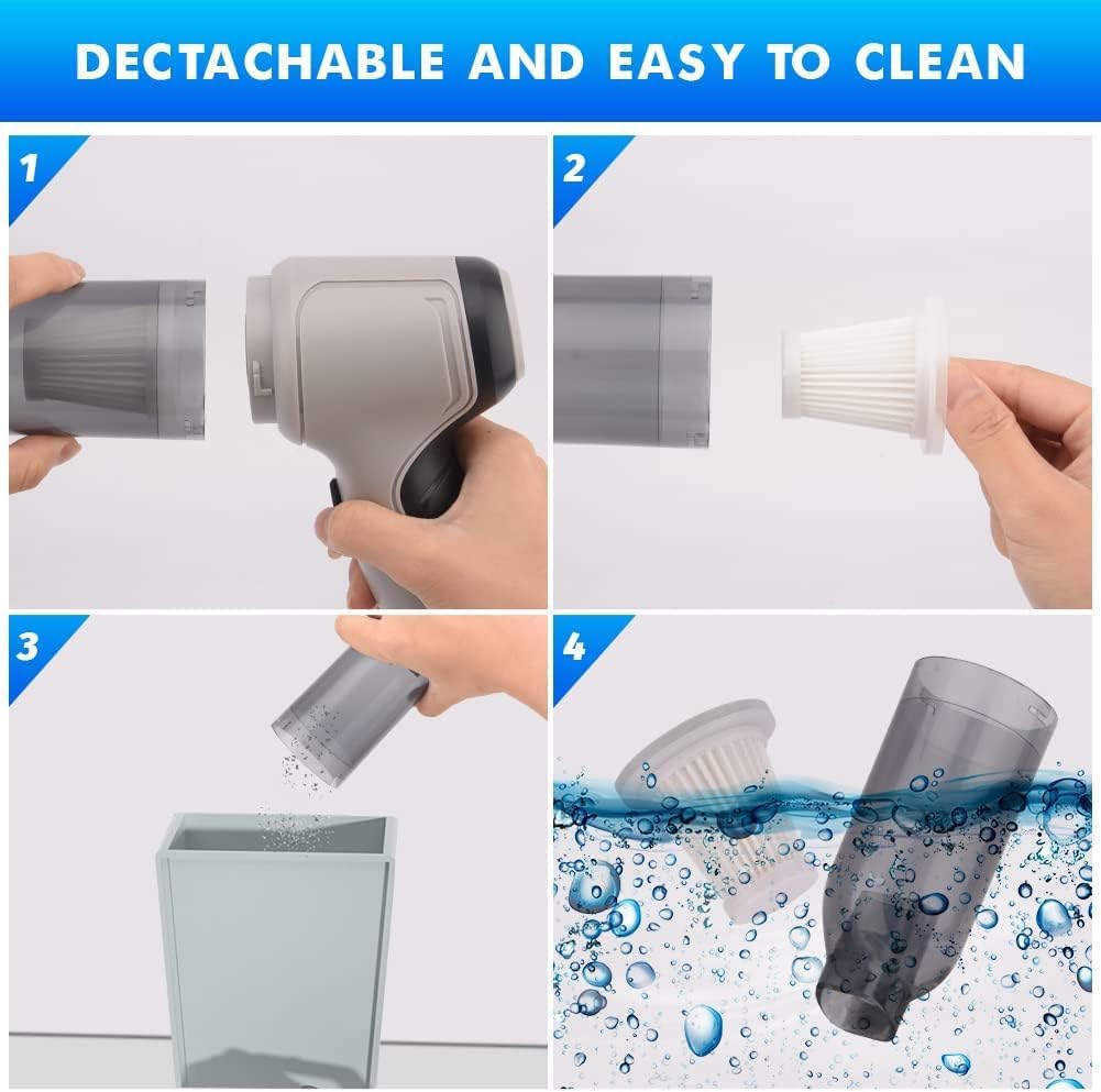 Key Features: → Exceptional suction power: With a highperformance motor, the Vacuum Cleaner 12000PA Mini Vacuum Cleaner an impressive 12000PA suction power. You can easily remove dirt, dust, pet hair, crumbs and other debris, leaving your surfaces spotless. → Compact and portable design: Its lightweight and compact design makes this vacuum easy to transport and . You will be able to reach all the hardtoclean corners effortlessly. Plus, its compact size makes it the perfect travel companion, allowing you to keep your car or RV clean while you're on the go. → Easy to use and maintain: With its onebutton system, this vacuum is extremely easy to use. Just turn it on and you'll be ready to clean in seconds. Plus, its largecapacity dust container is easy to empty, saving you time and effort. → Enhanced Versatility: The Vacuum Cleaner 12000PA Mini Vacuum comes with a variety of accessories that allow you to adapt it to different surfaces and cleaning needs. Includes a dusting brush, crevice tool, and pet hair brush, giving you the ultimate clean on carpets, floors, furniture, and more. → Quality and durability: Made with highquality materials, this vacuum cleaner is designed to last. Its strong and durable construction ensures longterm, reliable performance, saving you money on frequent vacuum s. Don't waste any more time and enjoy efficient cleaning with the Vacuum Cleaner 12000PA Mini Vacuum Cleaner. Keep your spaces spotless with ease and convenience