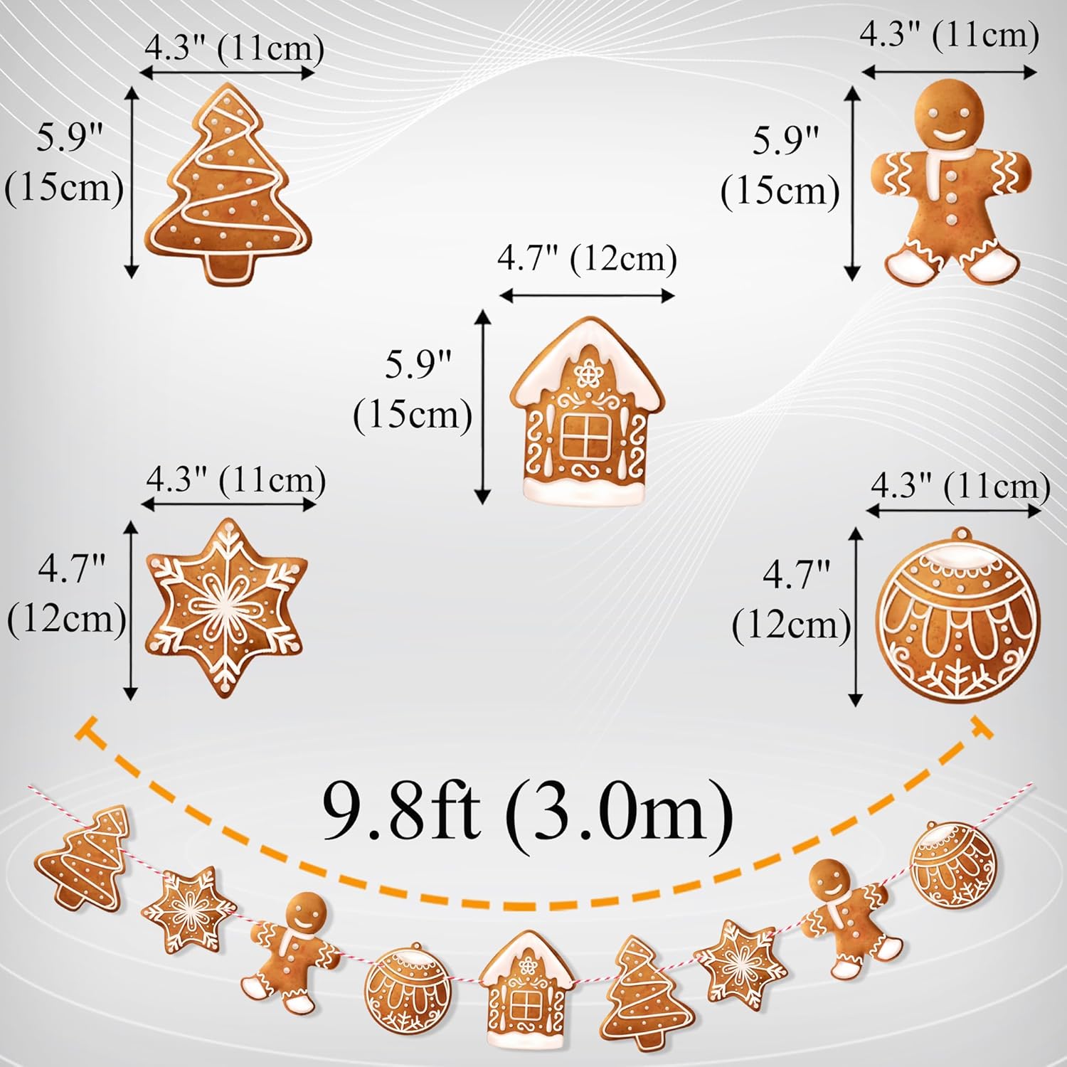 Uniwish 2 Pack Gingerbread Theme Garland Banner Christmas Hanging Decorations Tree Ornaments Christmas Bunting Banner for Xmas Party Holiday Home Wall Decor