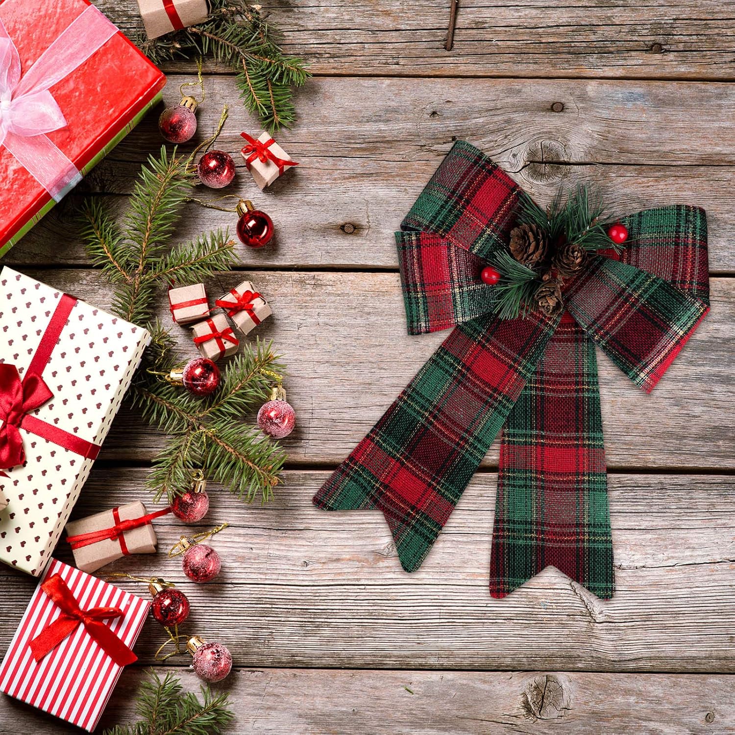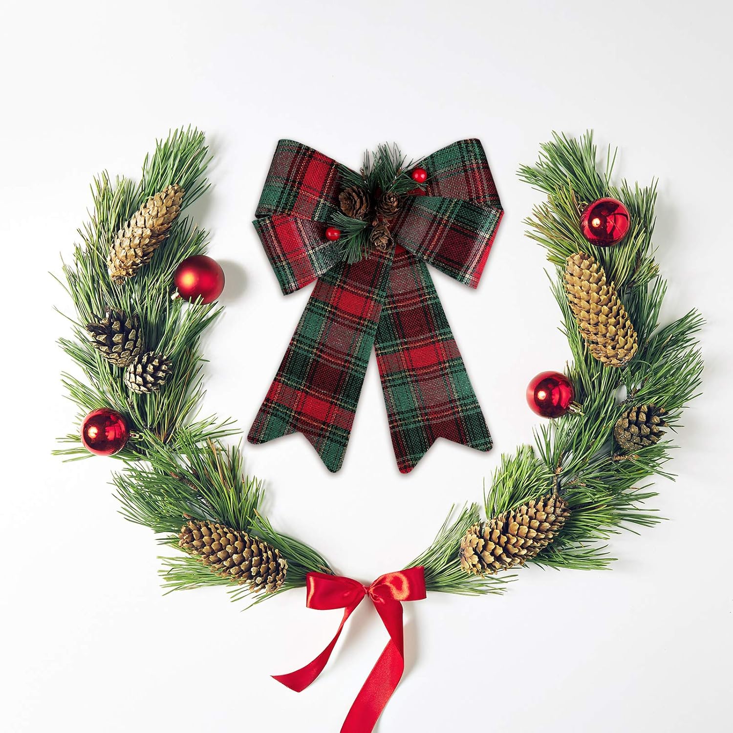 URATOT 6 Pack Christmas Wreaths Bows with Pinecones Needles Xmas Decorations Bows Natural Christmas Tree Bows for Holiday Decoration or DIY Crafts, 9 x 12 Inches